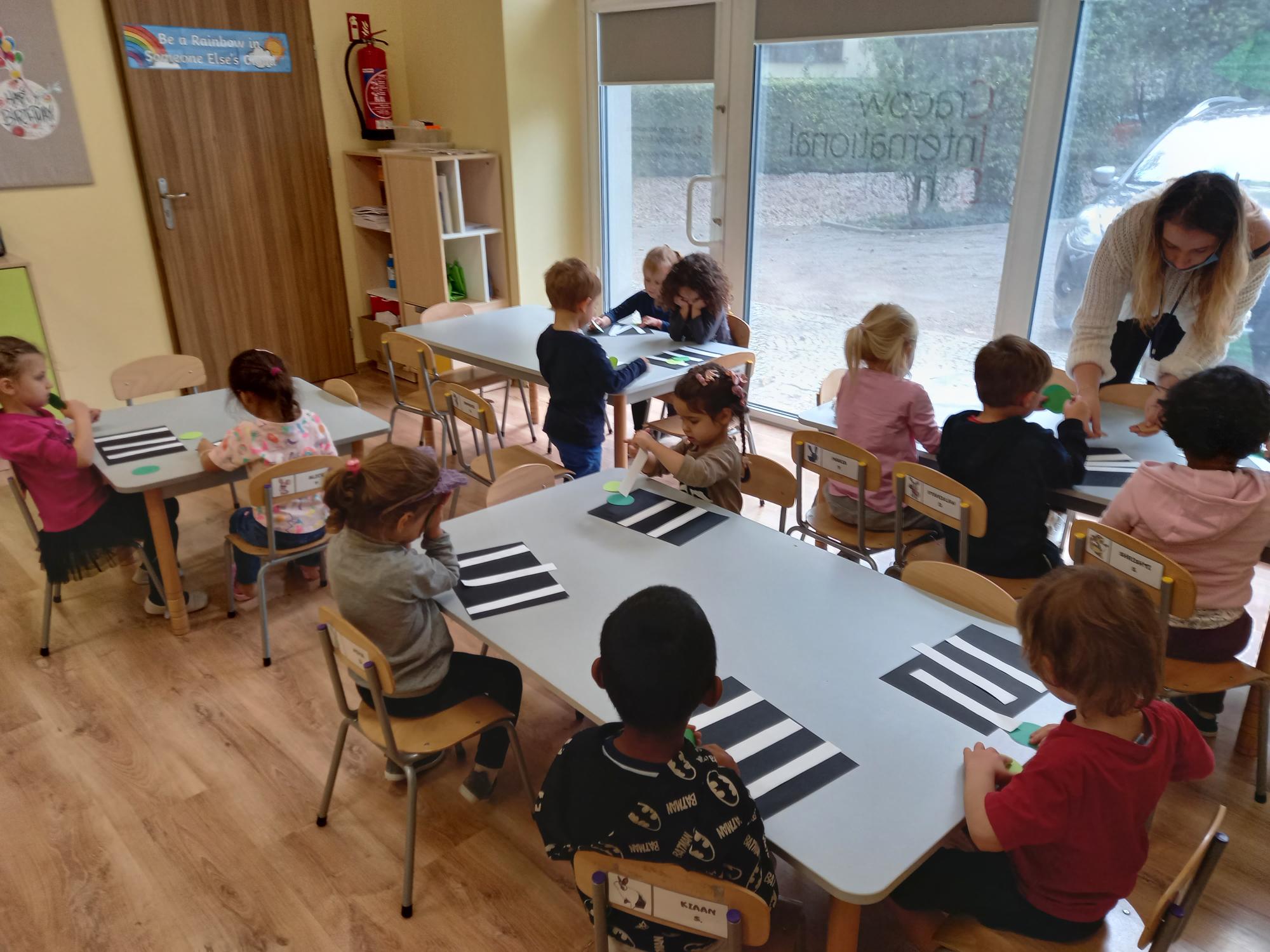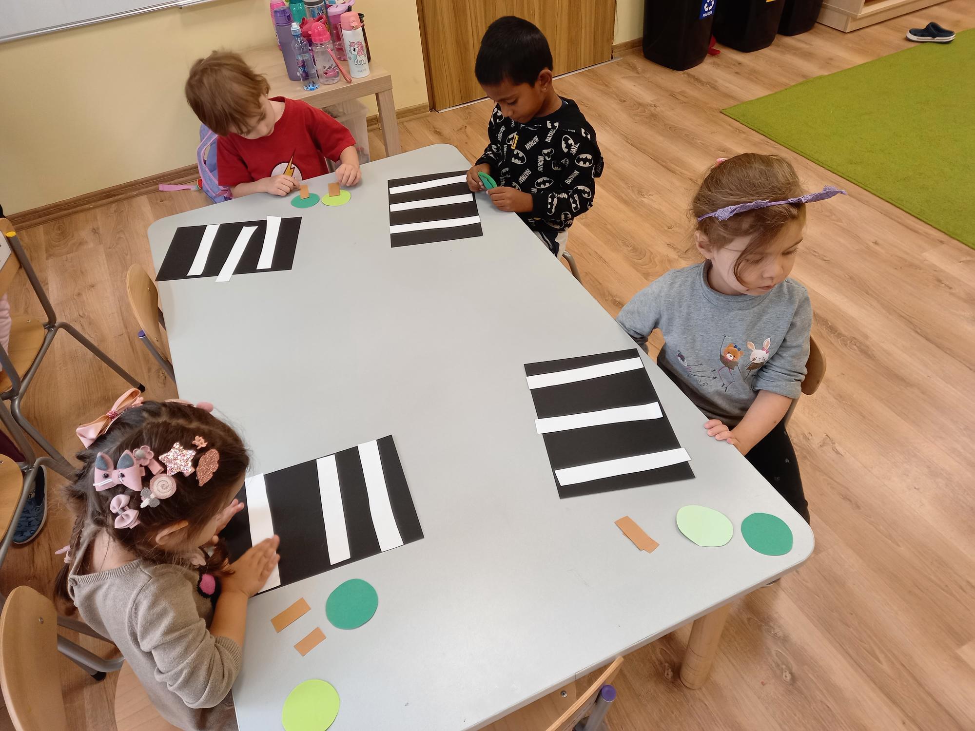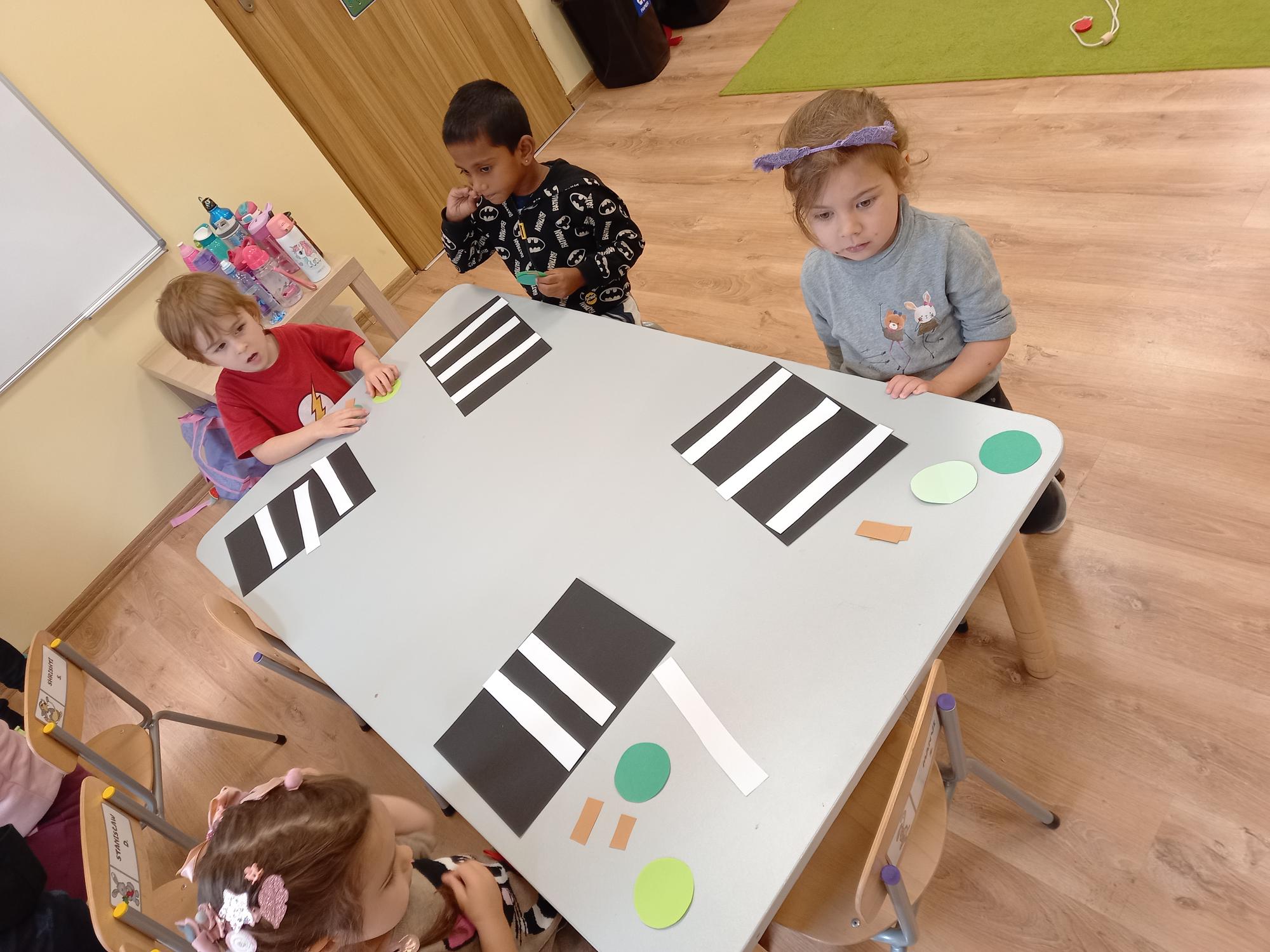 W ostatnim czasie grupa Bouncy Bunnies poznawała zasady ruchu drogowego. 🚗 Podczas zajęć nauczyliśmy się niektórych znaków drogowych ⛔️ a także jak prawidłowo przechodzić przez jezdnię.🚦 Z papieru wyklejaliśmy przejście dla pieszych a następnie ozdabialiśmy je drzewkami. 🌲🌳
