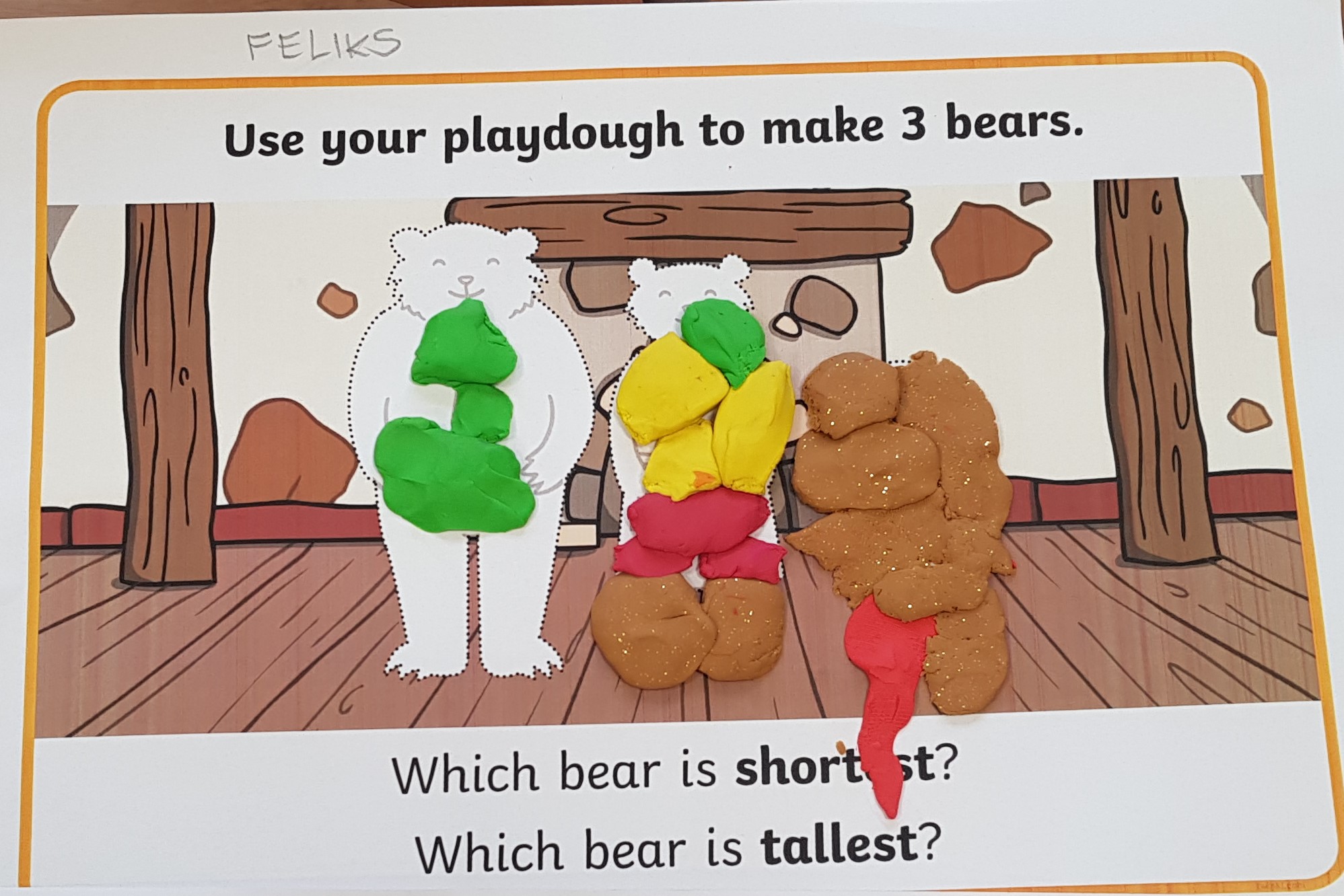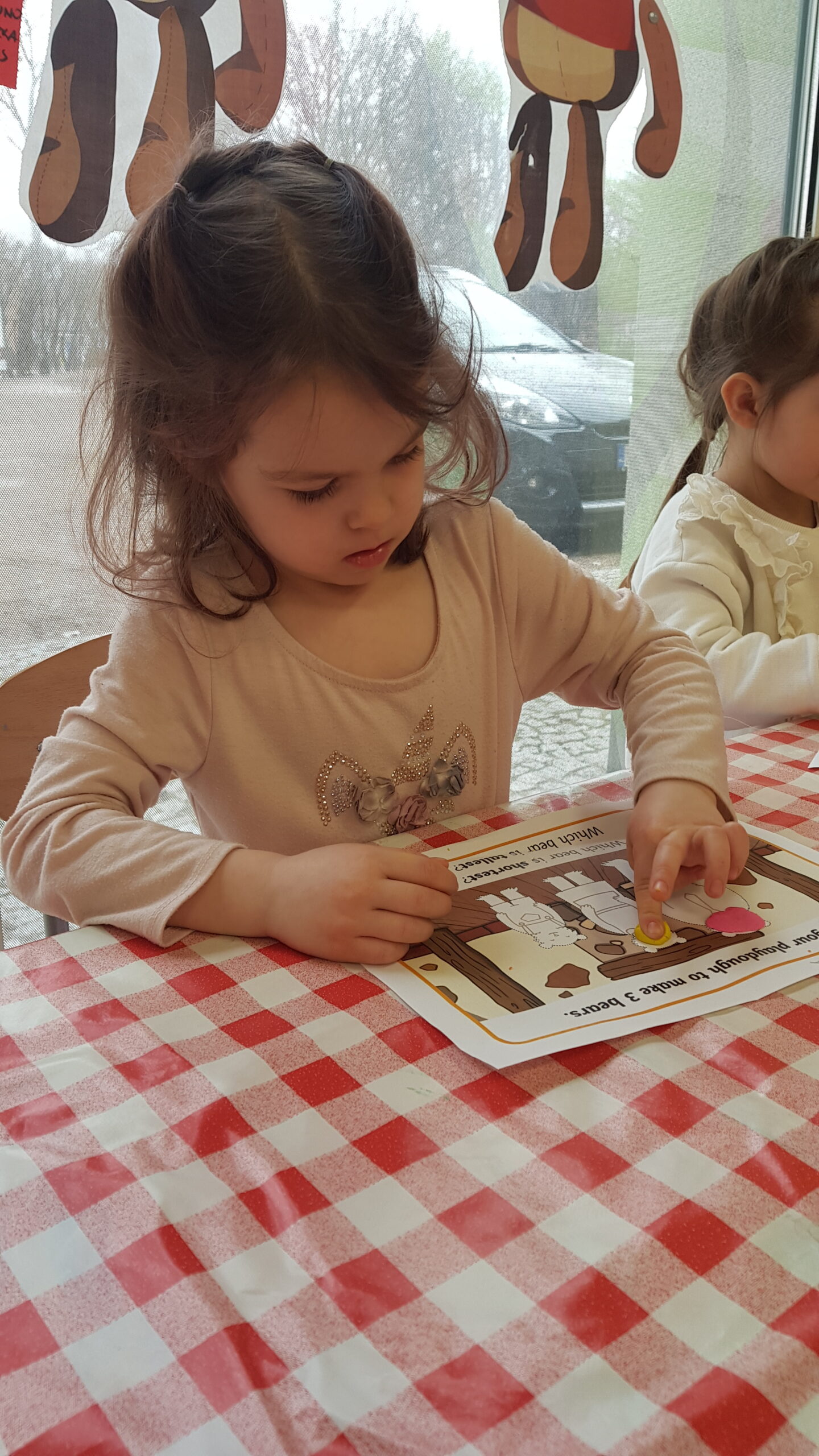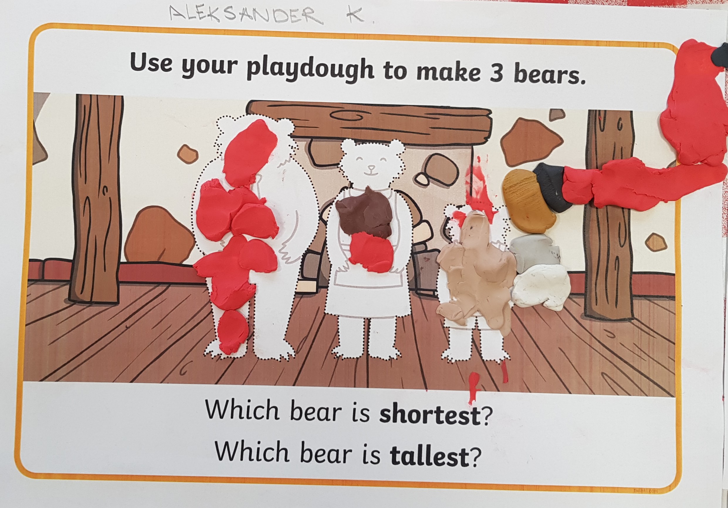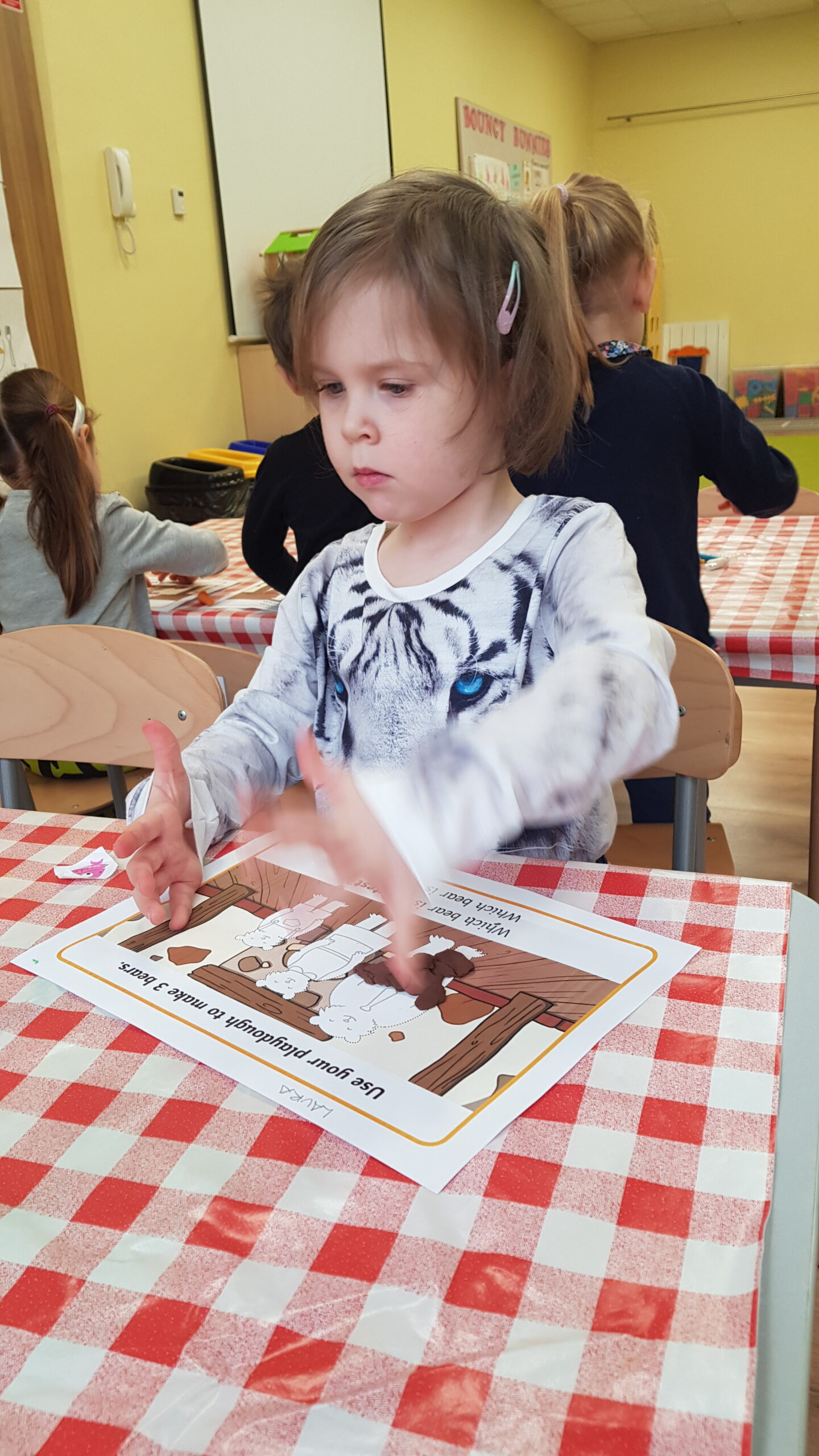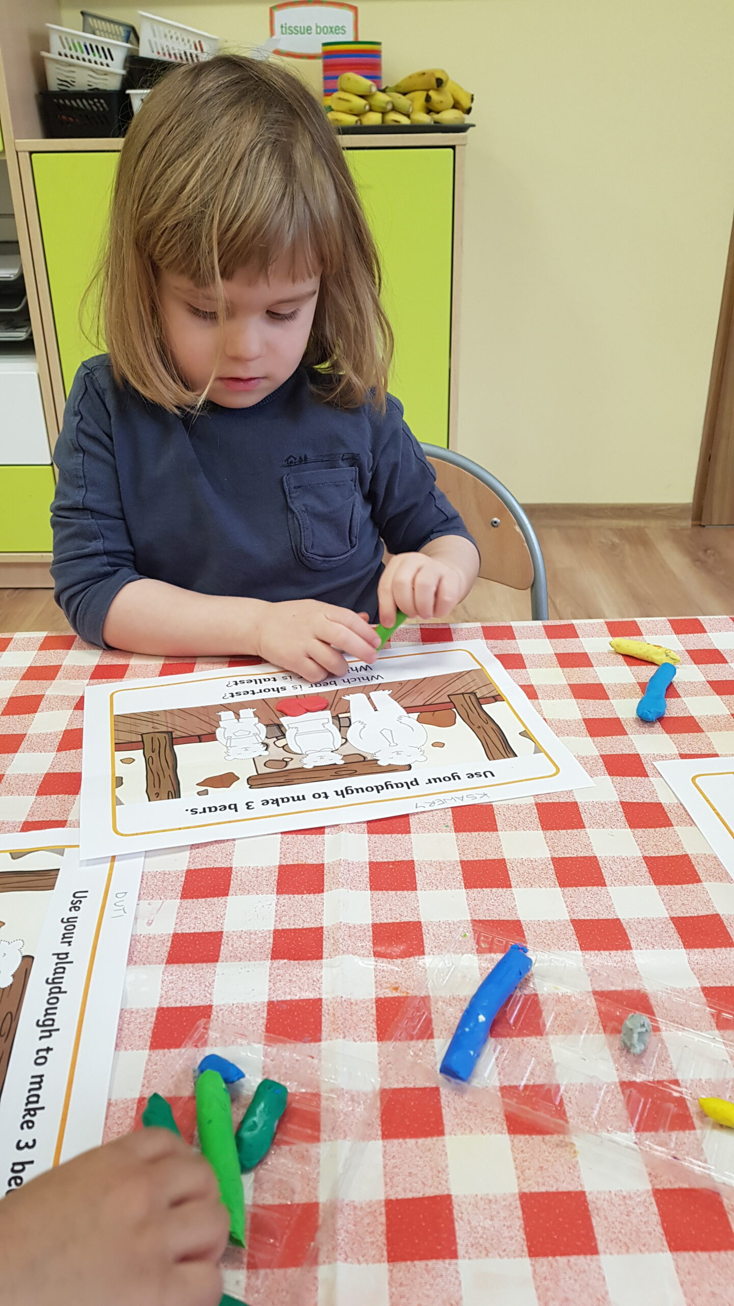 Grupa Bouncy Bunnies przeczytała historię Złotowłosej i trzech misiów, a póżniej pracowała nad motoryką małą wyklejając misie z plasteliny. 👱♀️🧸🧸🧸