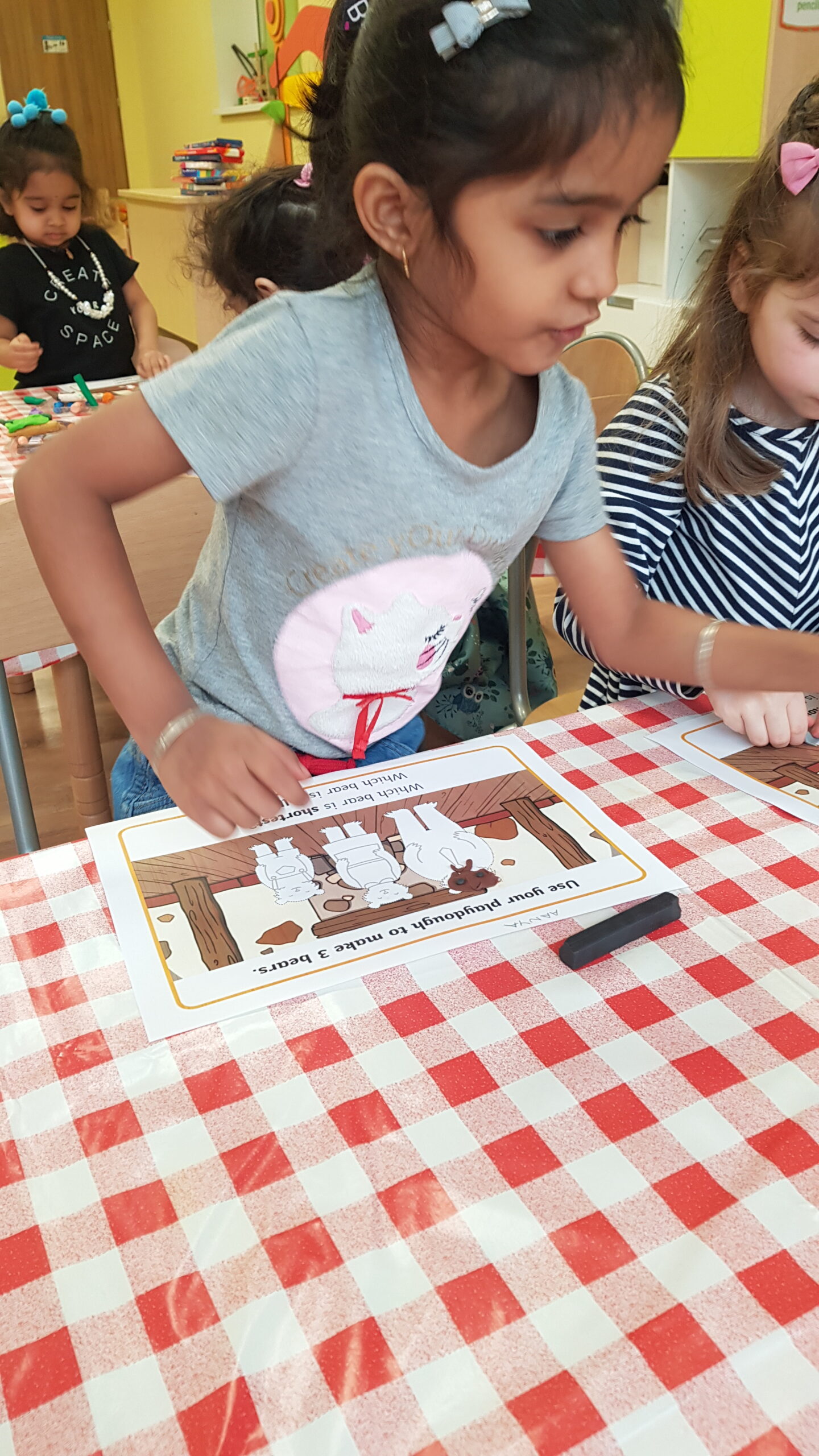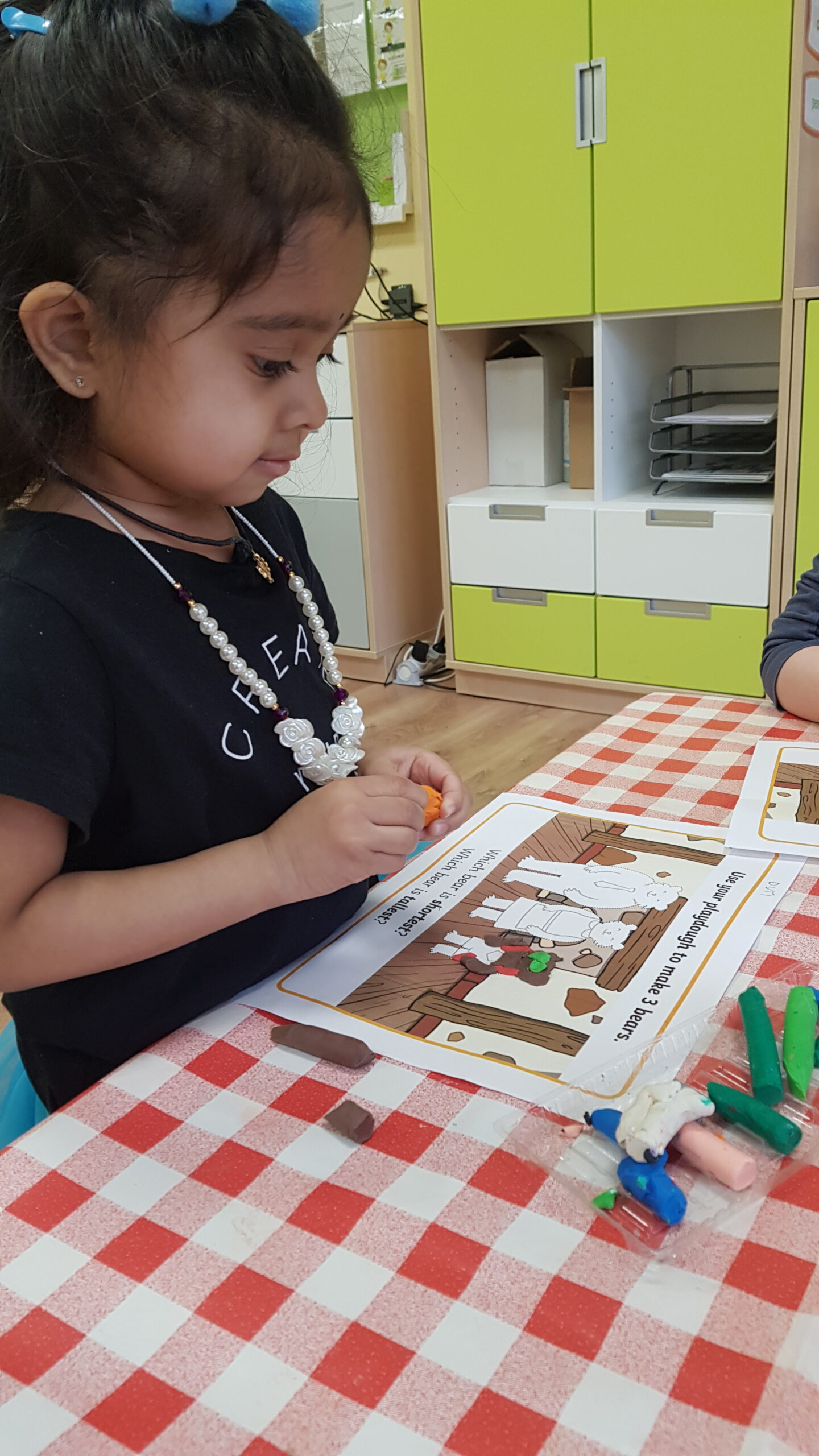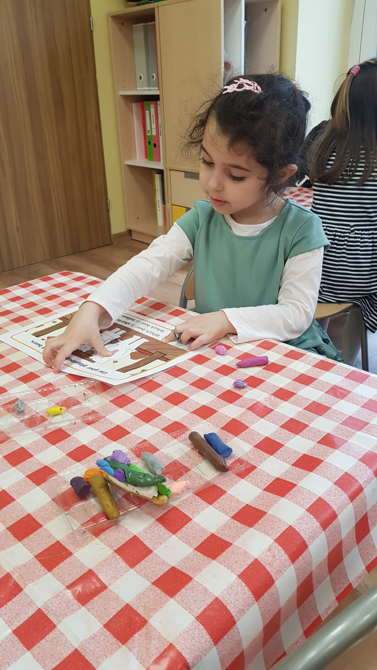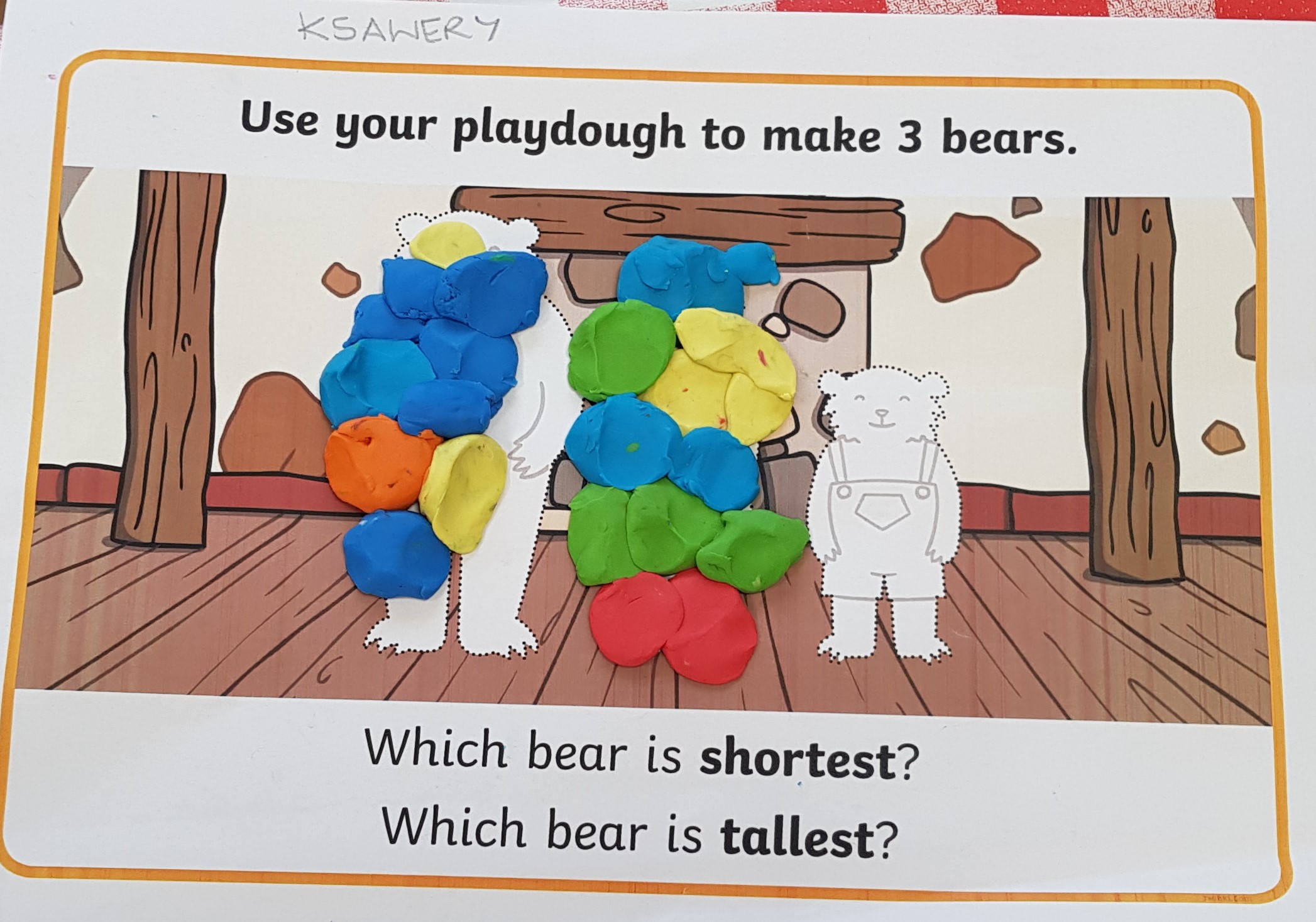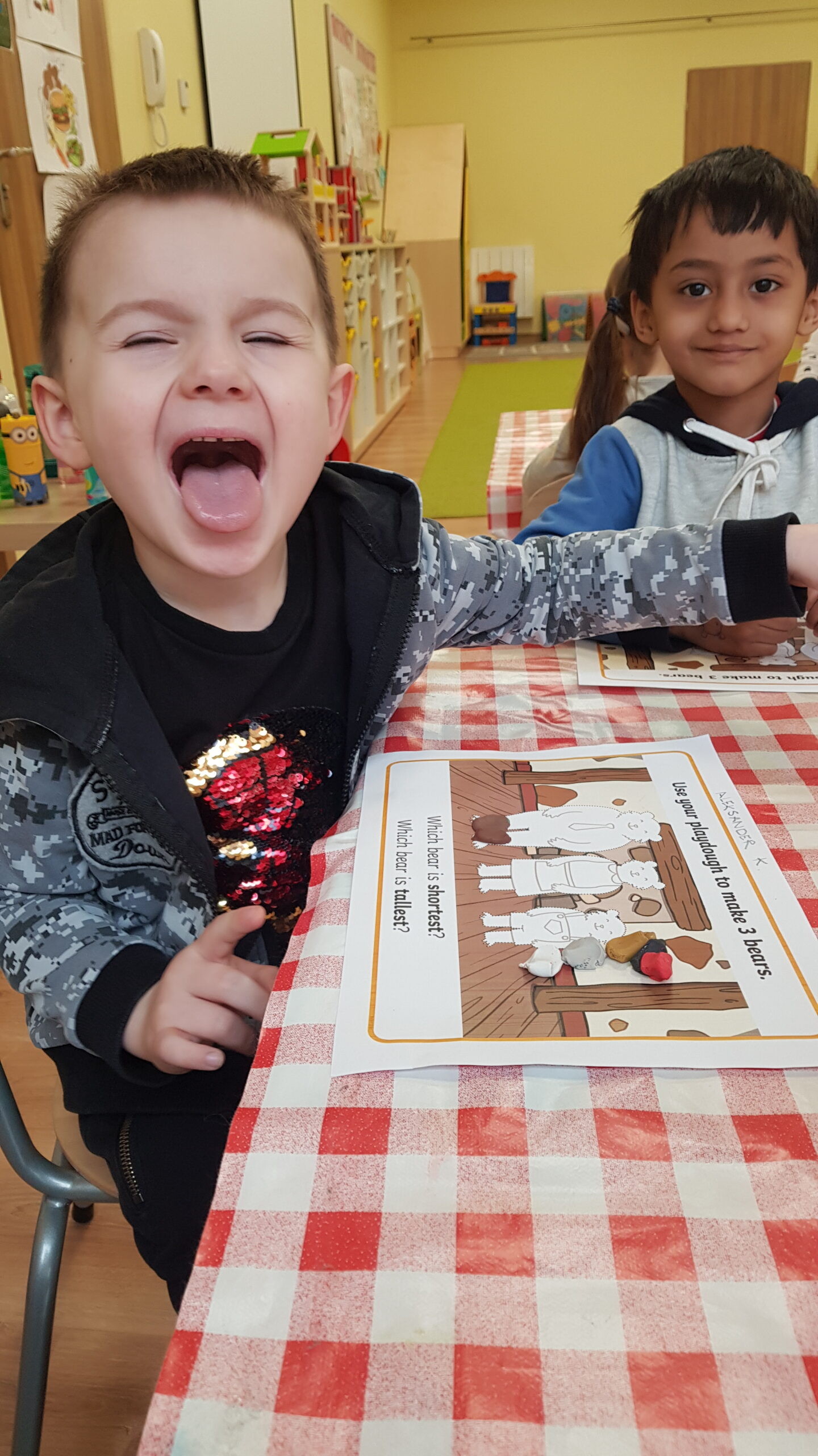 Grupa Bouncy Bunnies przeczytała historię Złotowłosej i trzech misiów, a póżniej pracowała nad motoryką małą wyklejając misie z plasteliny. 👱♀️🧸🧸🧸