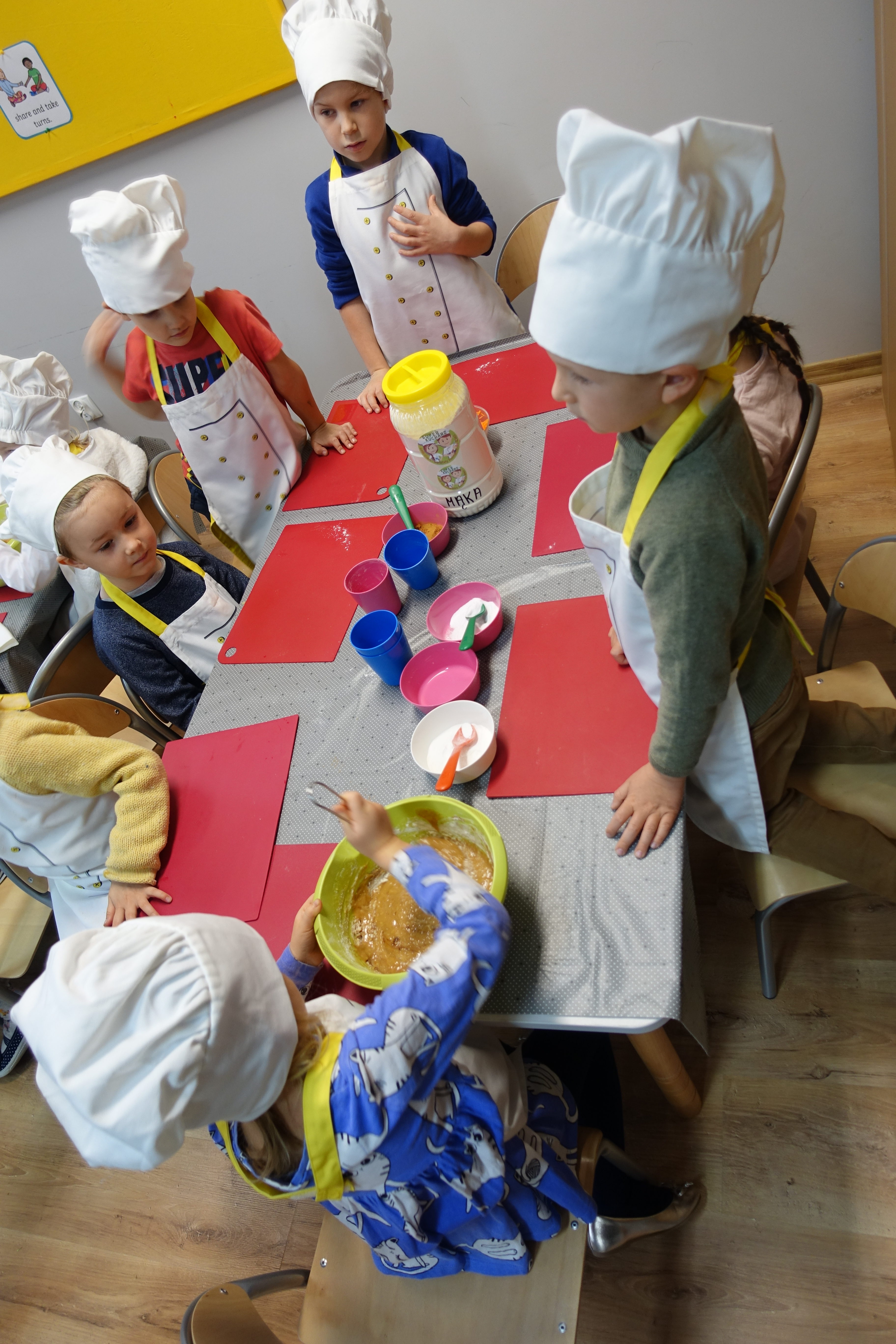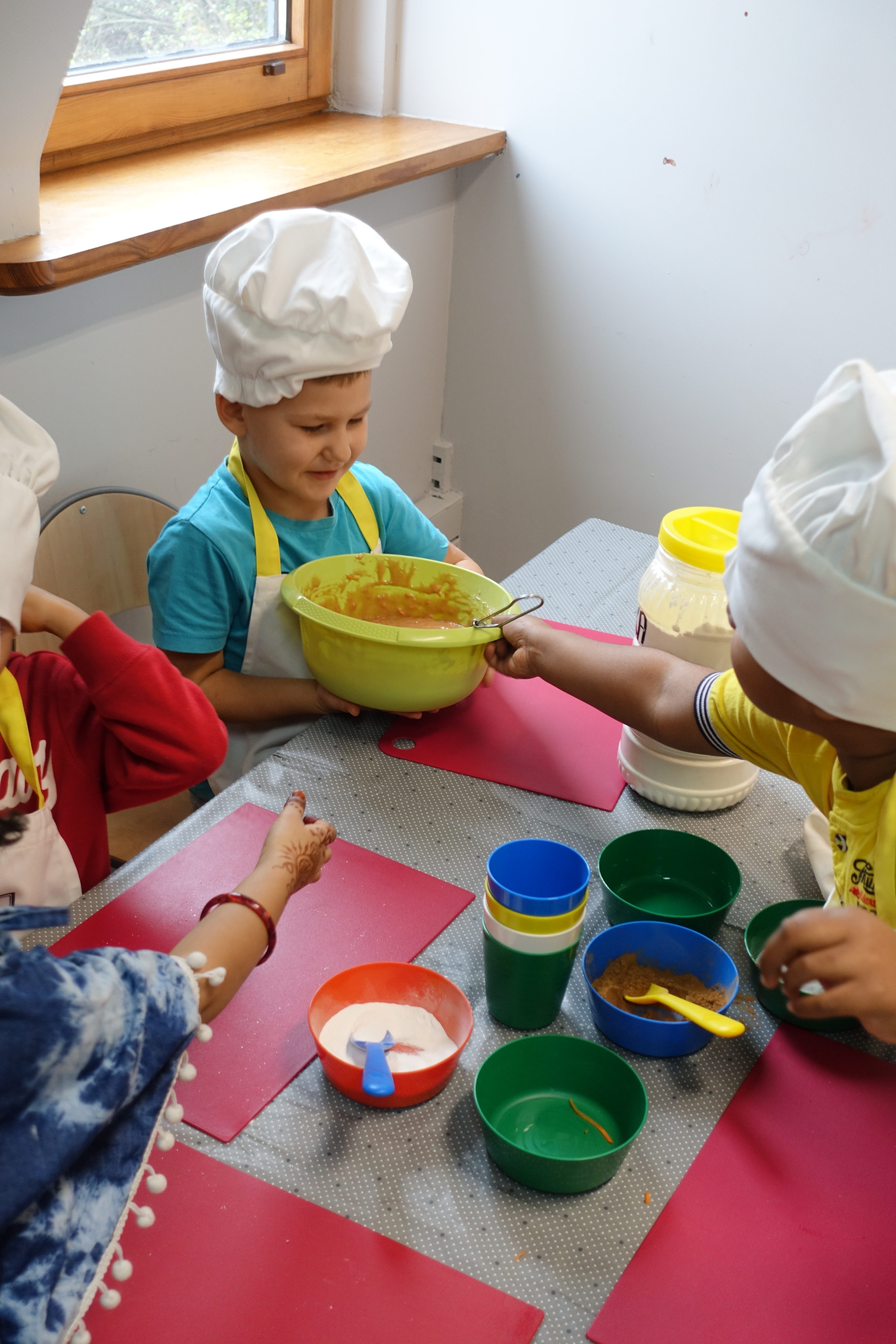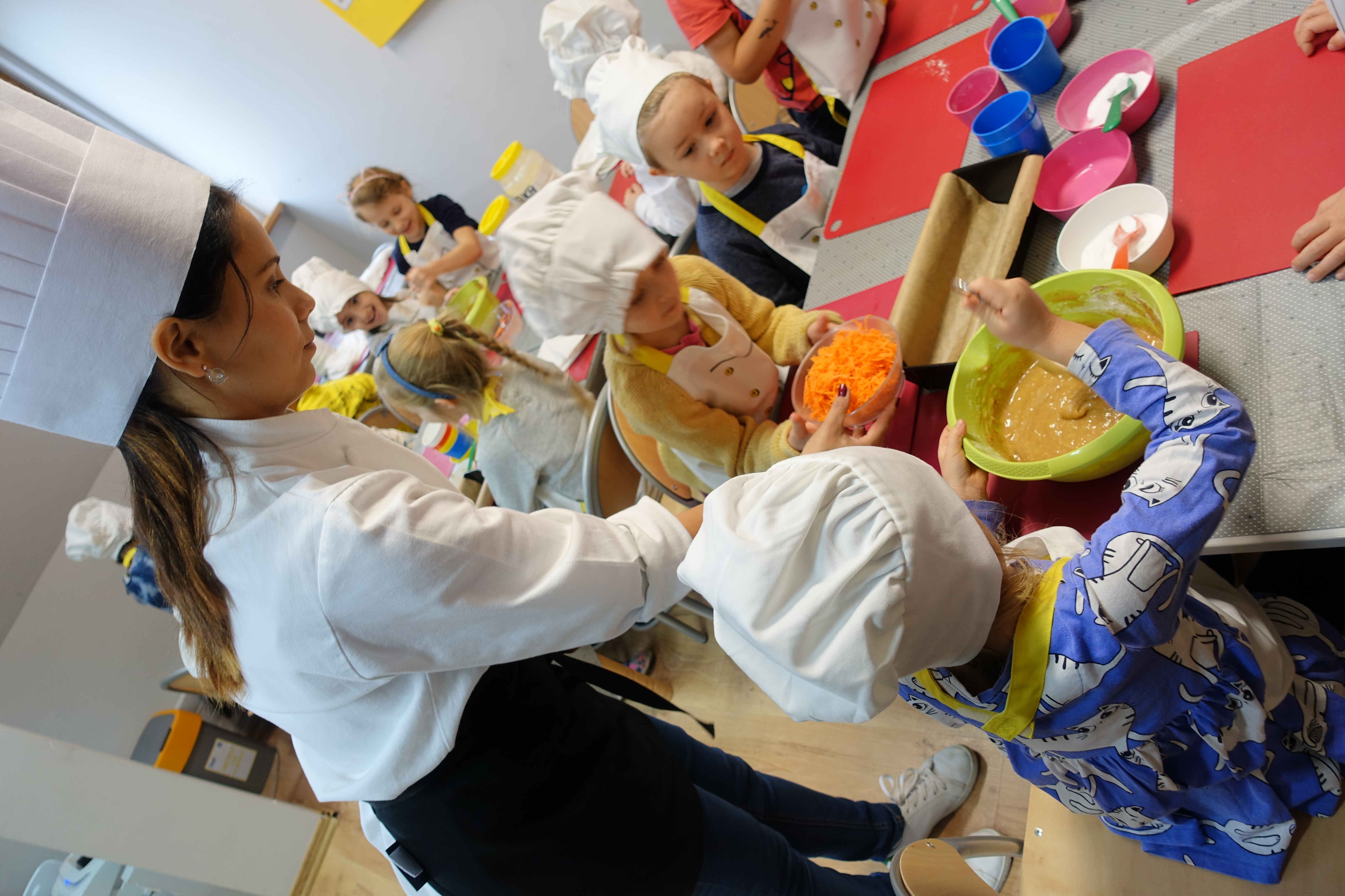 Today the Funny Foxes group had the culinary workshop in the kindergarten. The children got to prepare their own carrot cake and learn about different kitchen supplies. It was a lot of fun!