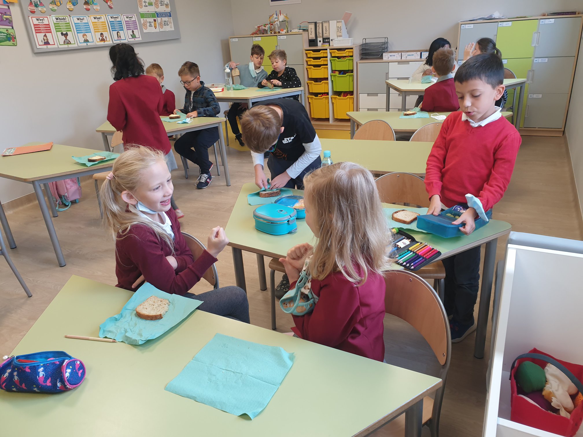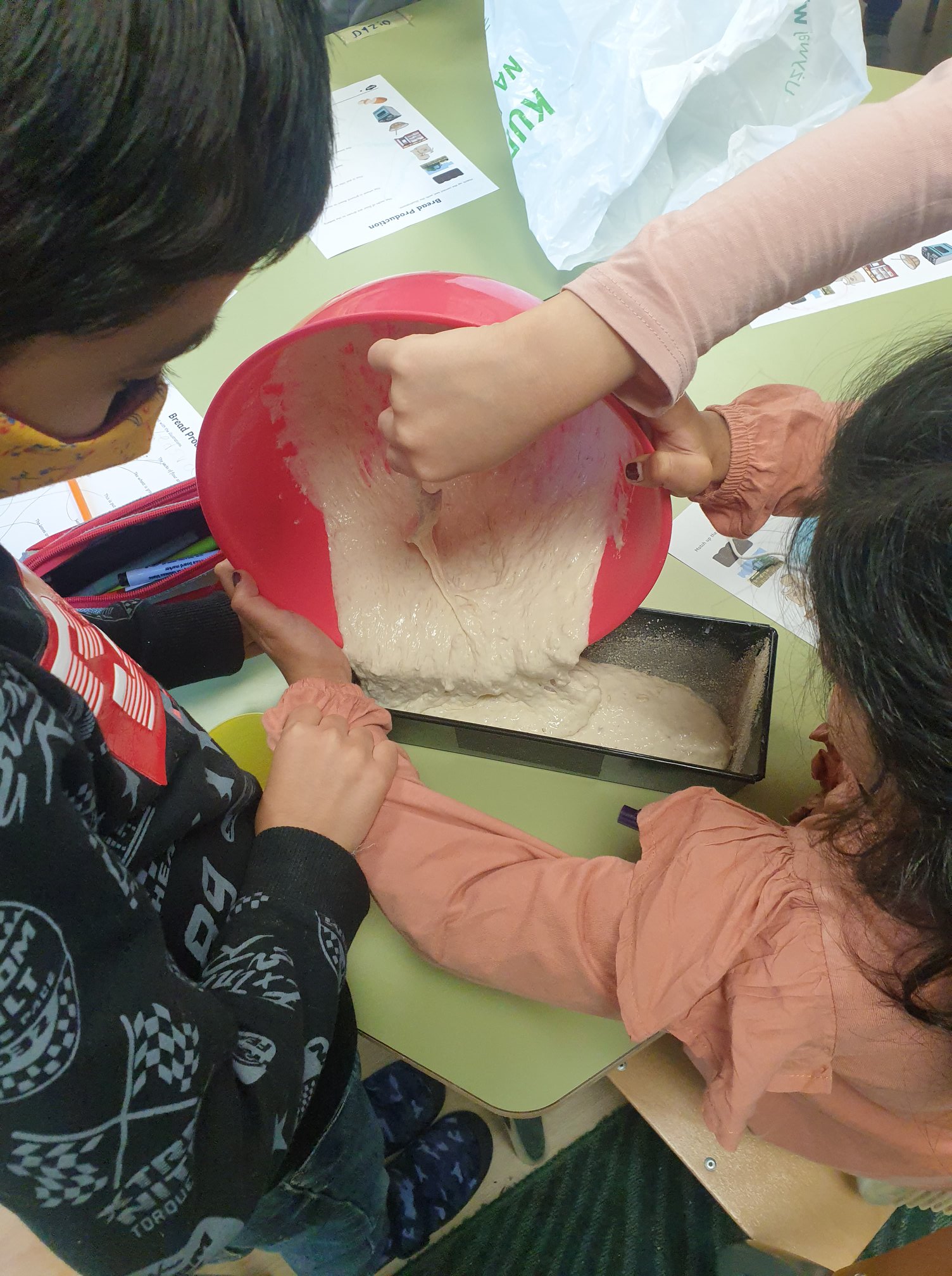 Last week, thanks to our third graders, our school corridor was filled with the smell of freshly baked bread. The children prepared delicious loaves from the scratch and then ate them eagerly. The students started with making yeast leaven and then added other ingredients. They showed a lot of patience waiting for 2 hours for the dough to rise and bake! Lastly, they learnt about the history of bread and the process of its production “from grain to loaf”.