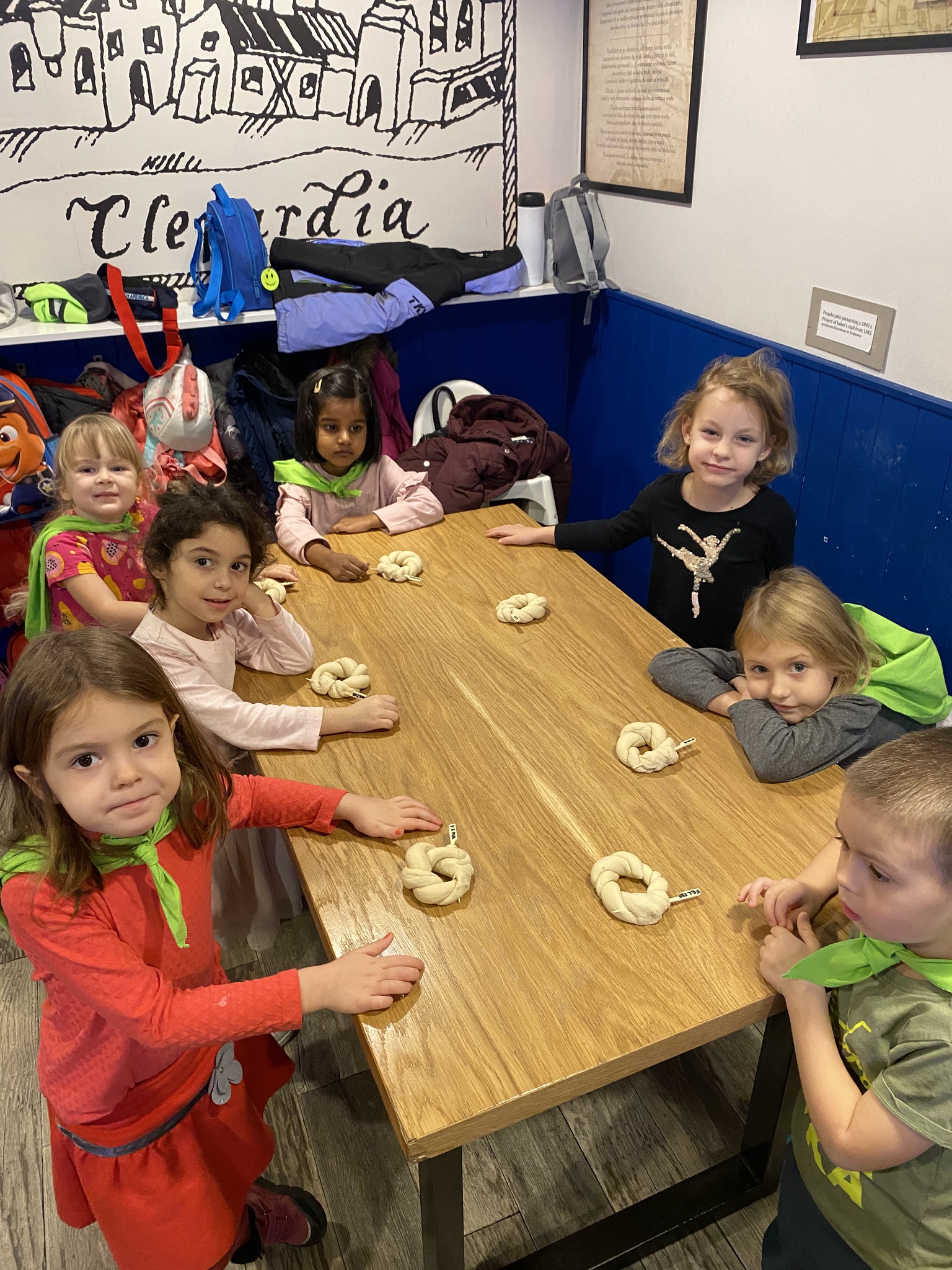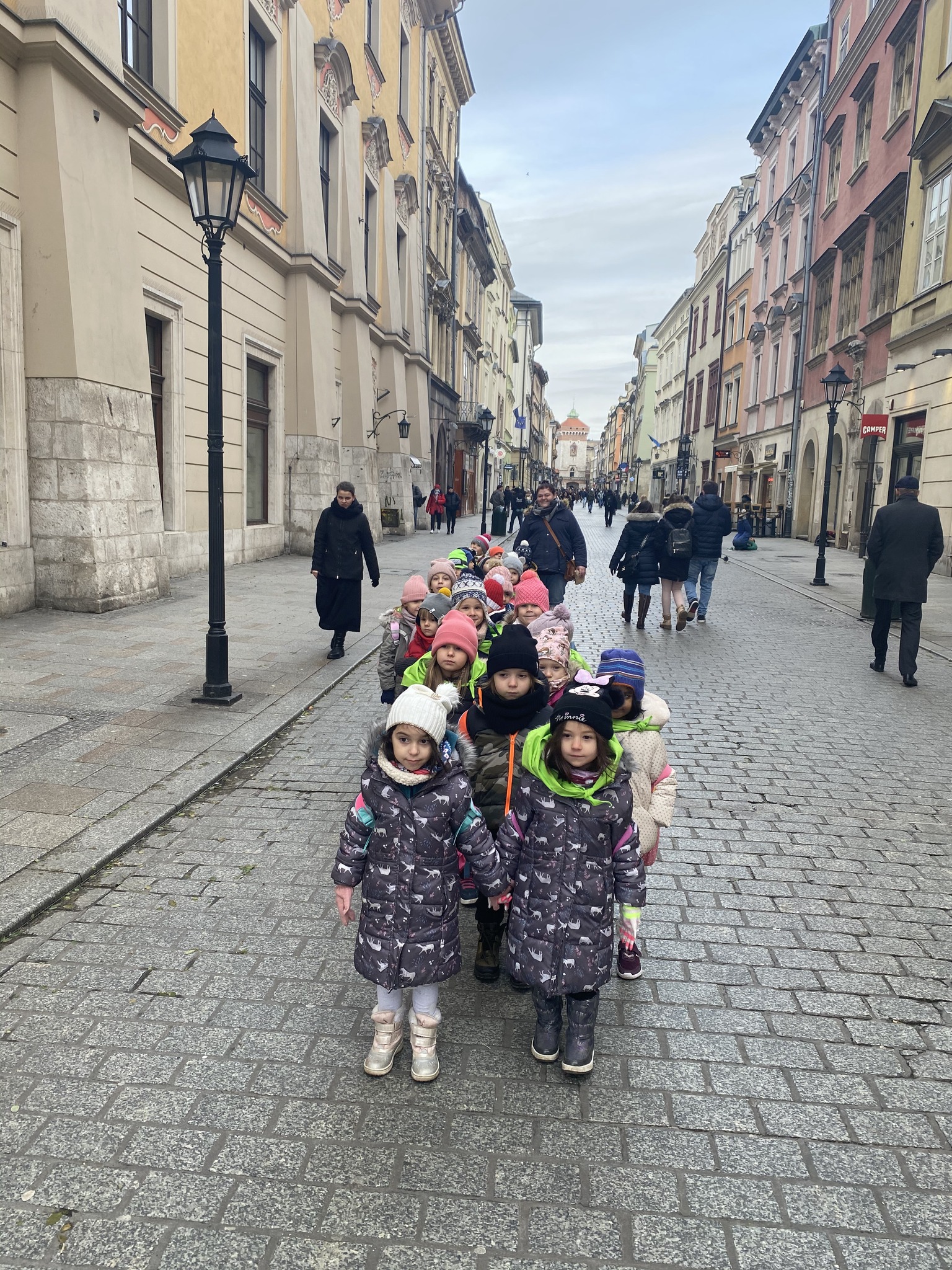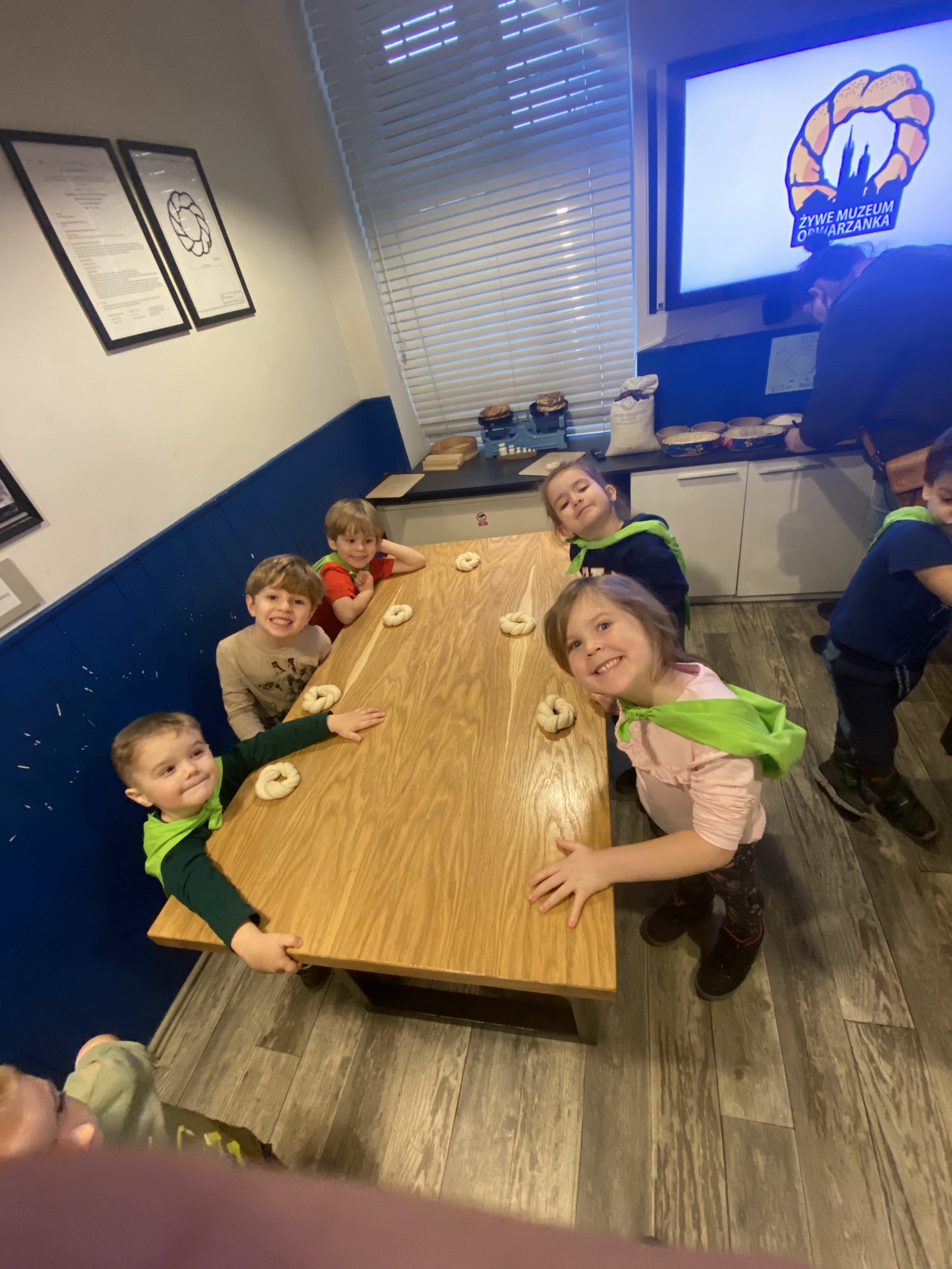 The Squirrels found out why the obwarzanek has a hole in it and why the sprinkles are only on one side. The children also had the opportunity to prepare their own obwarzanek, shape it, choose a sprinkle and watch it bake. After the amazing experience in the museum, we went for a walk through the streets of Krakow, where we saw the Monument to the Battle of Grunwald, the Barbican, the Florian Gate, until we reached St. Mary’s Church, where we heard the bugle call coming out of the tower. But most importantly, we managed to take a picture with the largest Christmas tree in the city.