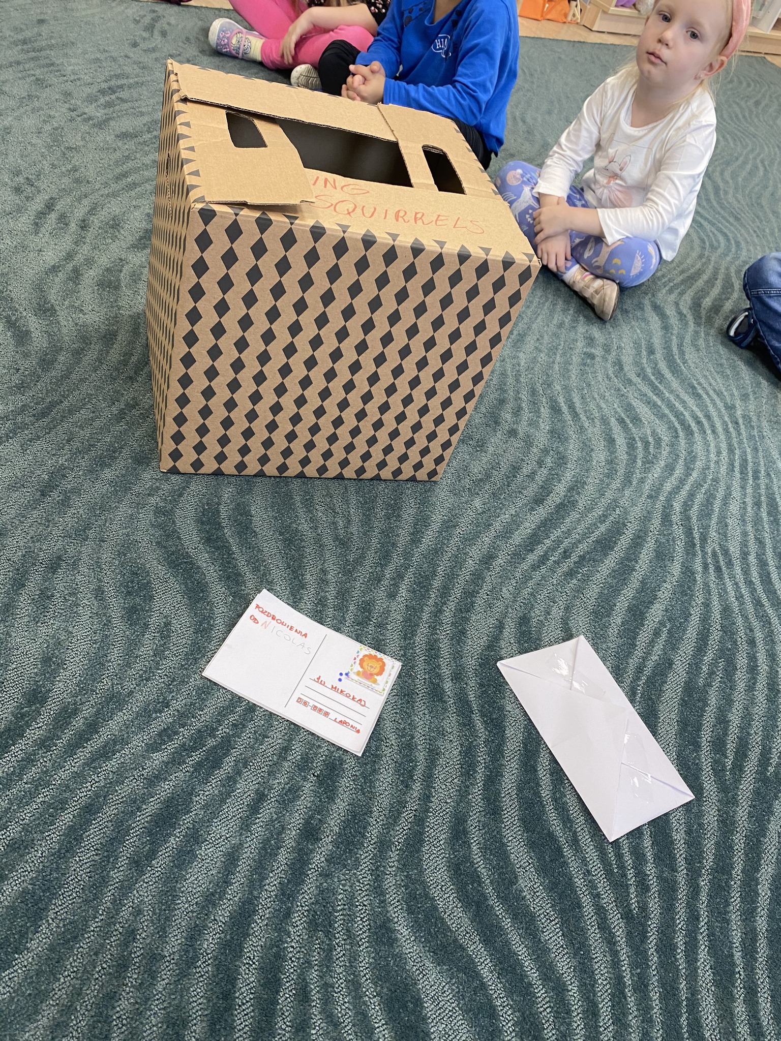 on which they put a stamp and sent it to our preschool post office and wrote their first letter, which they put in an envelope. The squirrels also learned the new letter “L”. ![]()