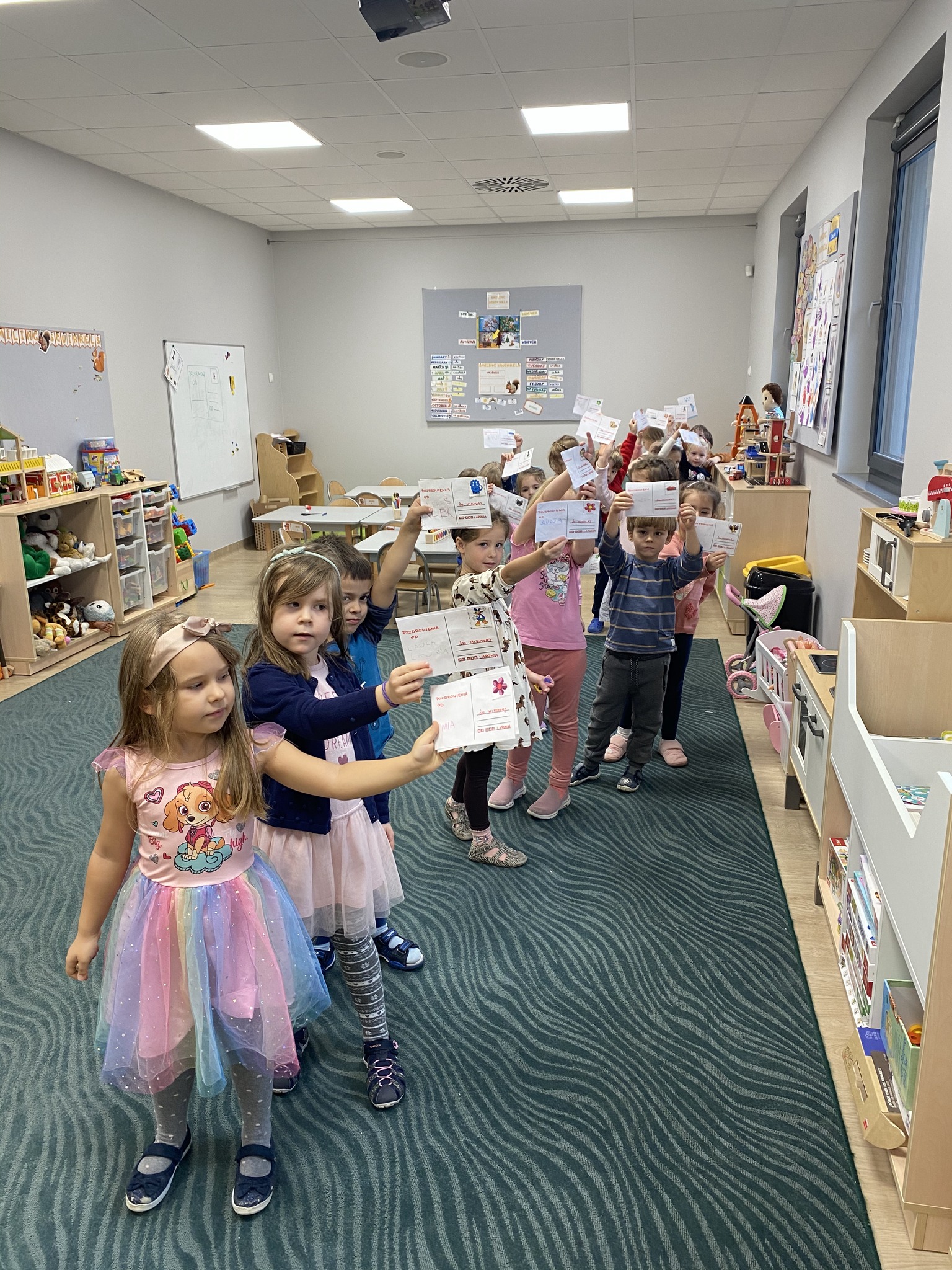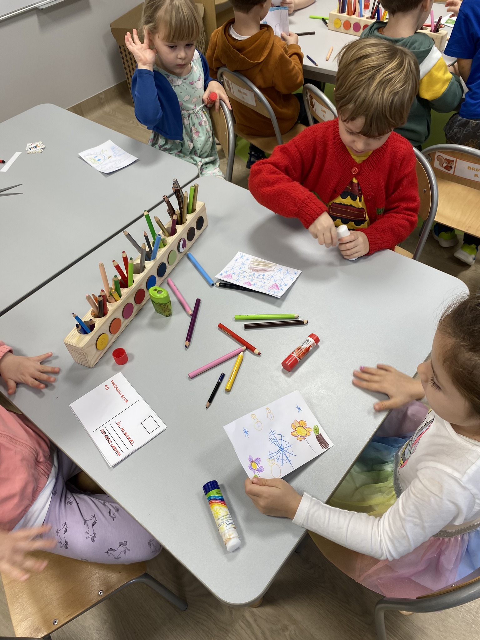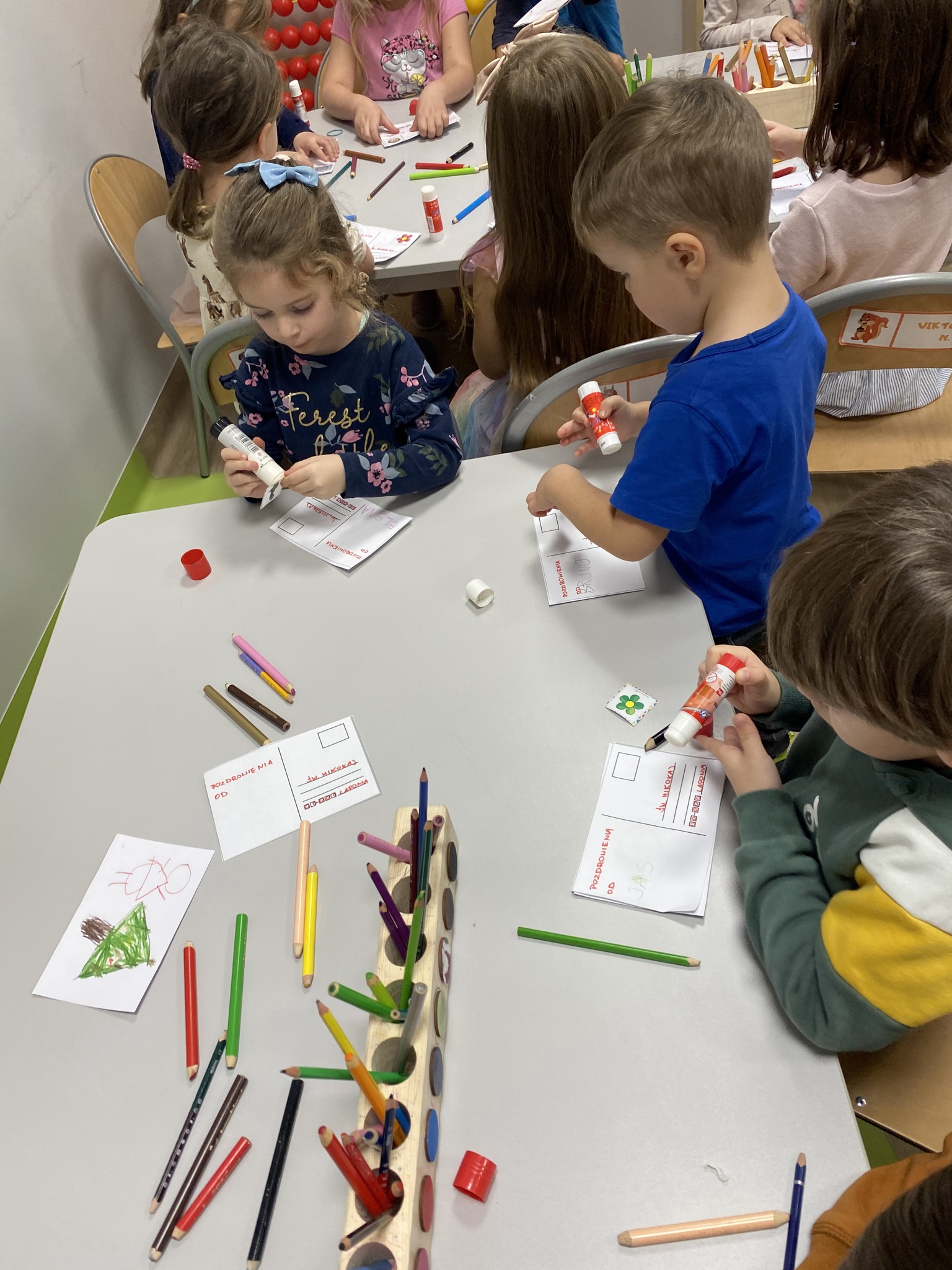 The children also enriched the children’s knowledge about the different ways of sending the message and learned the route of the letter from the sender to the addressee. They painted their own postcard for Santa Claus