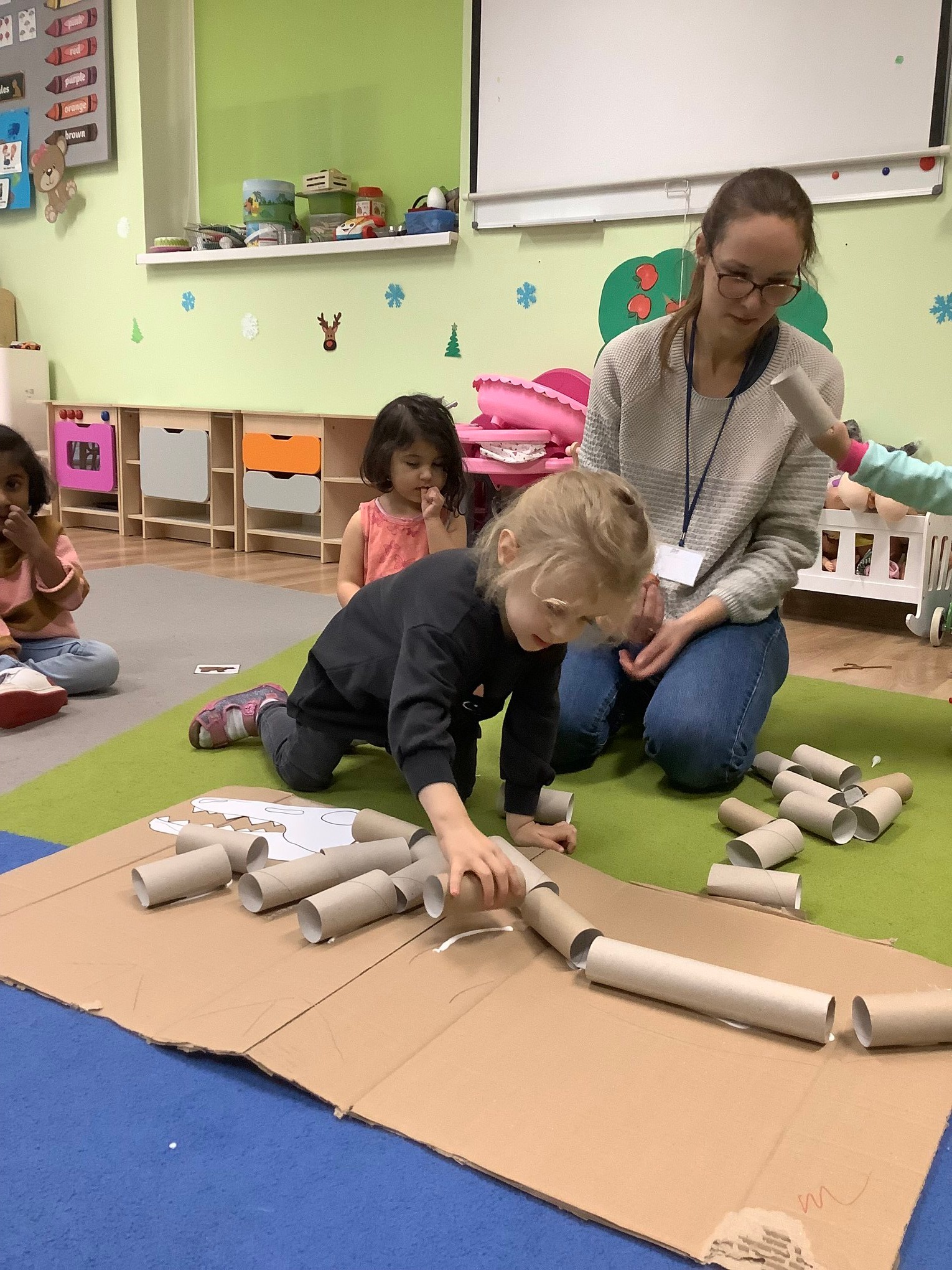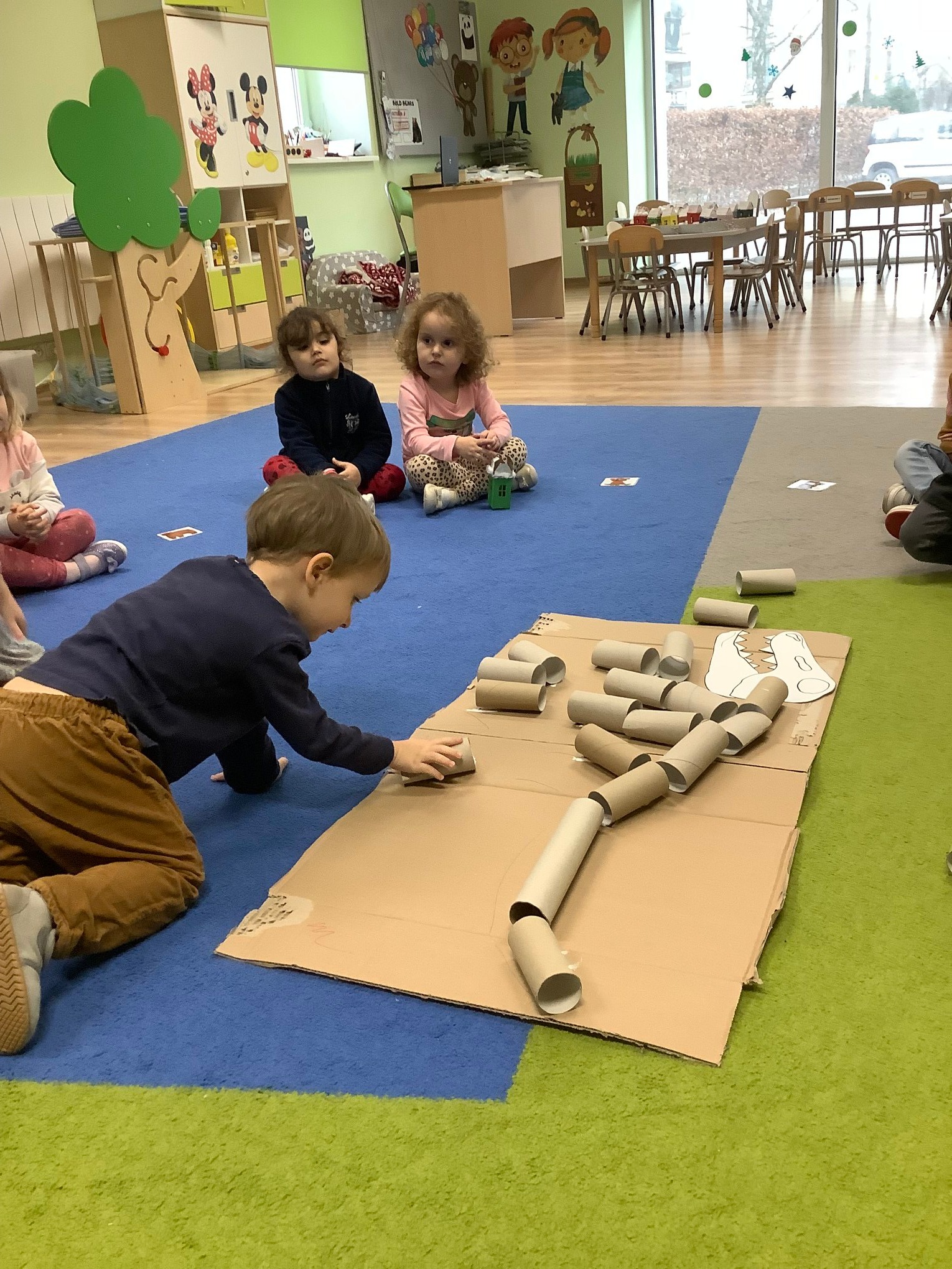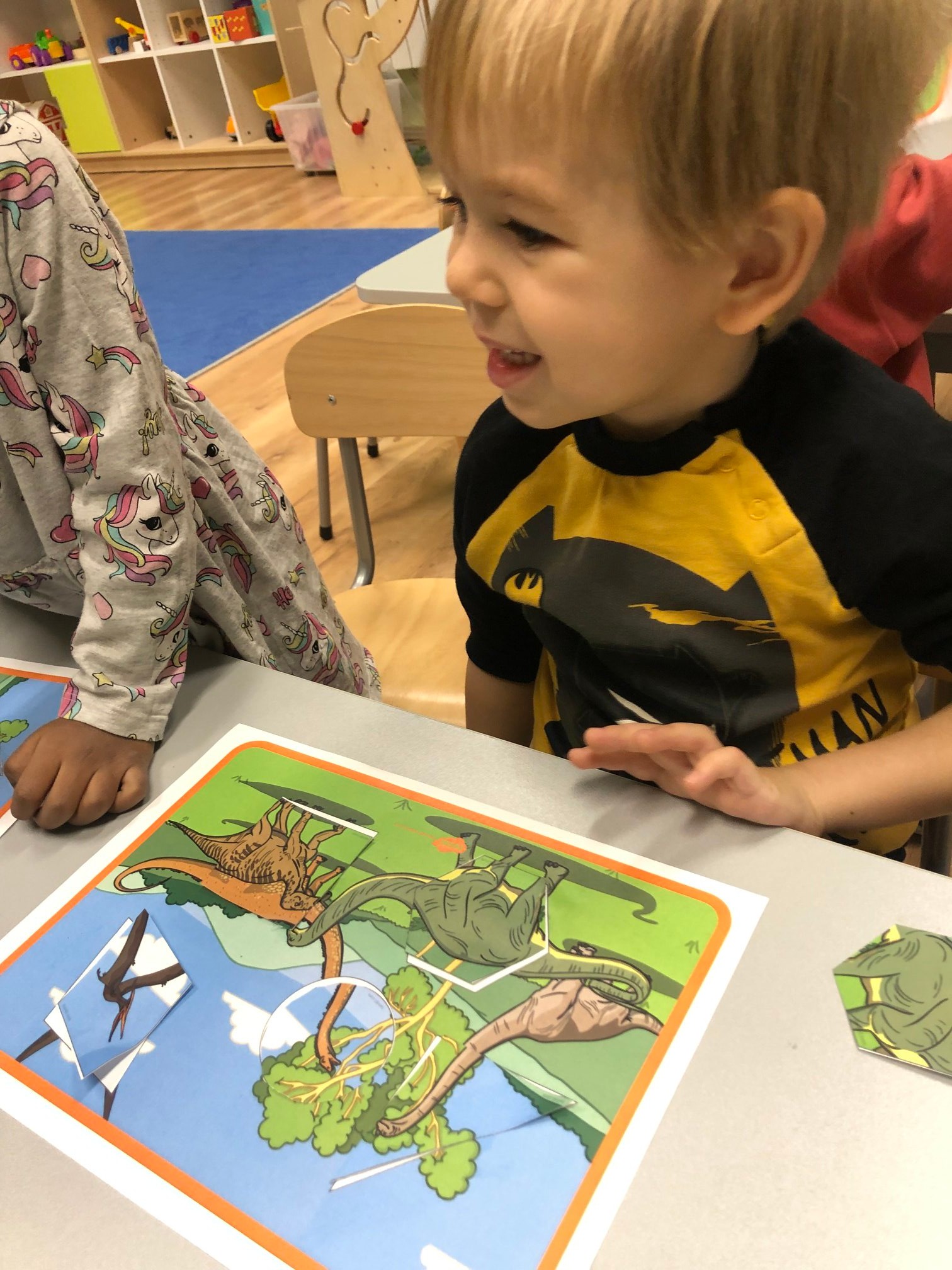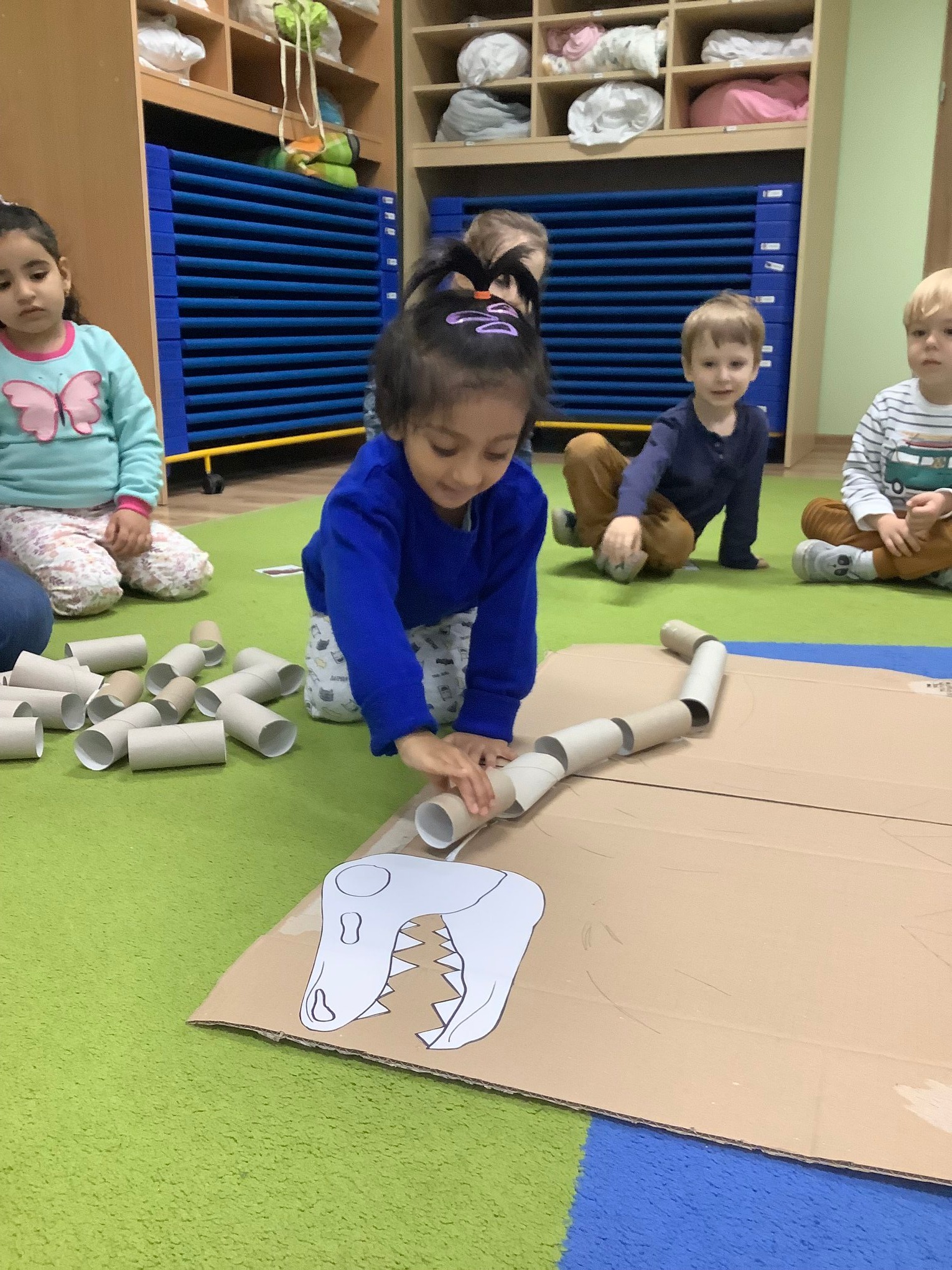 They talked about the colours of dinosaurs and saw that some of them had long tails and some of them had short tails. Doing dinosaur puzzles, artwork with crafting materials and making a dinosaur with cardboard rolls were some of the fun activities they had!