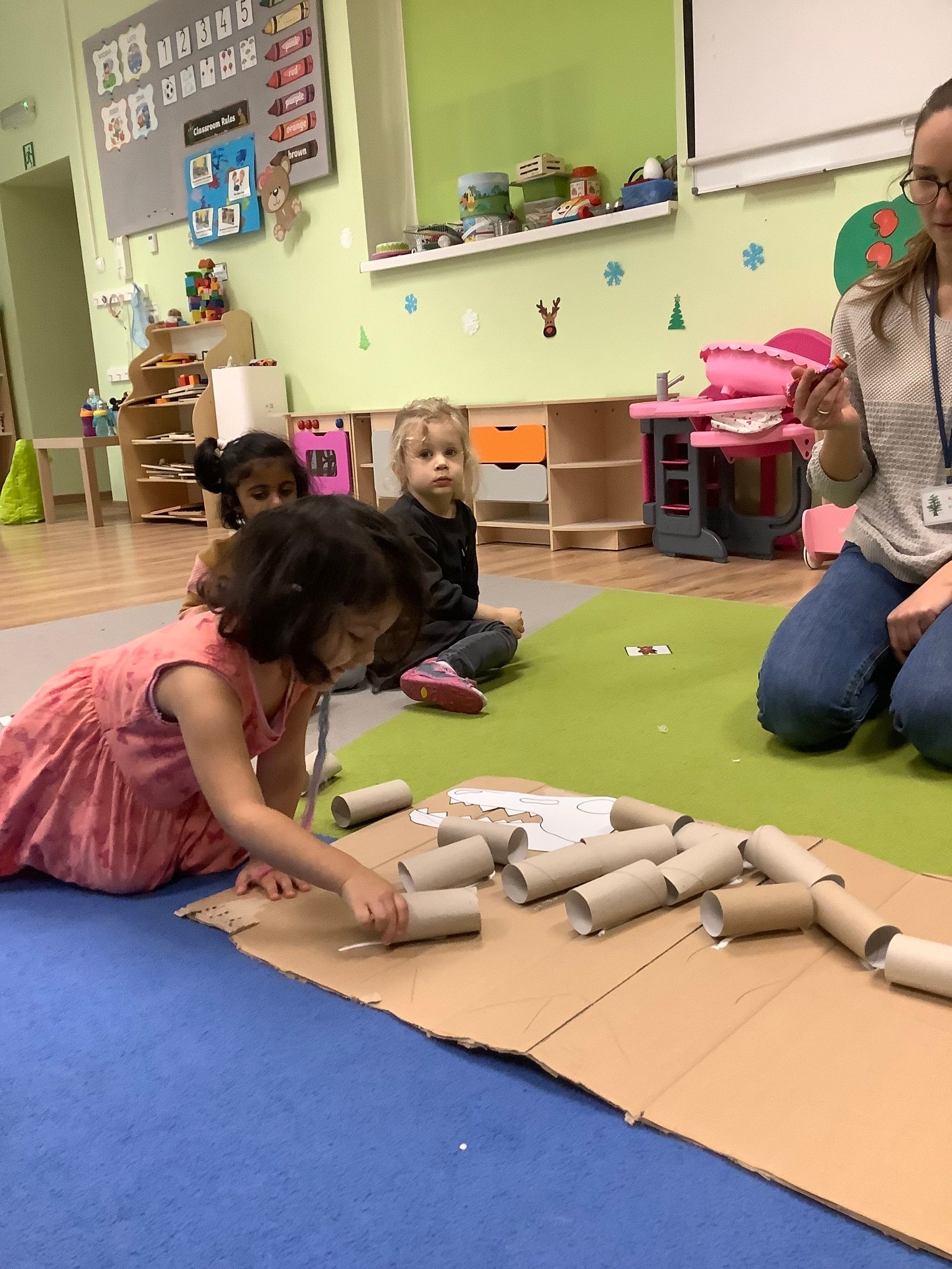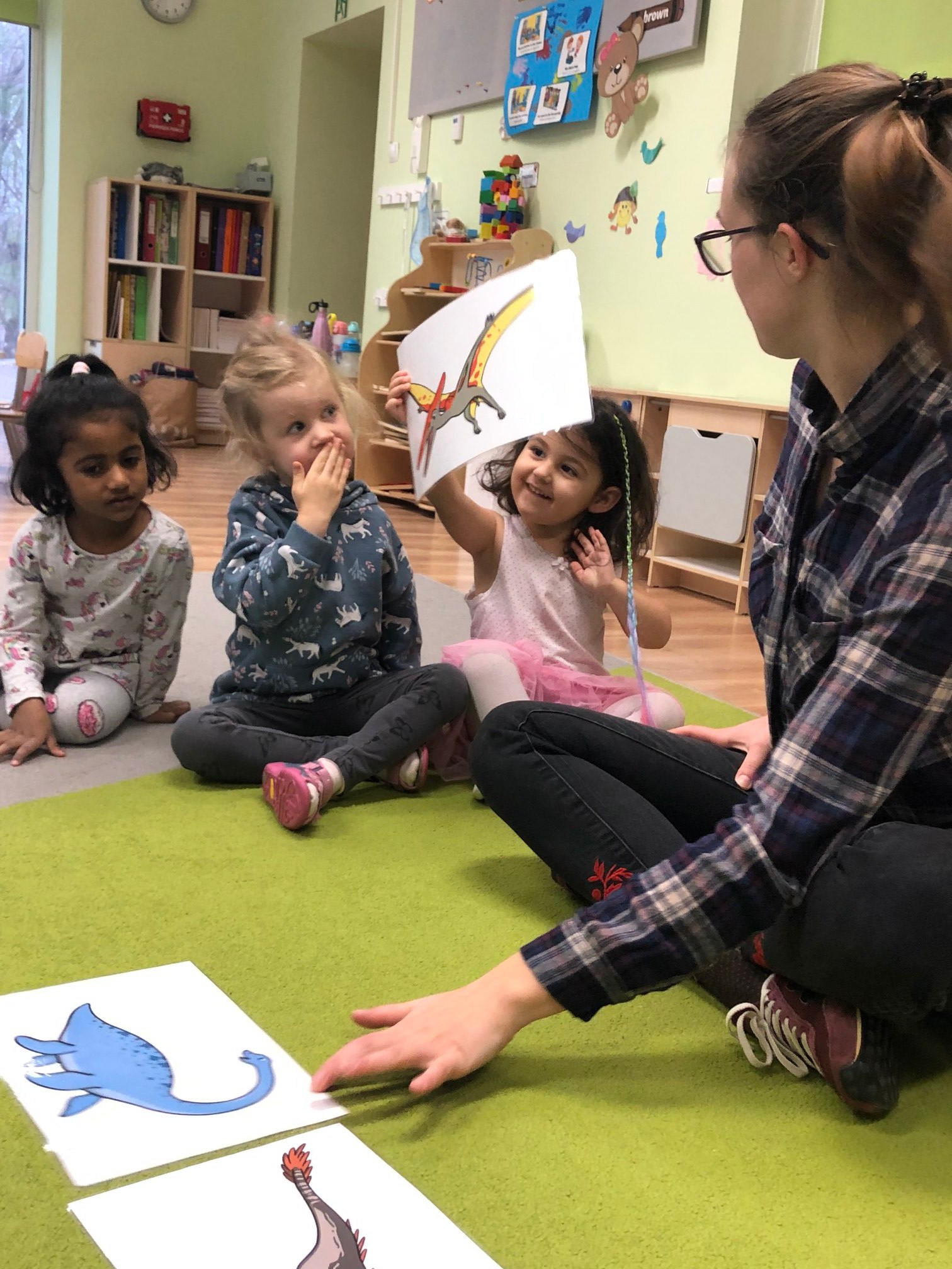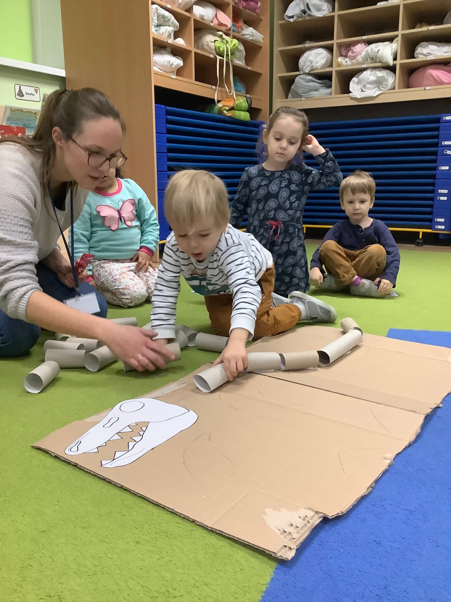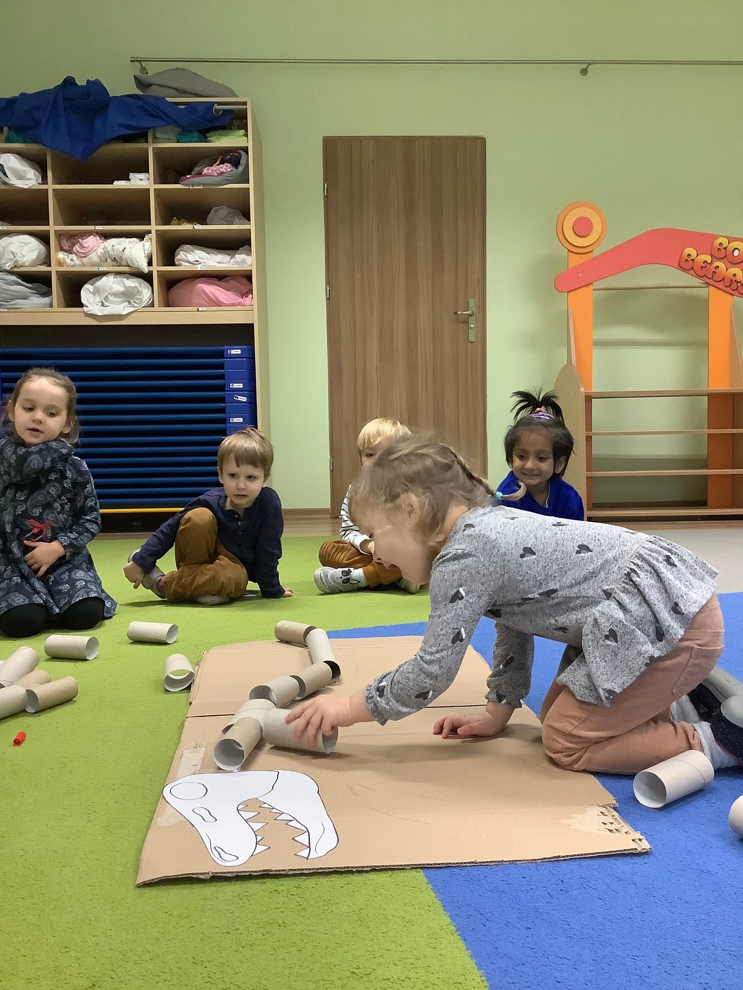 They talked about the colours of dinosaurs and saw that some of them had long tails and some of them had short tails. Doing dinosaur puzzles, artwork with crafting materials and making a dinosaur with cardboard rolls were some of the fun activities they had!