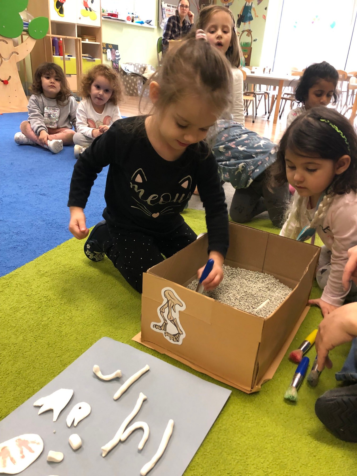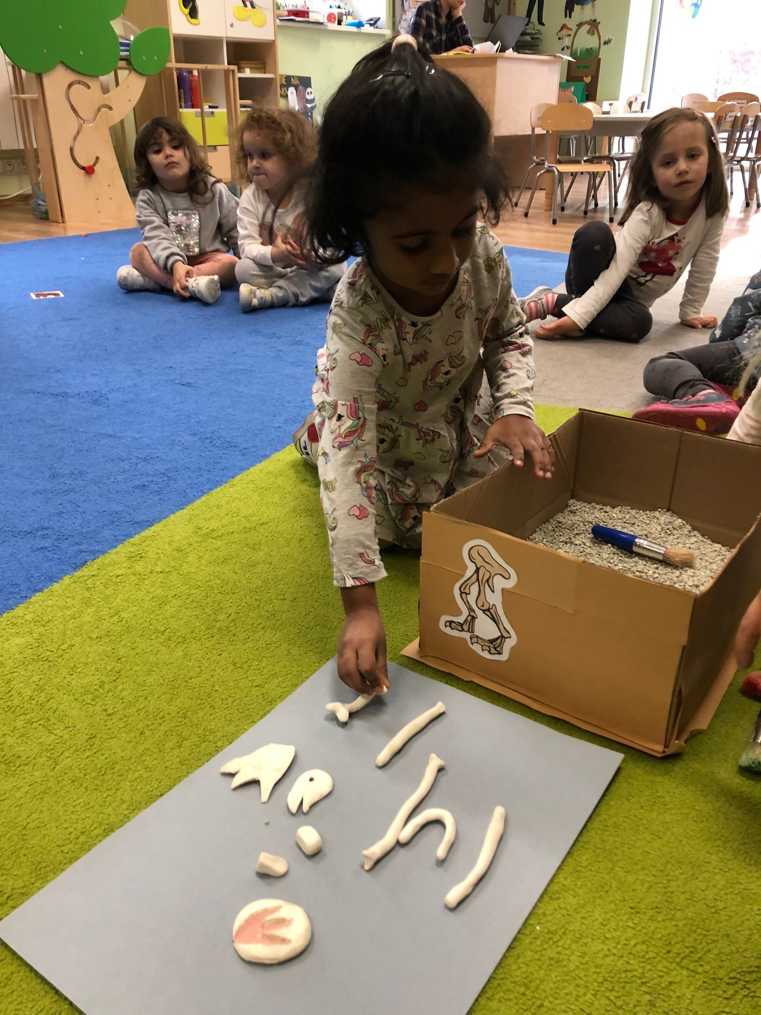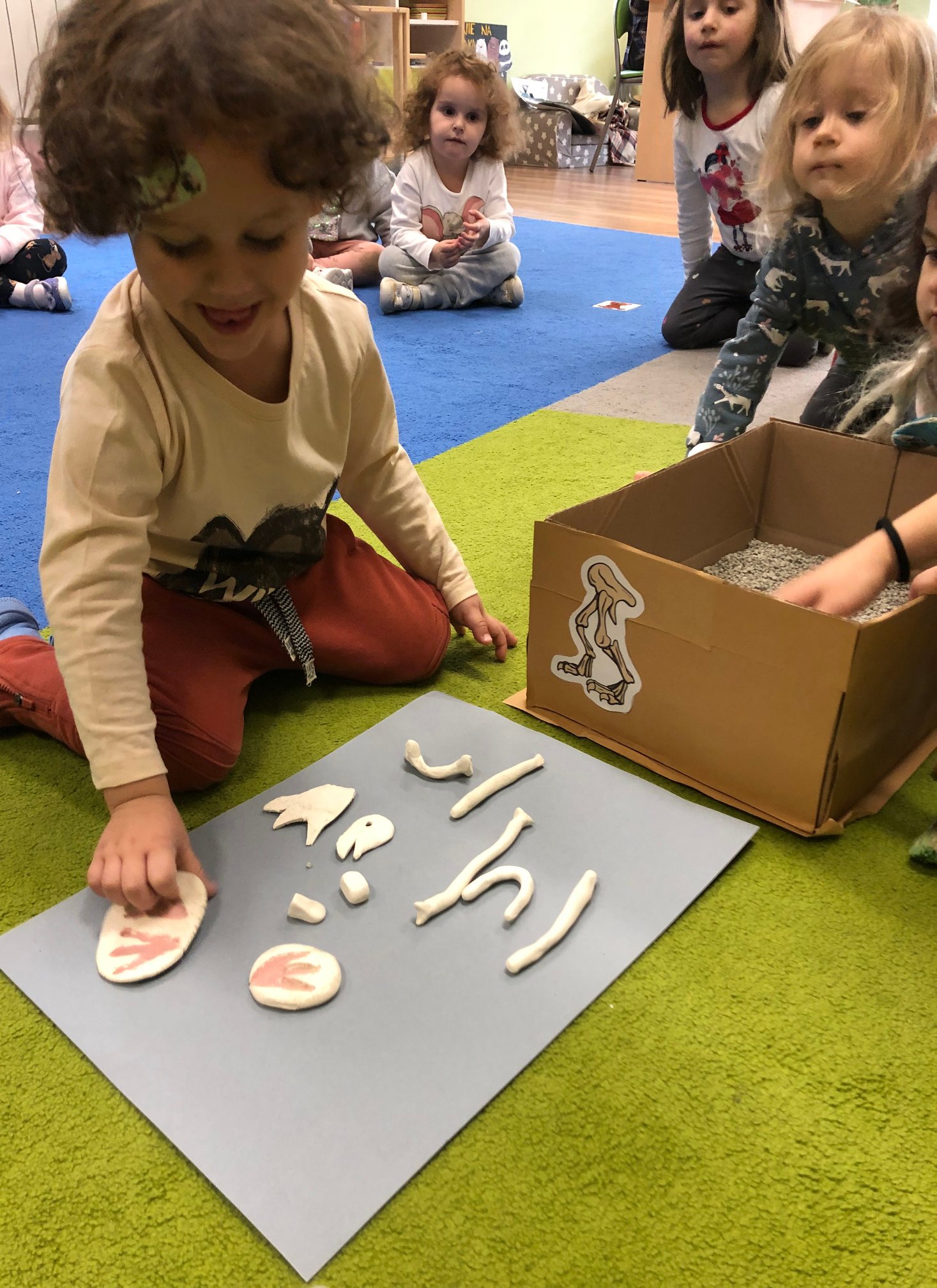 Bold Bears looked for some dinosaur bones and fossils in a box like an archaeologist and found so many different types of bones and fossils.