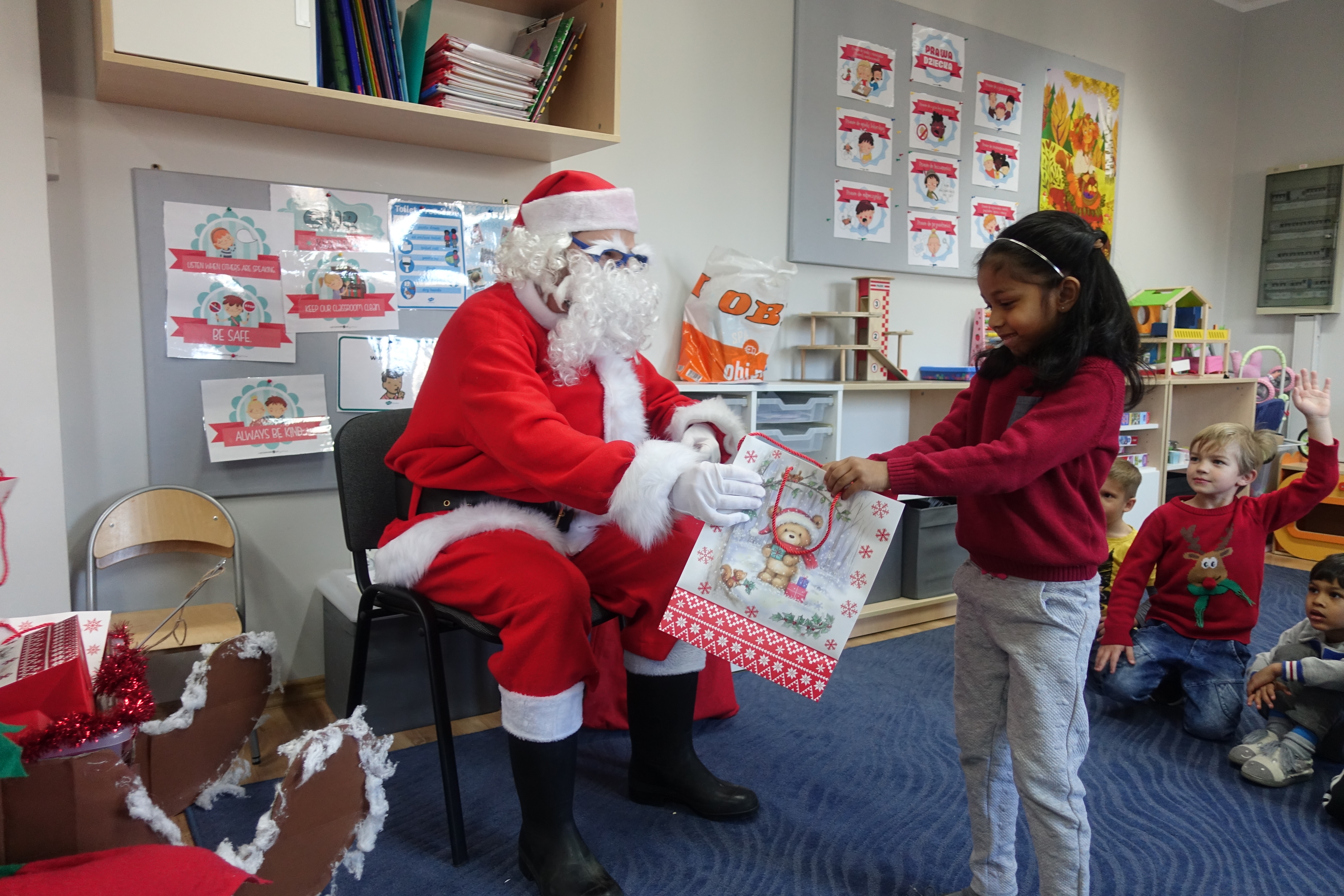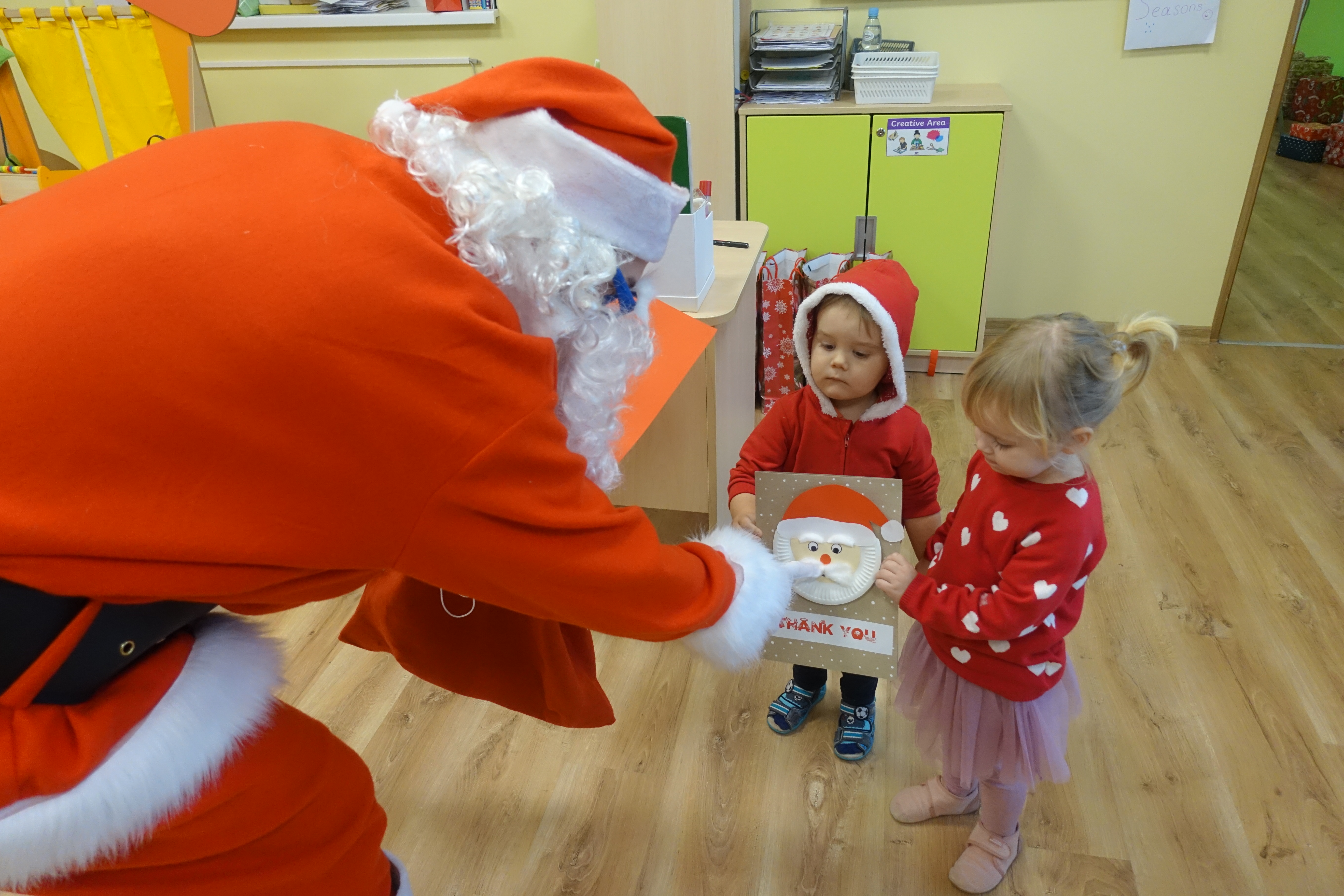 Today our kindergarten has been visited by Santa Claus himself! Together with his helper – an elf – Santa visited all the groups and gave presents to the children. As a thank you each group prepared a short perfomance. It was a very exciting and most of all a very happy day!