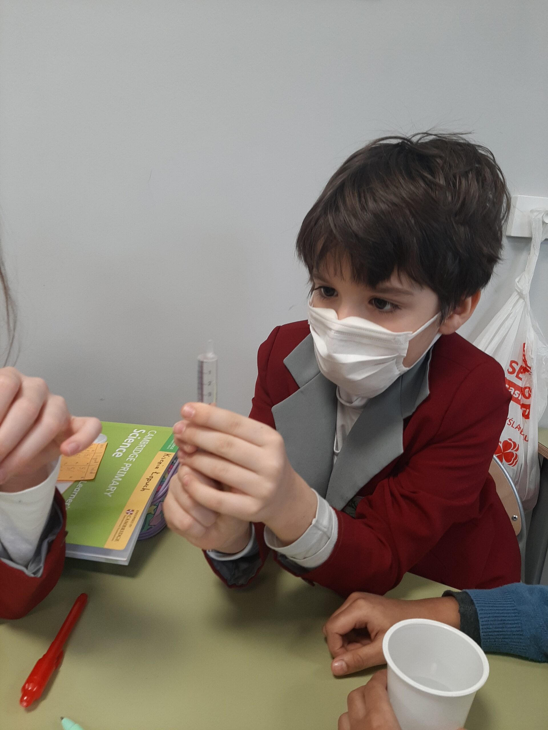 In Science Cambridge, 3c students investigate the properties of various states of matter. Recently, they have been investigating whether it is possible to change the volume of gases, liquids and solids using the example of air, water and ice in a syringe. See how they did.