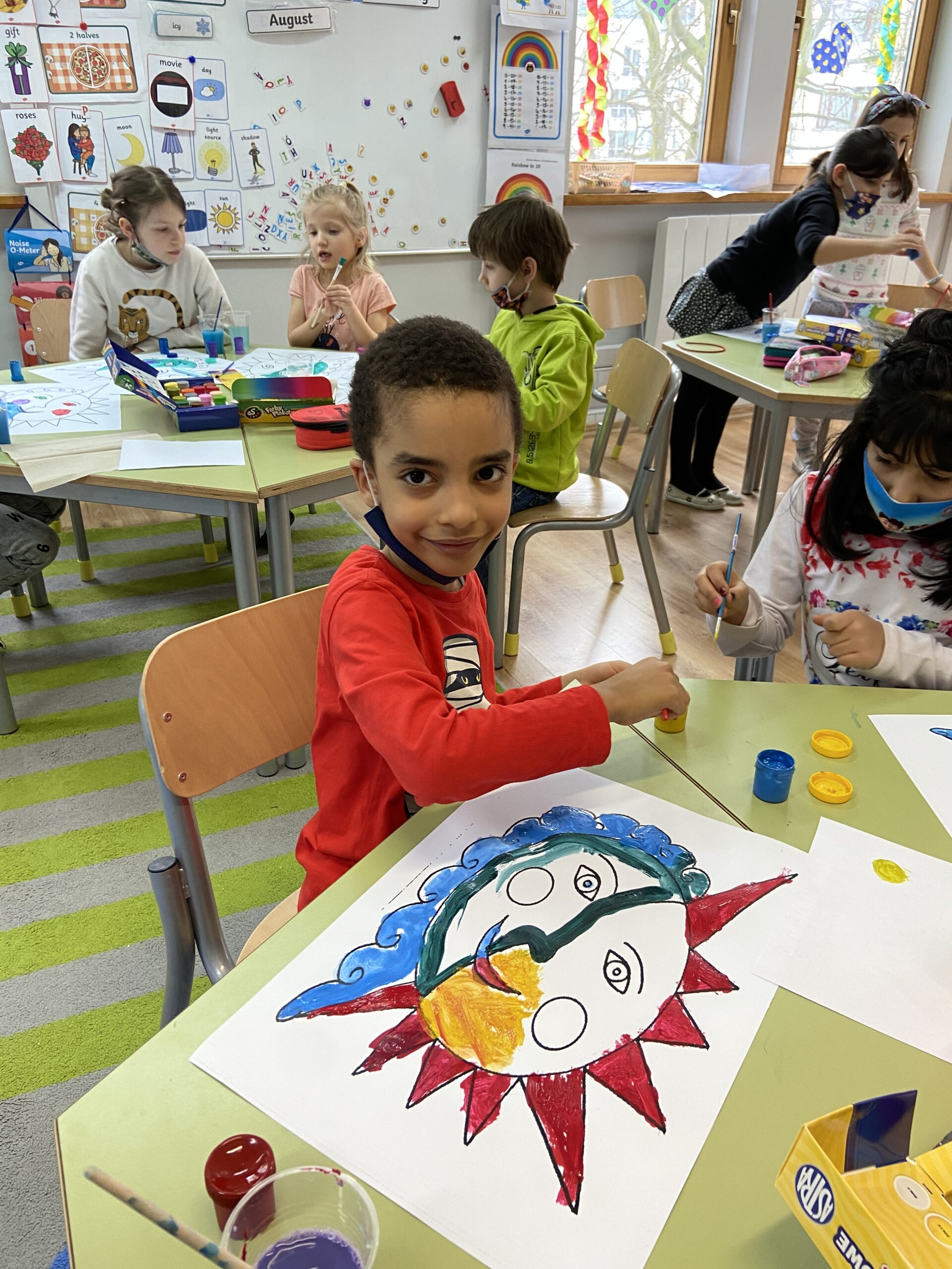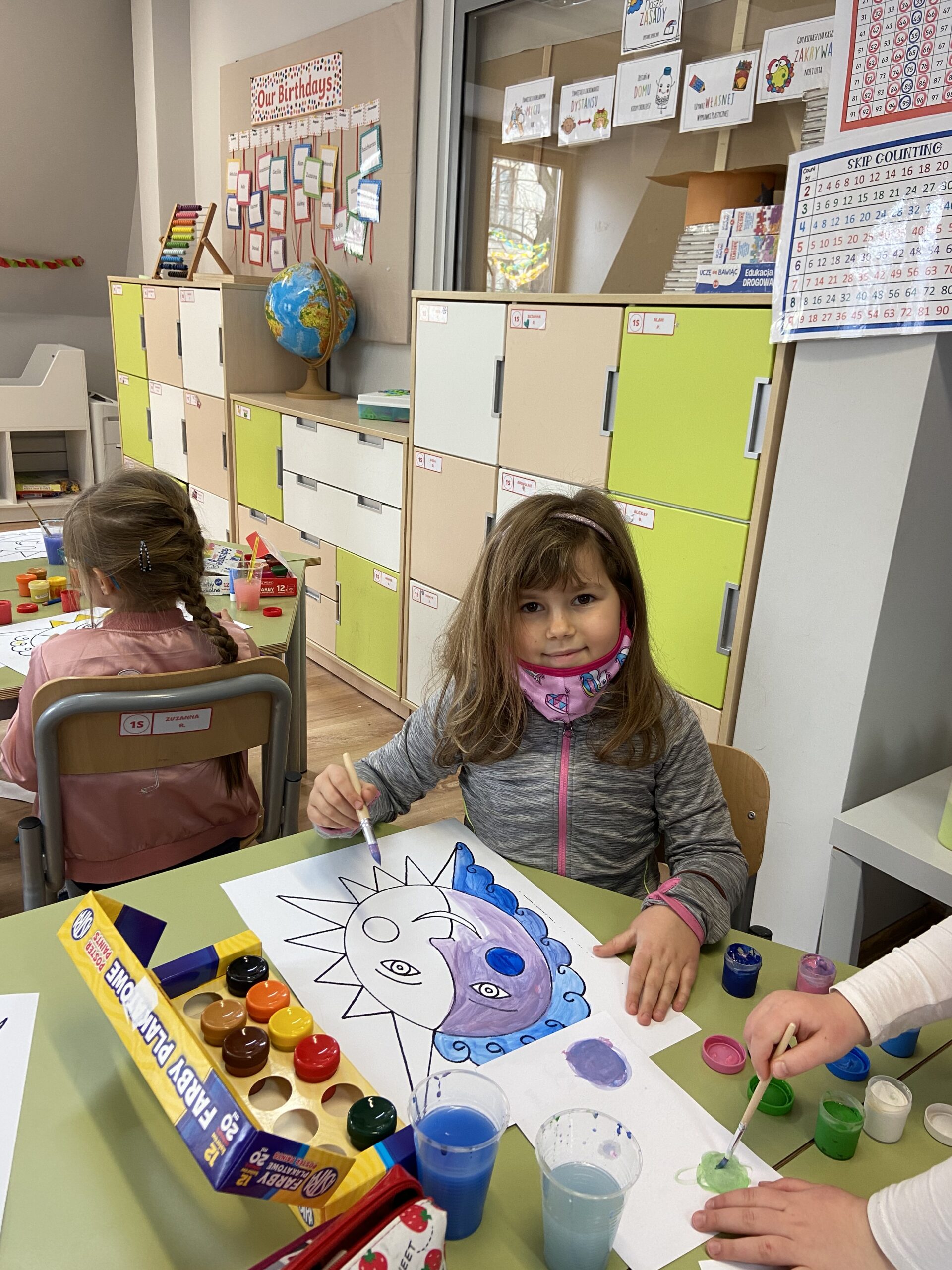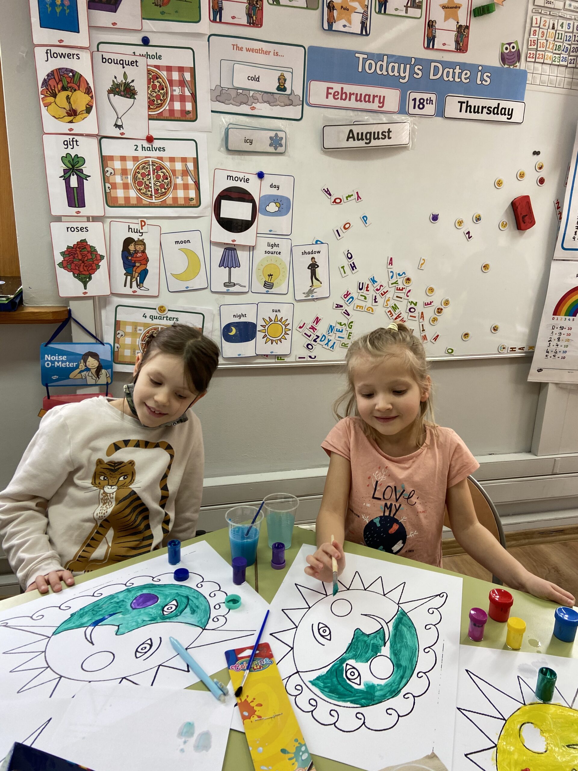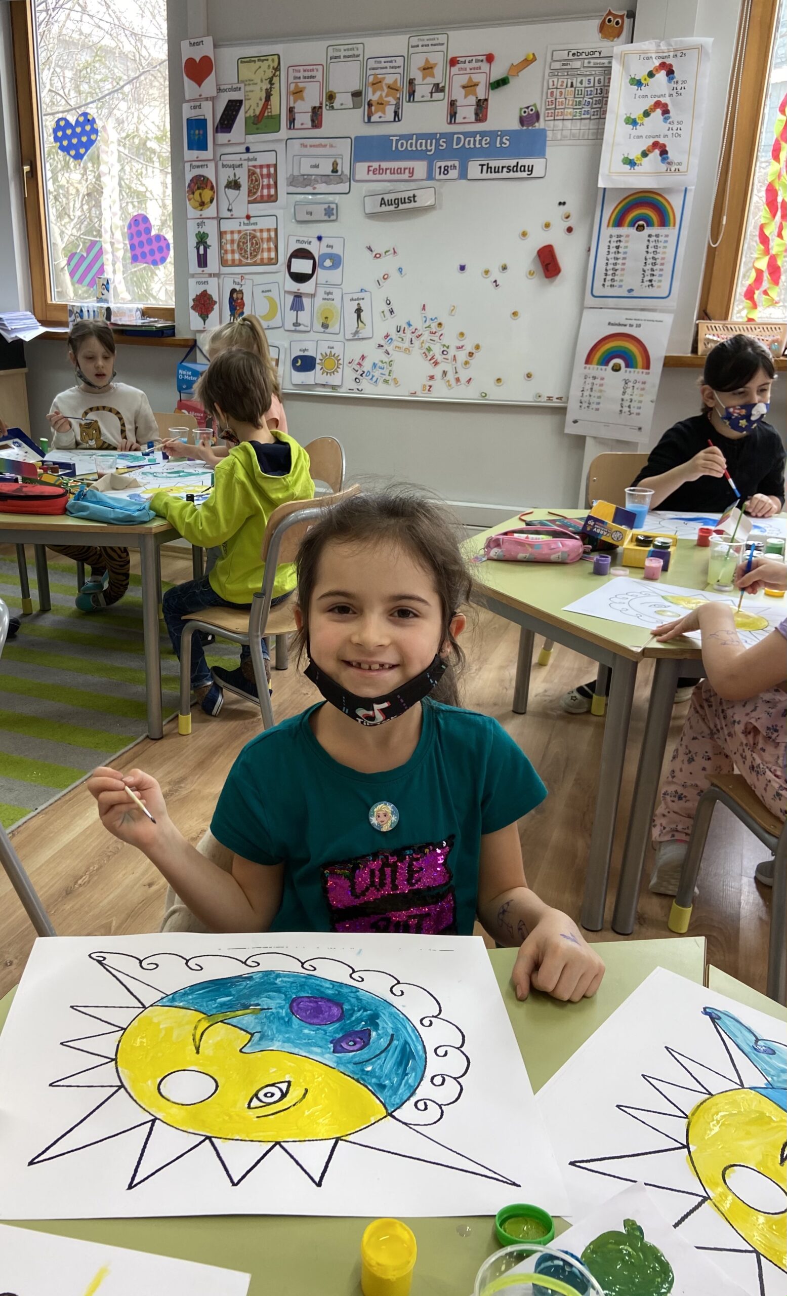 After talking about warm and cold colors, learners from 1S demonstrated their knowledge and skills on the intertwined Sun and Moon picture. 🎨☀🌚