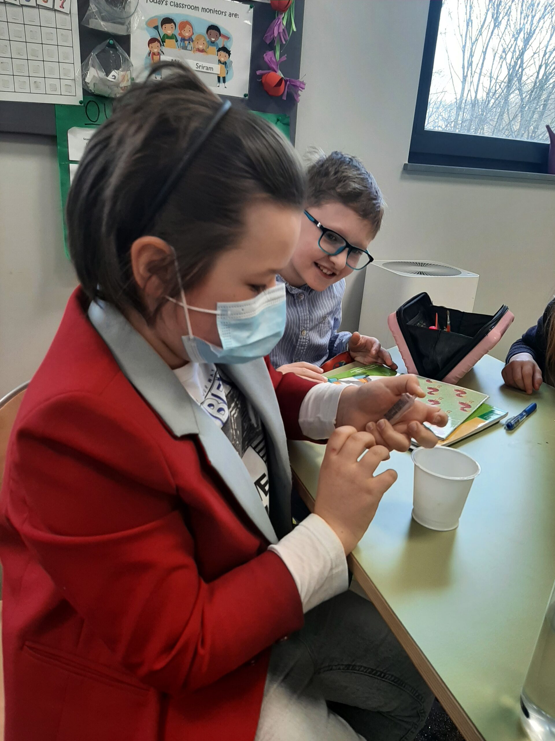 W ramach Science Cambridge uczniowie 3c badają właściwości różnych stanów skupienia materii. Ostatnio badali, czy można zmienić objętość gazów, cieczy i ciał stałych na przykładzie powietrza, wody i lodu zamkniętych w strzykawce. Zobaczcie, jak im poszło.