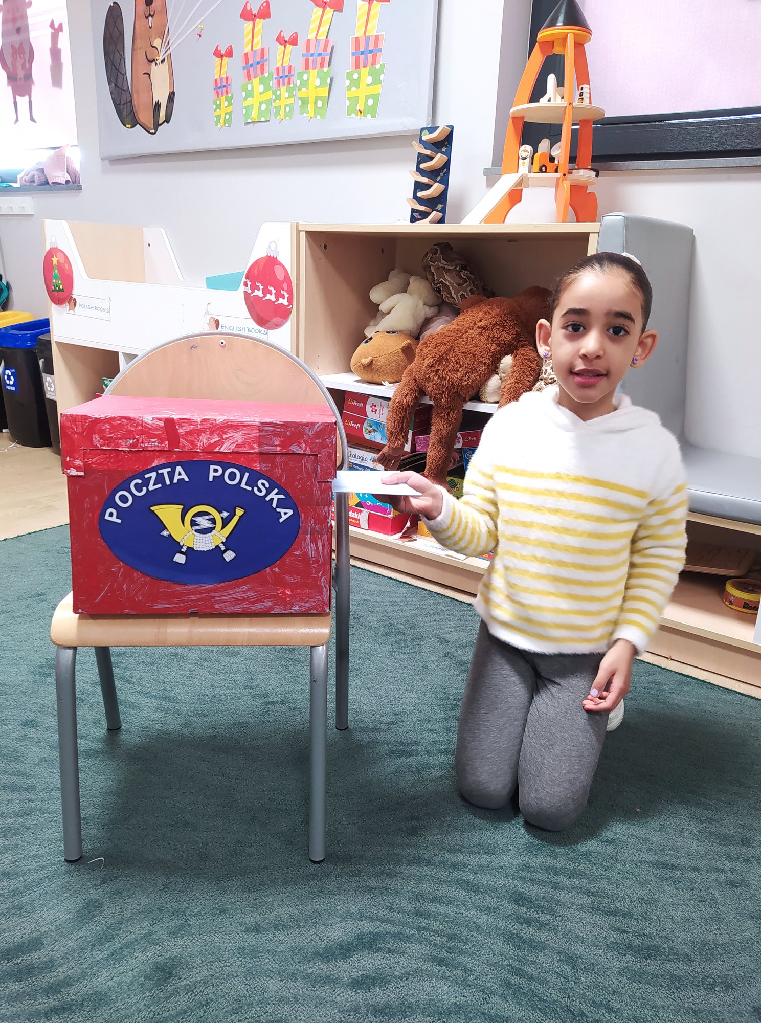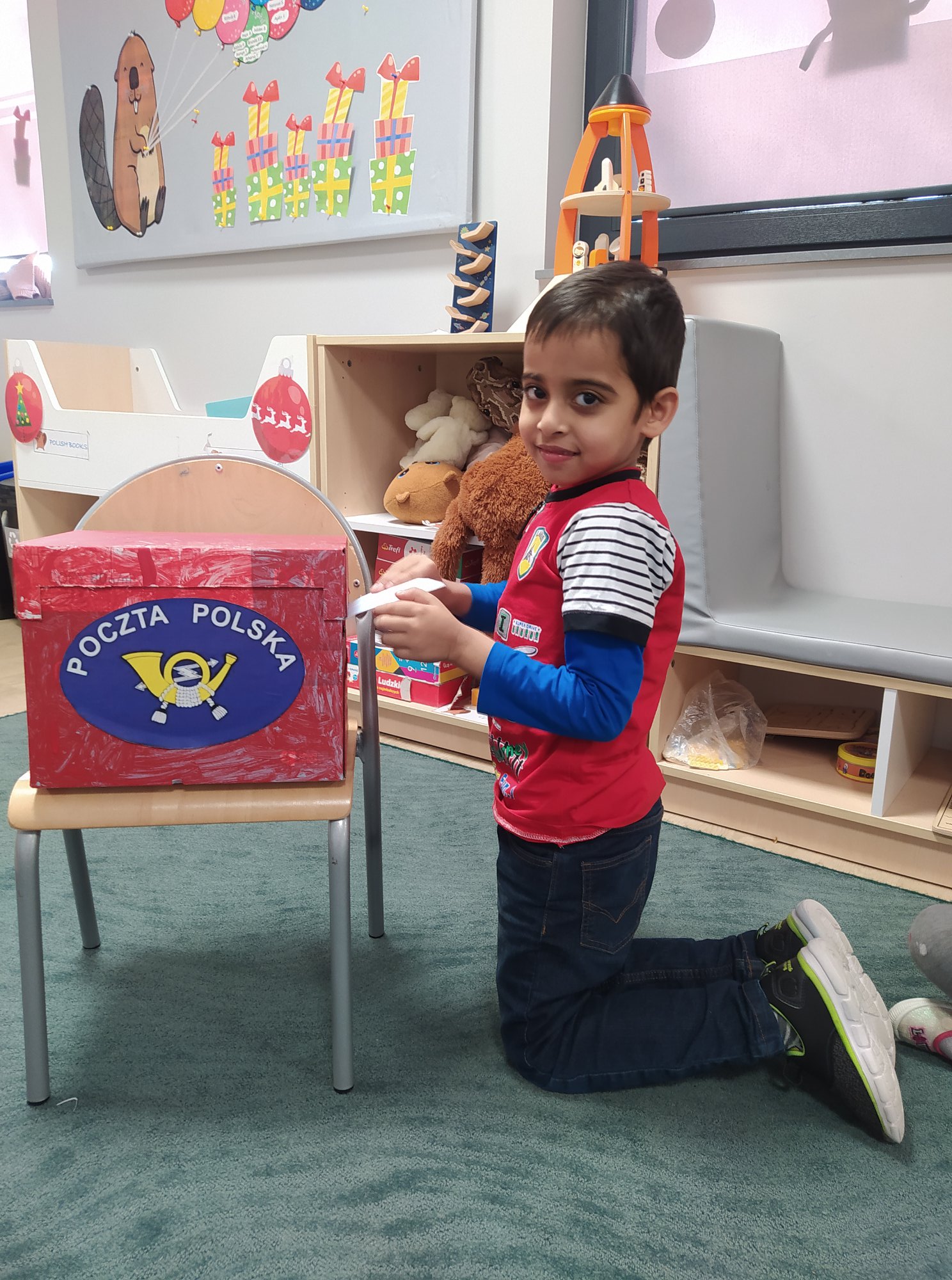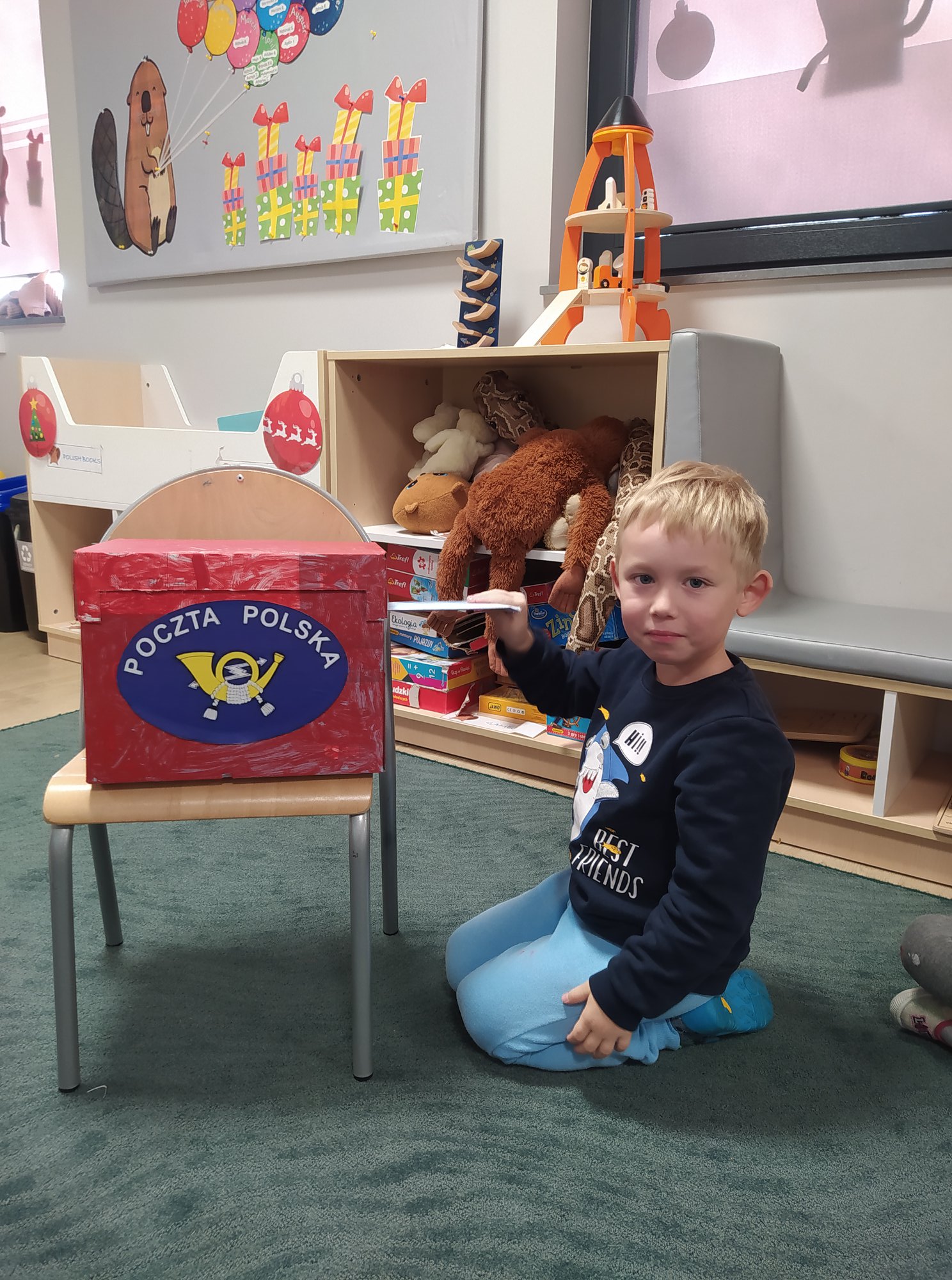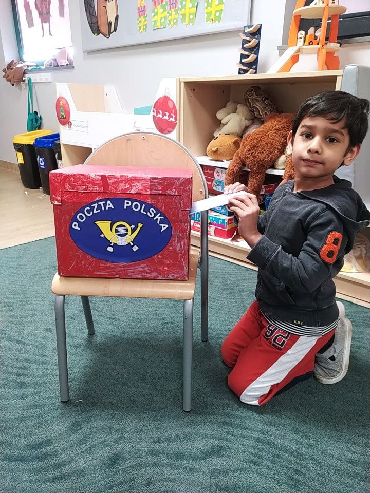 Dziś wykonaliśmy pierwsze zadanie i stworzyliśmy piękne listy do św. Mikołaja, które następnie włożyliśmy do naszej skrzynki pocztowej.