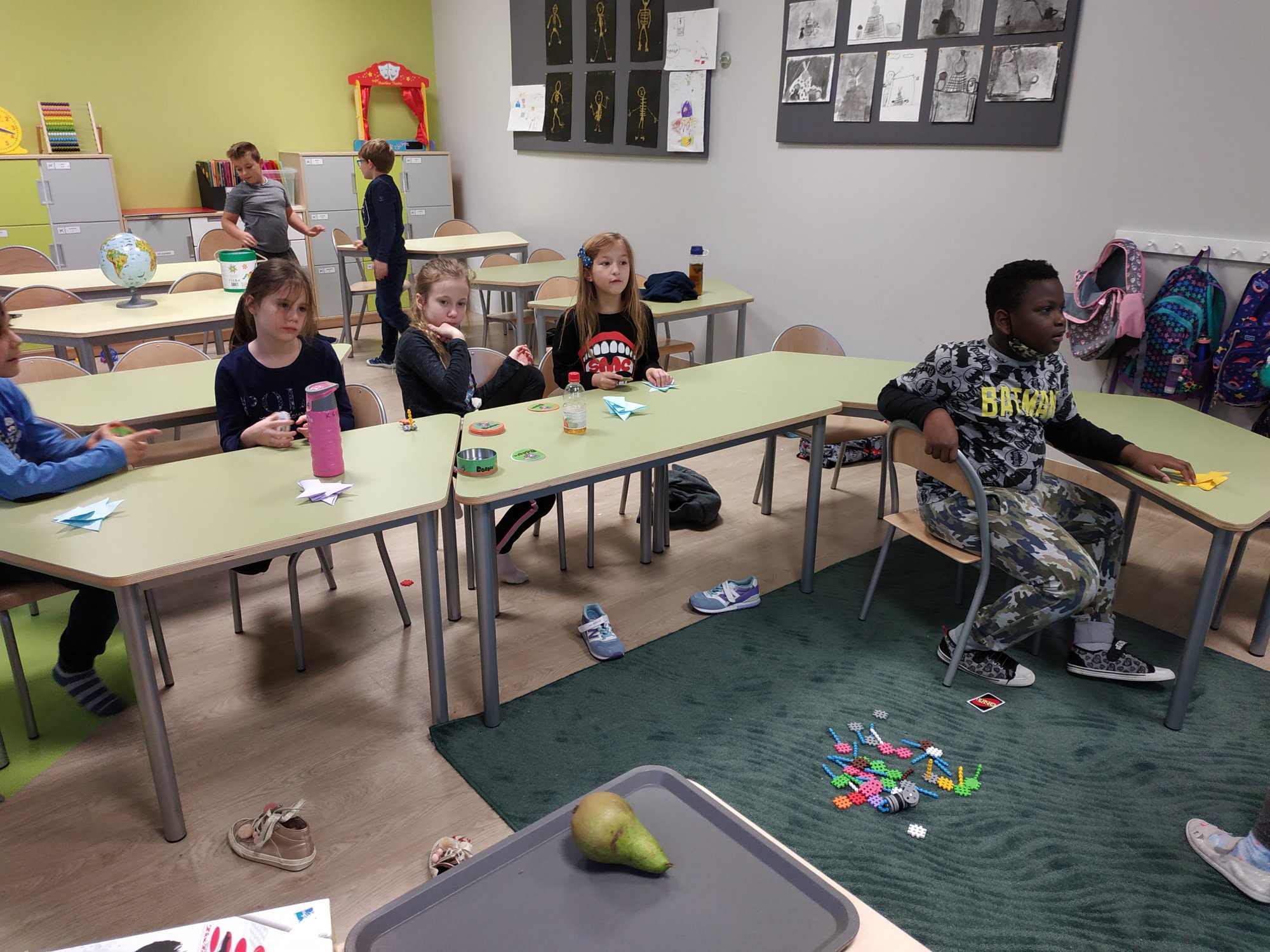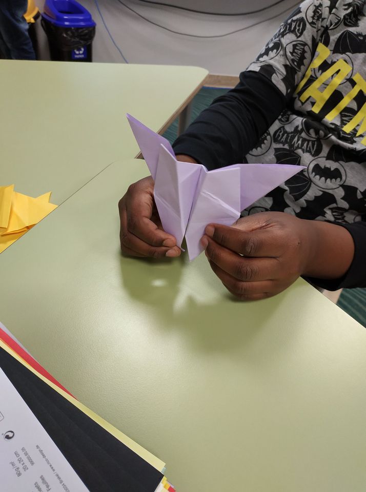 We wrześniu uczyliśmy się tworzyć kształty z origami. Uczniowie mieli okazję poznać tę tradycyjną formę sztuki japońskiej, a przy okazji rozwinąć małą motorykę i inteligencję przestrzenną. Mieliśmy małe sukcesy, choć czasem nie wszystko szło po naszej myśli. Zaczynamy od prostych projektów – gwiazdki i motyla, ale liczymy, że juz wkrótce uda nam się stworzyć bardziej skomplikowane kompozycje, na przykład kangura. 🦘