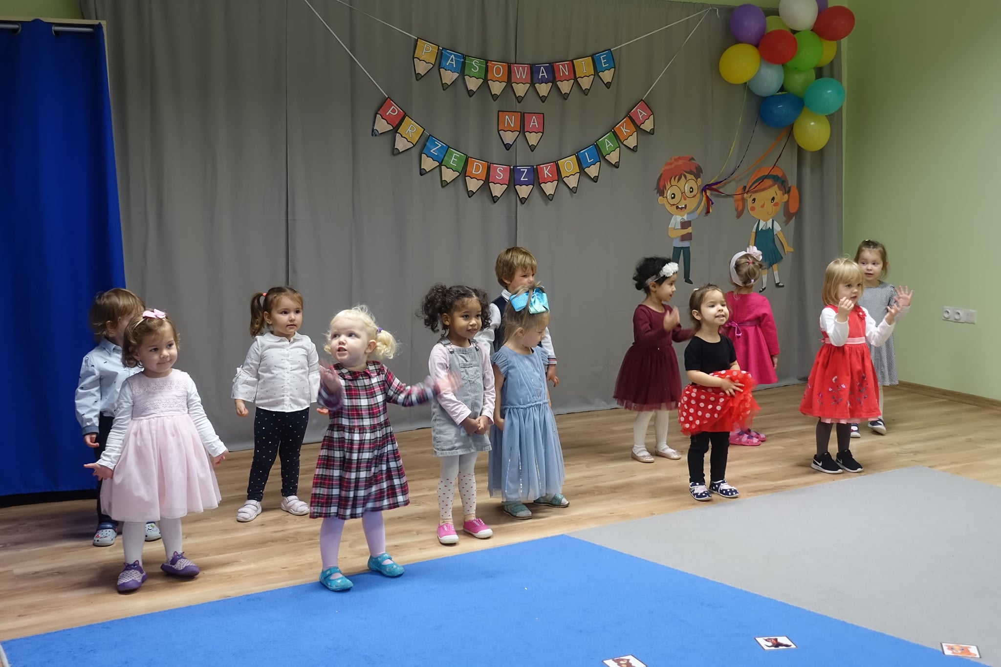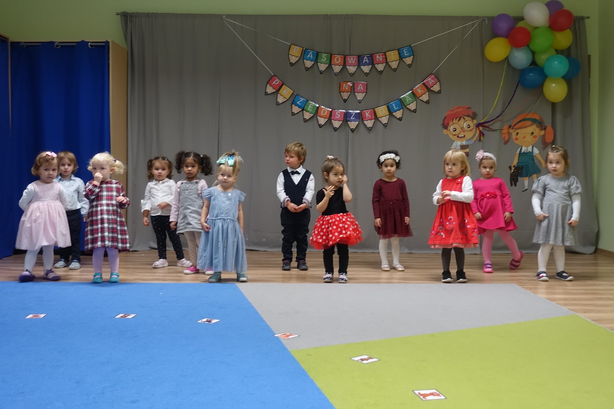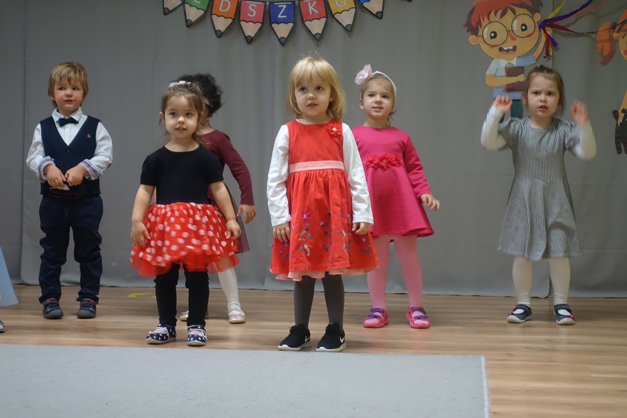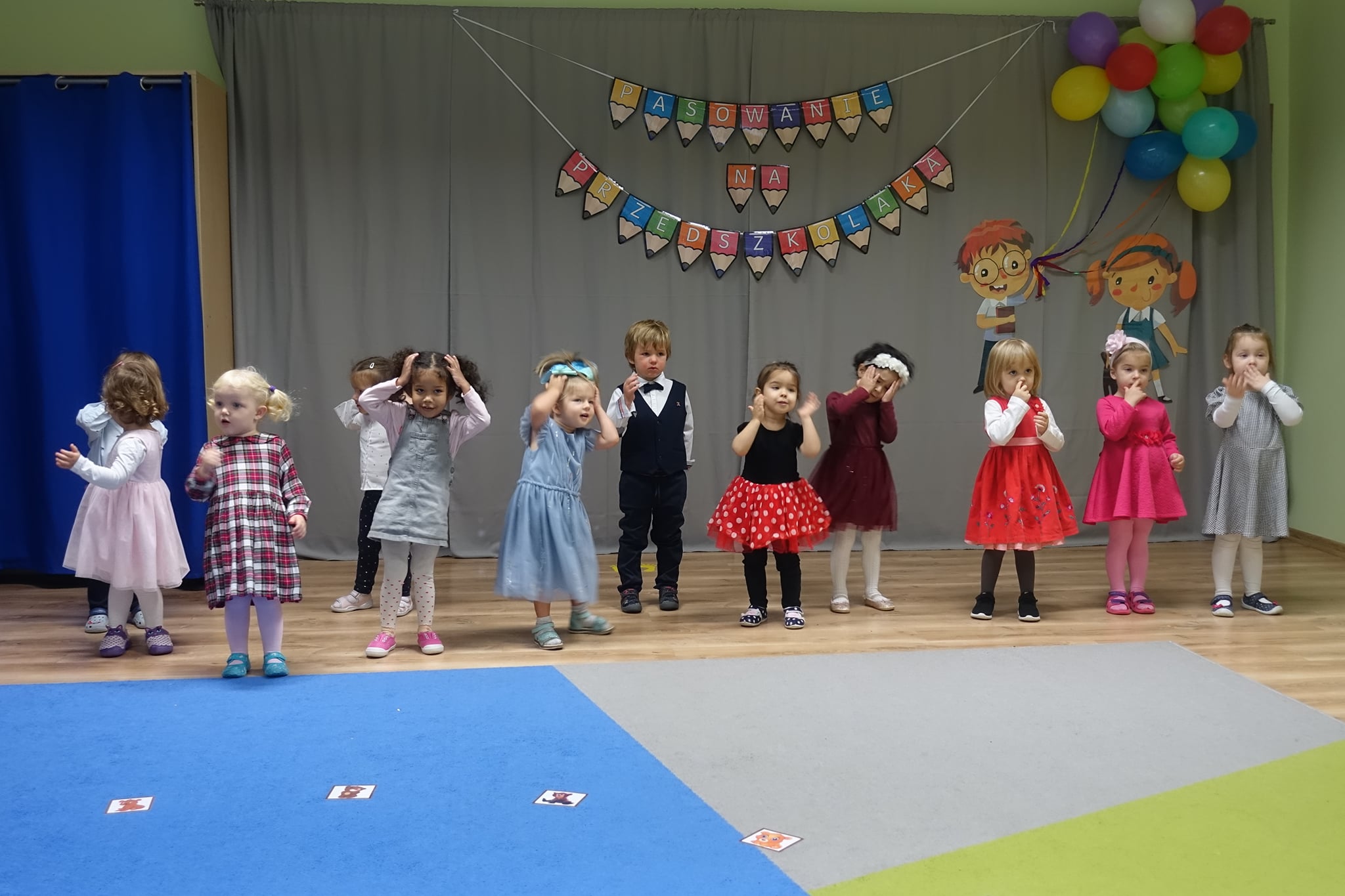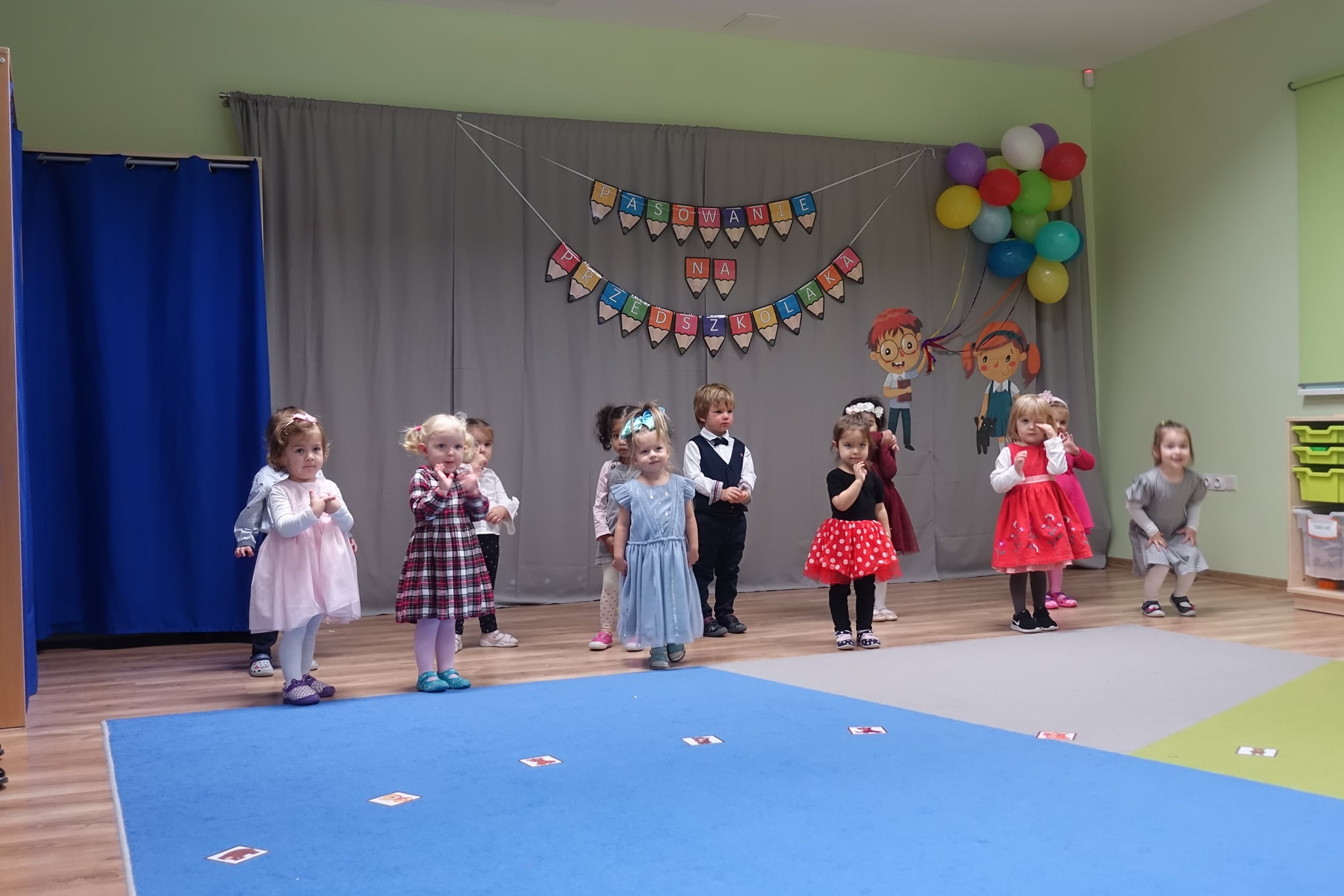 Dla przedszkolaków z grupy Bold Bears było to ogromne przeżycie. Mali artyści zaprezentowali przygotowane piosenki, tańce i wierszyk, a następnie Pani Dyrektor każdego pasowała na przedszkolaka olbrzymią kredką.