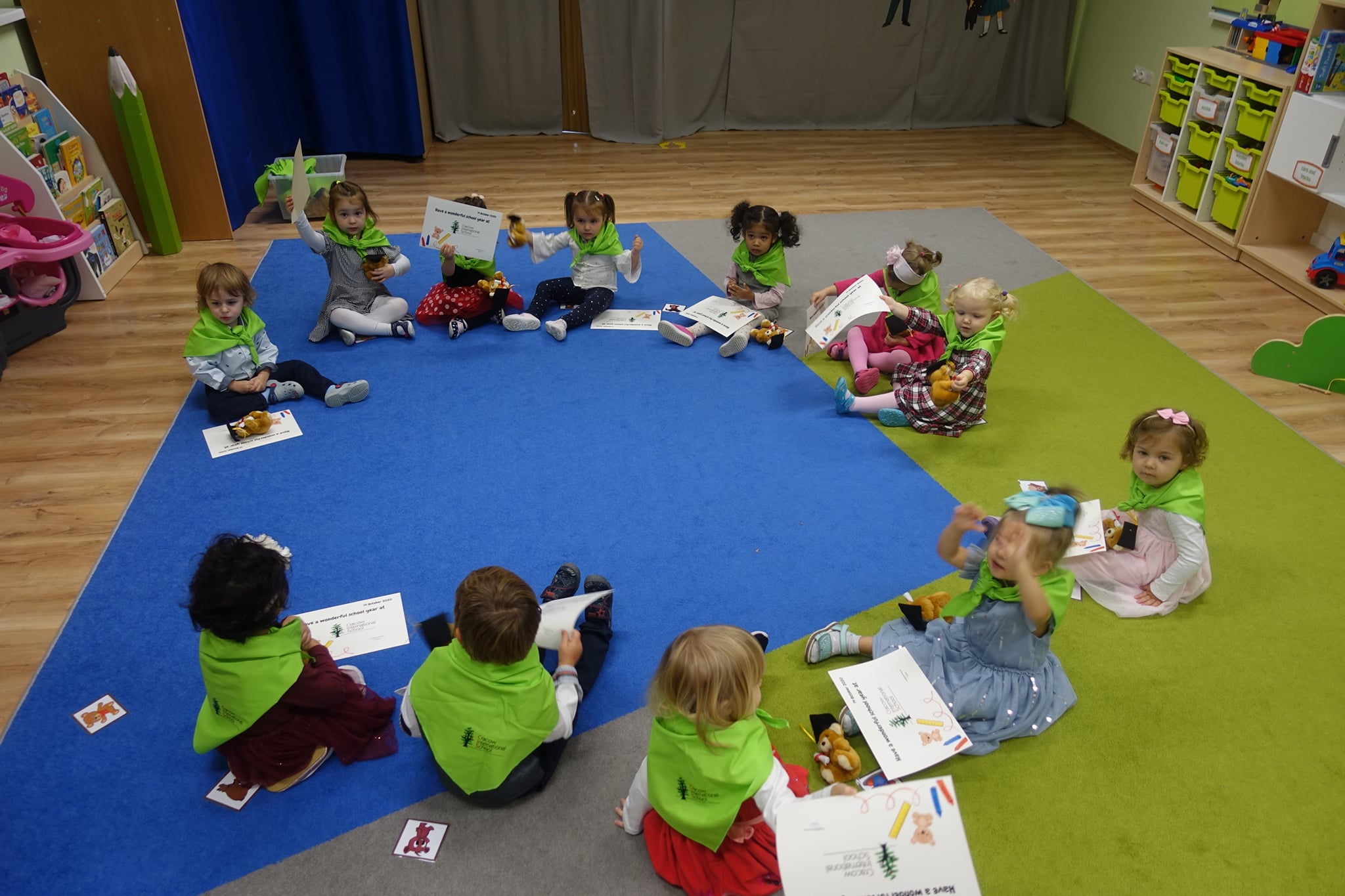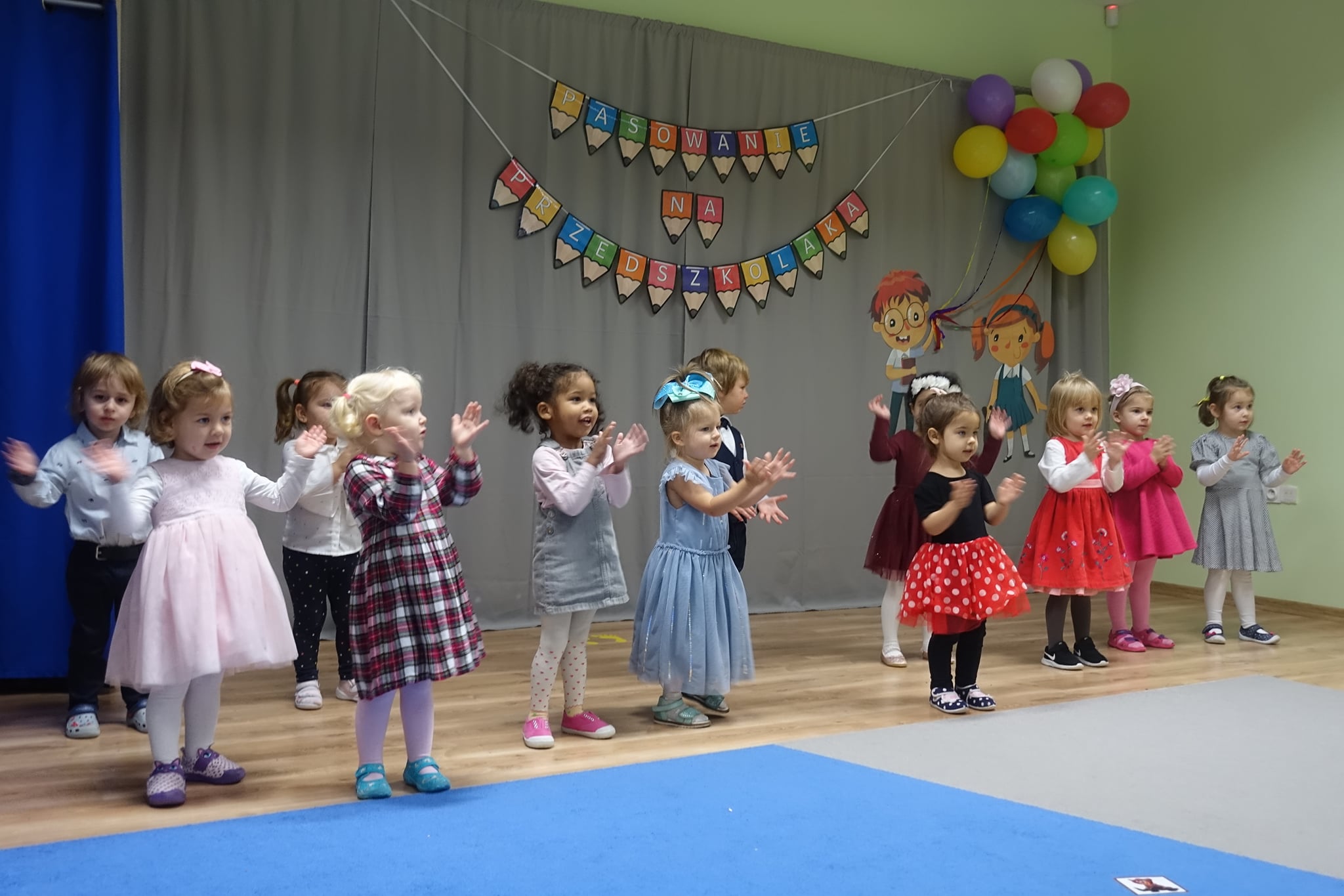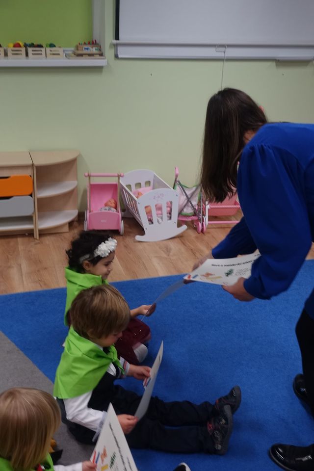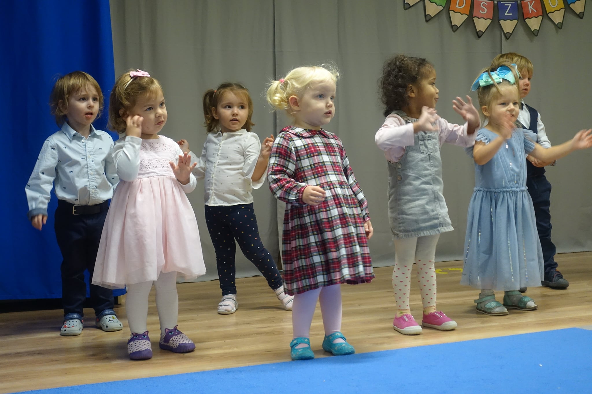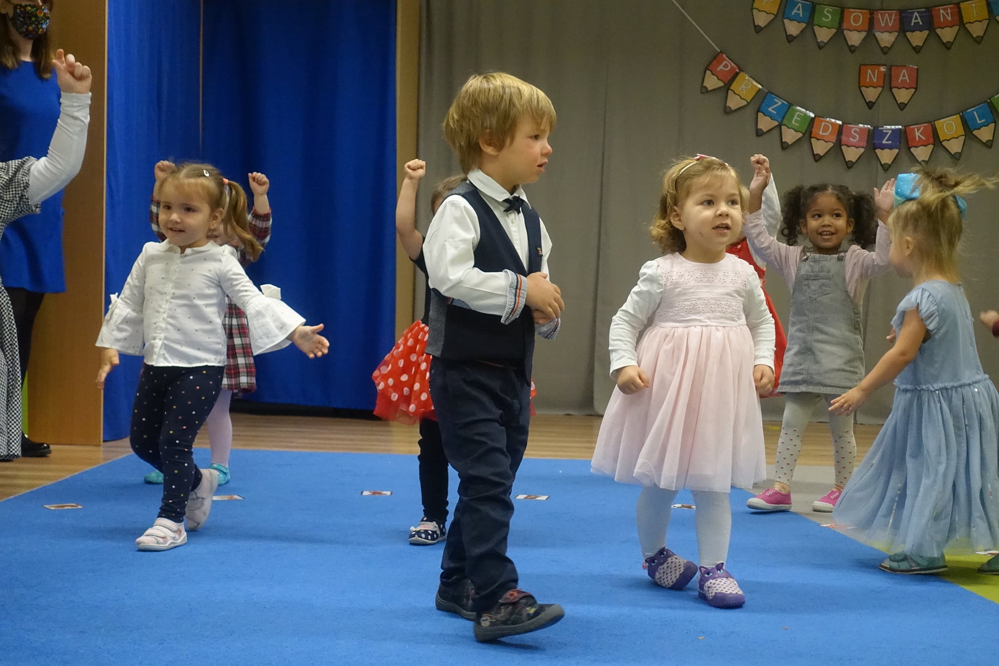 Dla przedszkolaków z grupy Bold Bears było to ogromne przeżycie. Mali artyści zaprezentowali przygotowane piosenki, tańce i wierszyk, a następnie Pani Dyrektor każdego pasowała na przedszkolaka olbrzymią kredką.