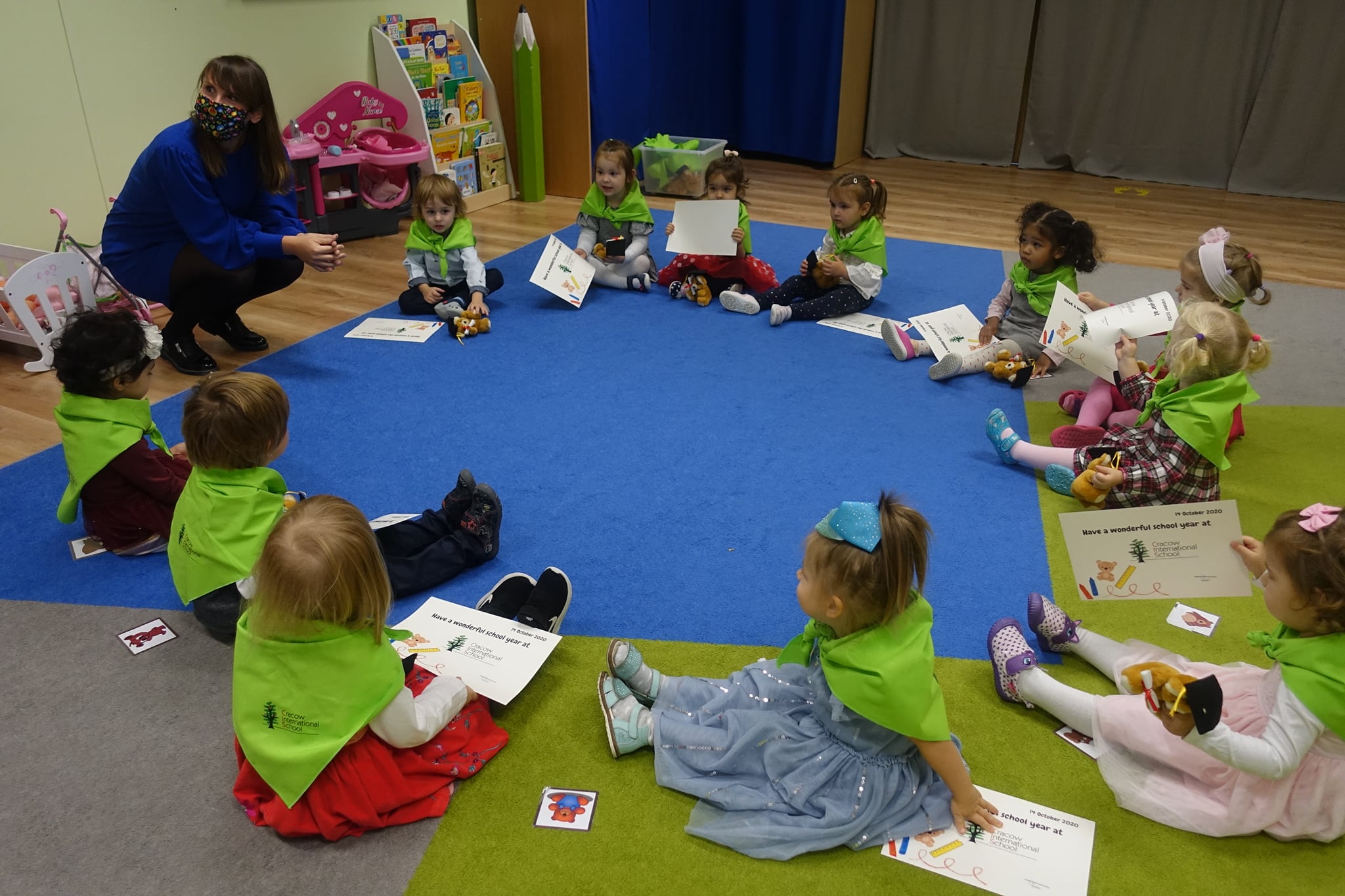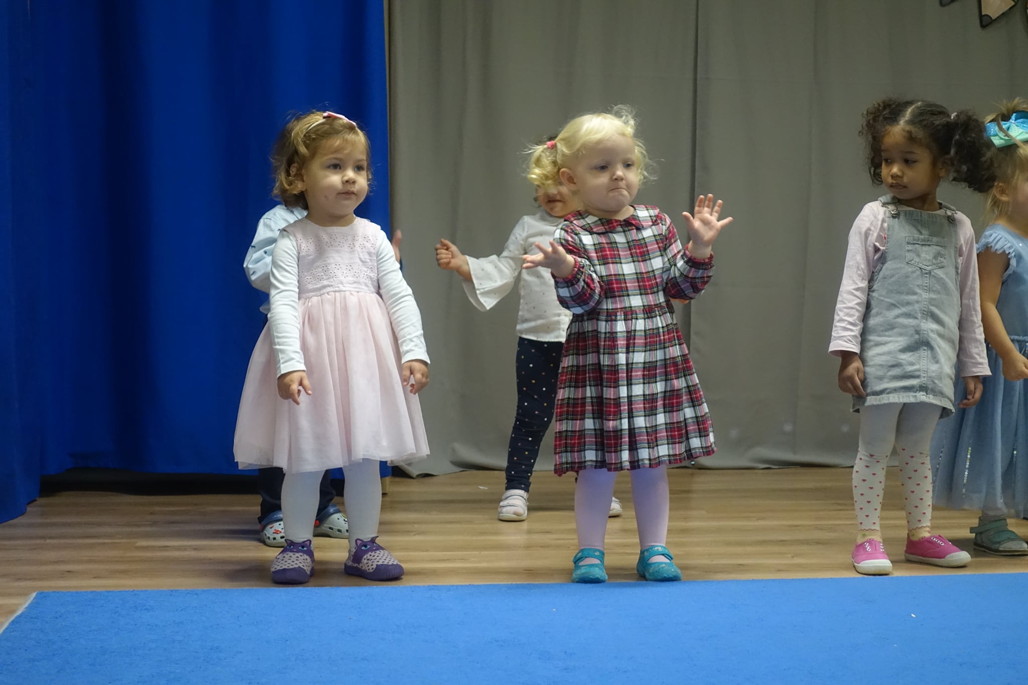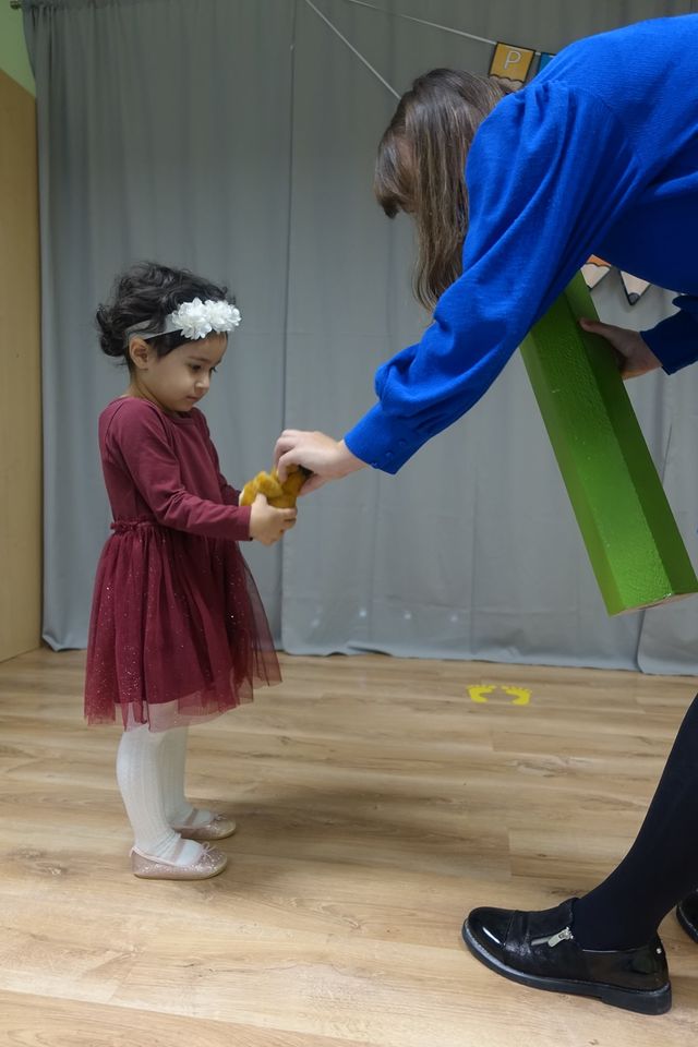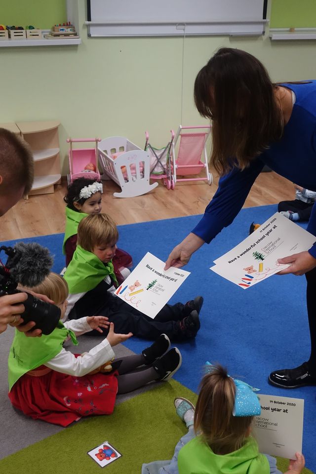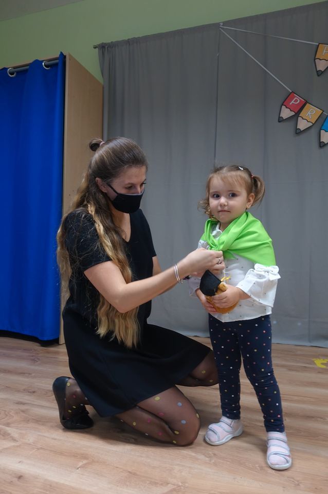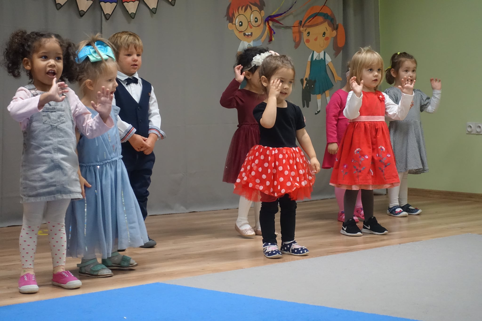 Dla przedszkolaków z grupy Bold Bears było to ogromne przeżycie. Mali artyści zaprezentowali przygotowane piosenki, tańce i wierszyk, a następnie Pani Dyrektor każdego pasowała na przedszkolaka olbrzymią kredką.