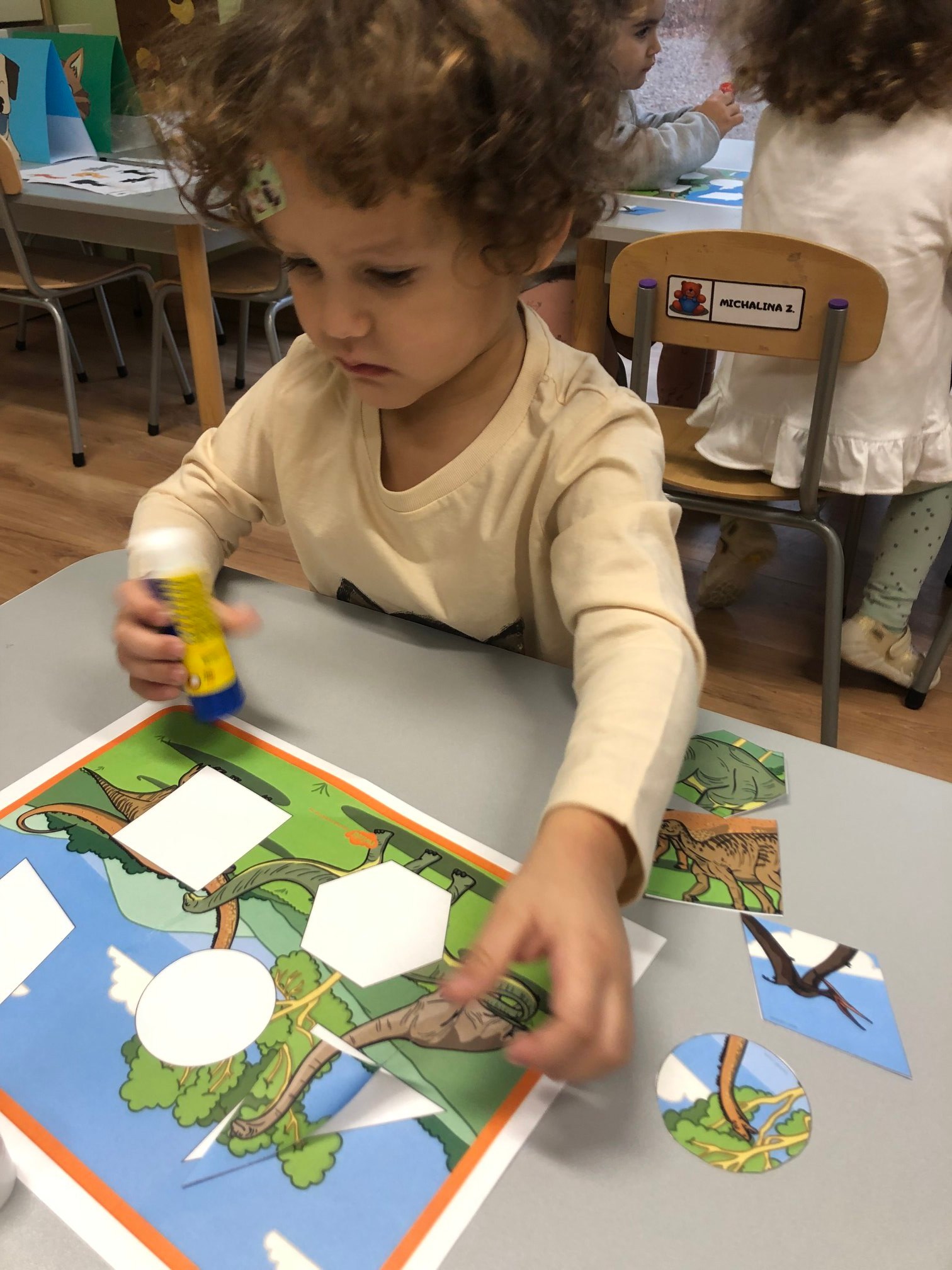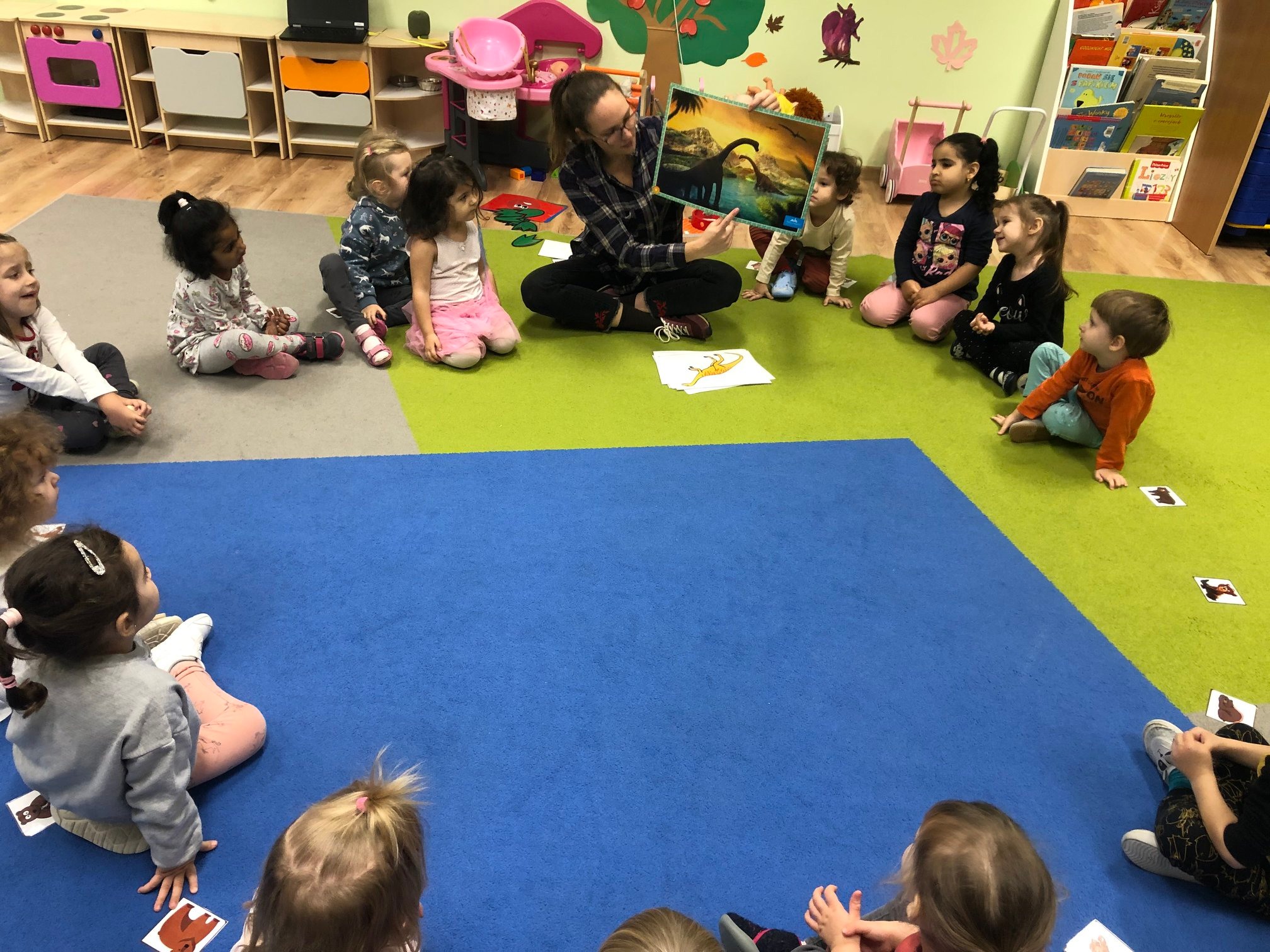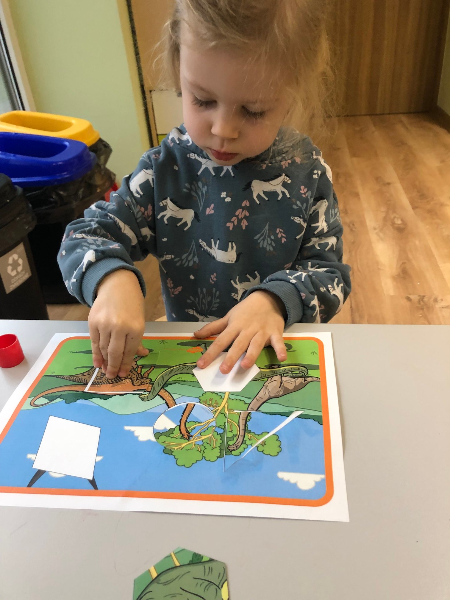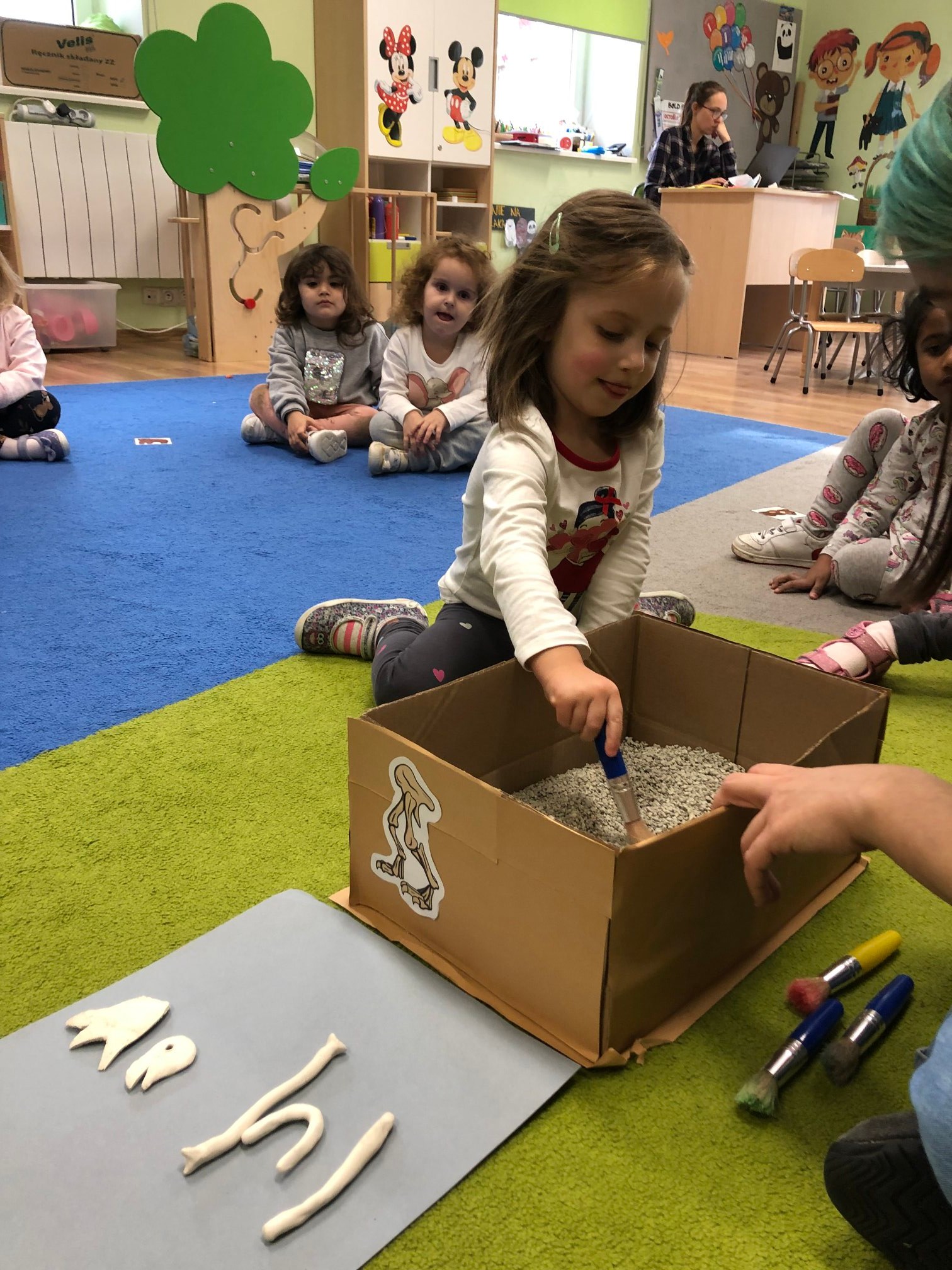 Bold Bears bawili się w Archeologów! Szukali kości i skamieniałości w pudełku z piaskiem, rozmawiali o kolorach dinozaurów, rozmiarach i czym się różniły. Jedne miały długie ogony, a inne krótkie, jedne pływały w wodzie i inne latały w powietrzu. Układali puzzle z dinozaurami, tworzyli dinozaury z papierowych talerzy, a także stworzyliśmy wspólnie dinozaura z tekturowych rolek!
