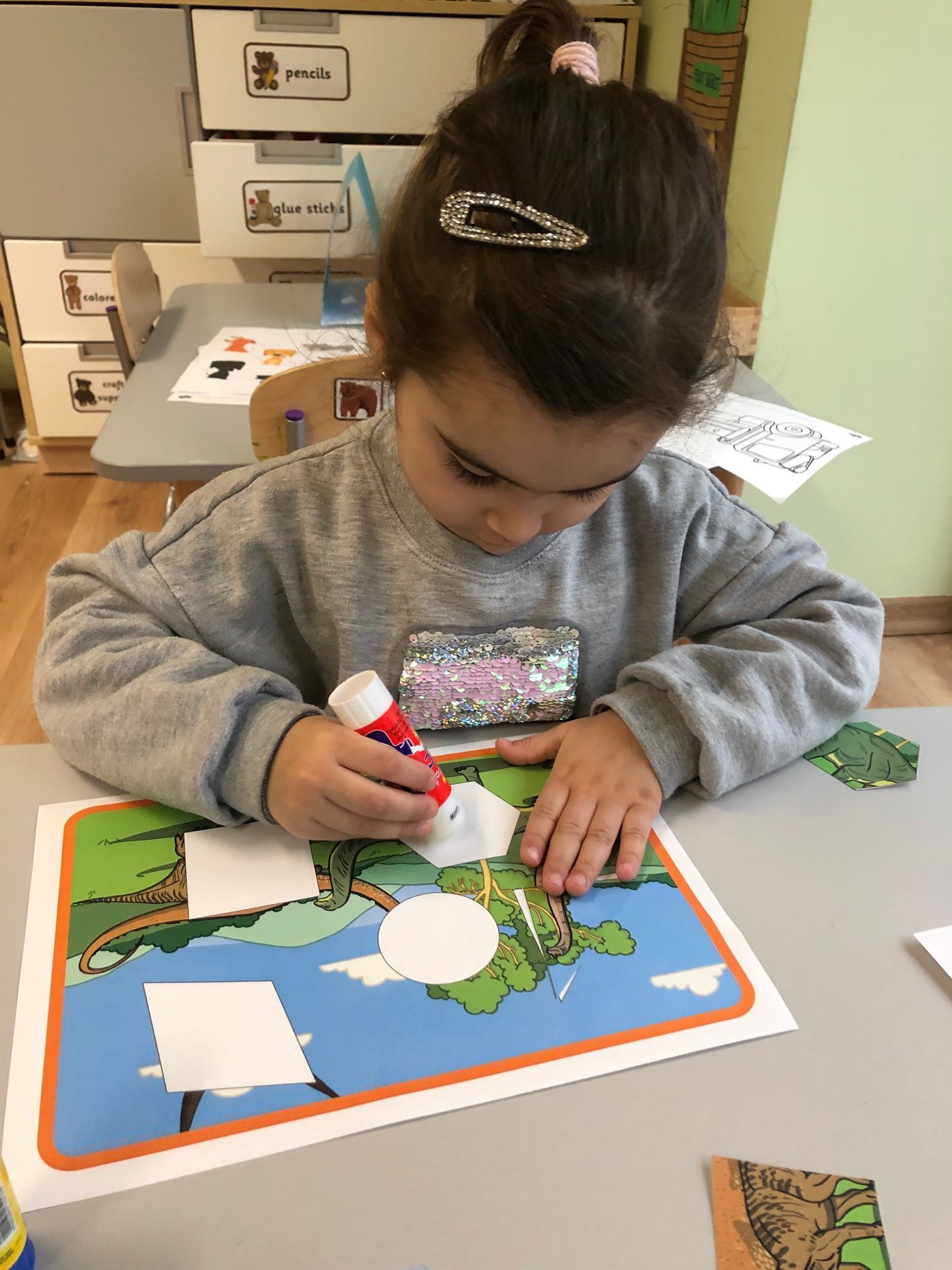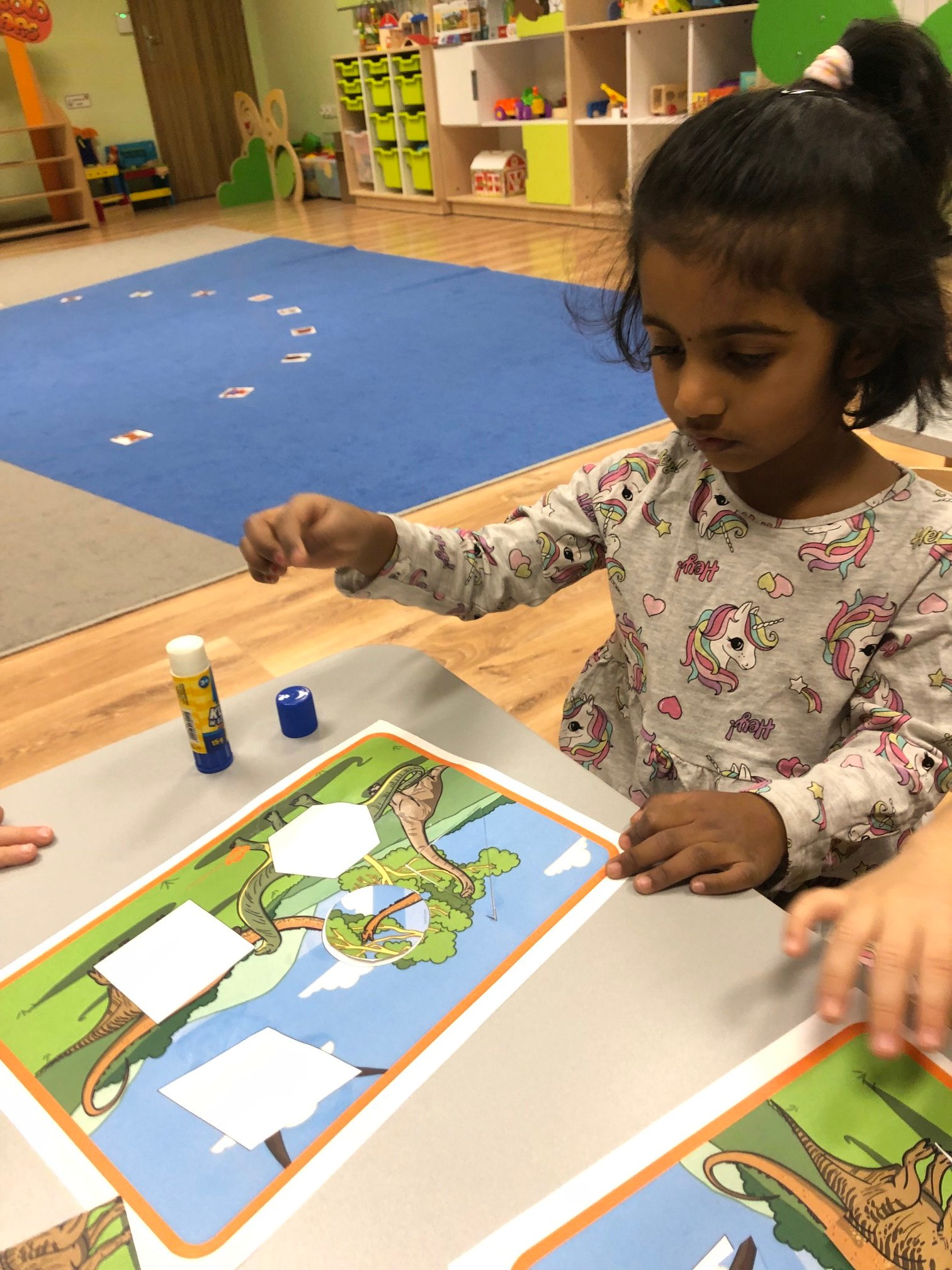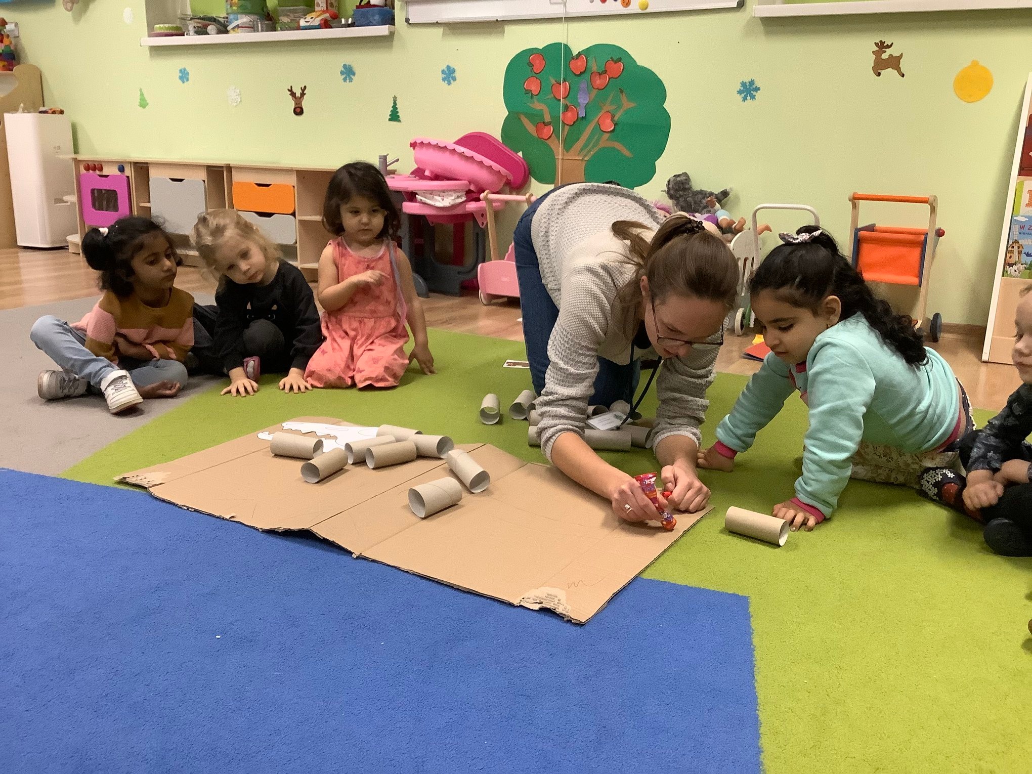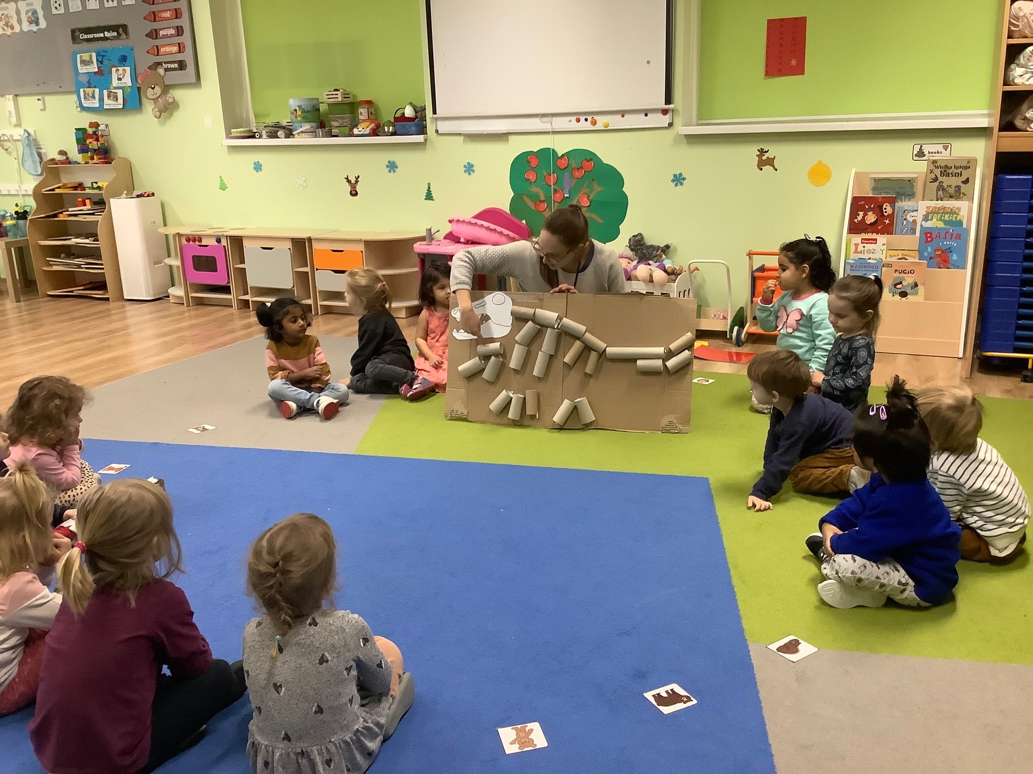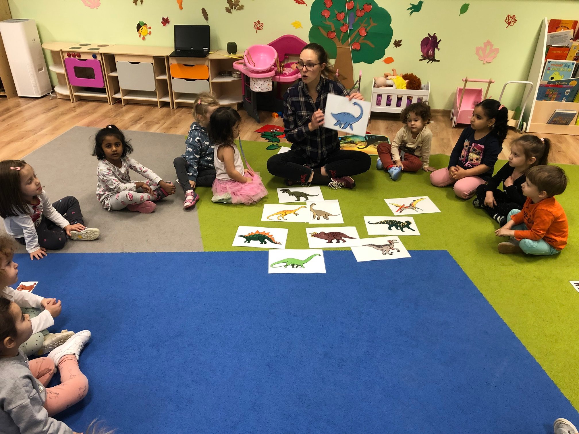 Bold Bears bawili się w Archeologów! Szukali kości i skamieniałości w pudełku z piaskiem, rozmawiali o kolorach dinozaurów, rozmiarach i czym się różniły. Jedne miały długie ogony, a inne krótkie, jedne pływały w wodzie i inne latały w powietrzu. Układali puzzle z dinozaurami, tworzyli dinozaury z papierowych talerzy, a także stworzyliśmy wspólnie dinozaura z tekturowych rolek!