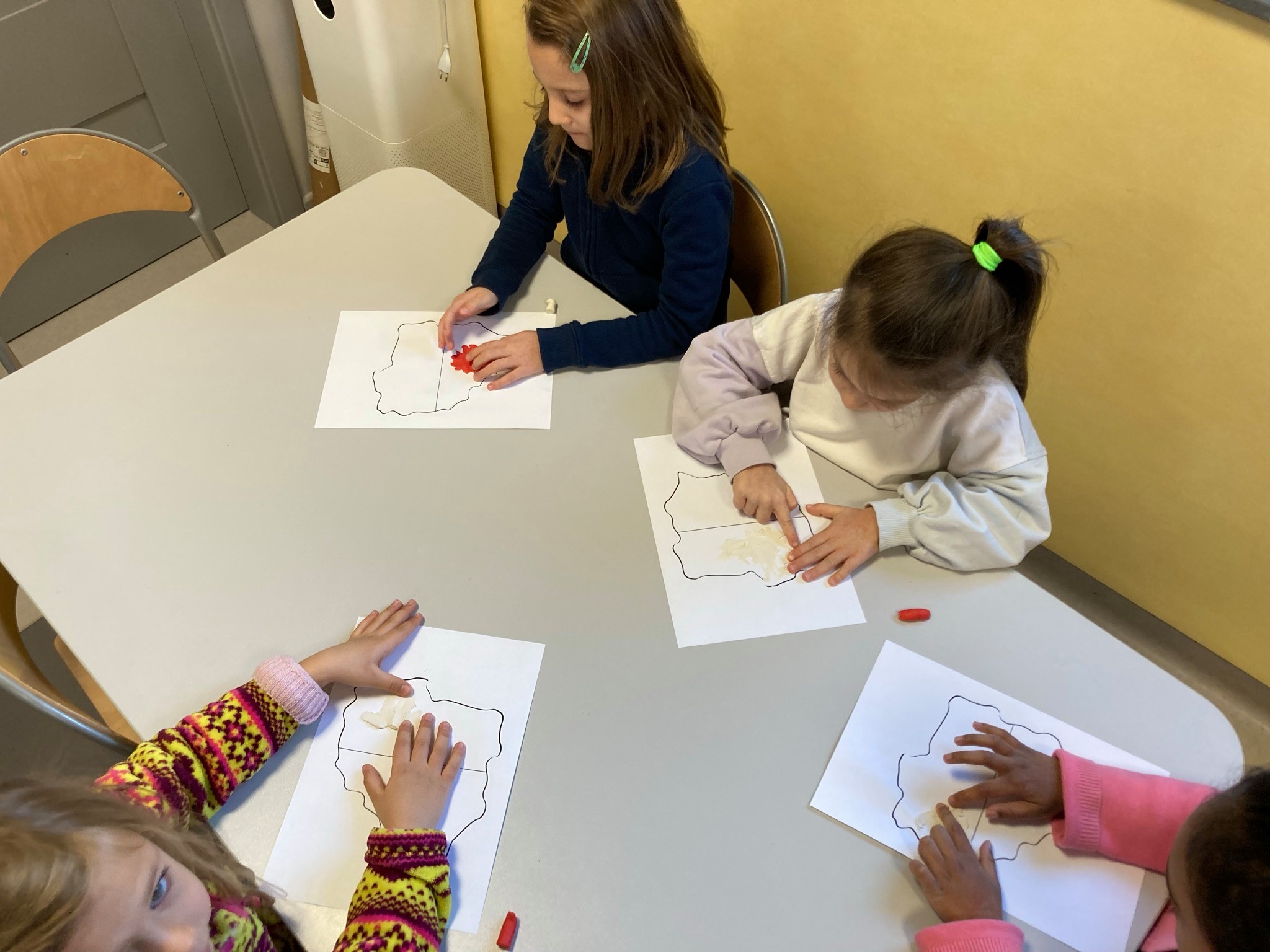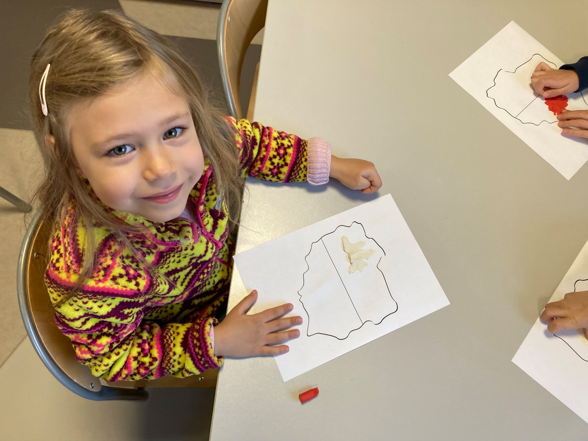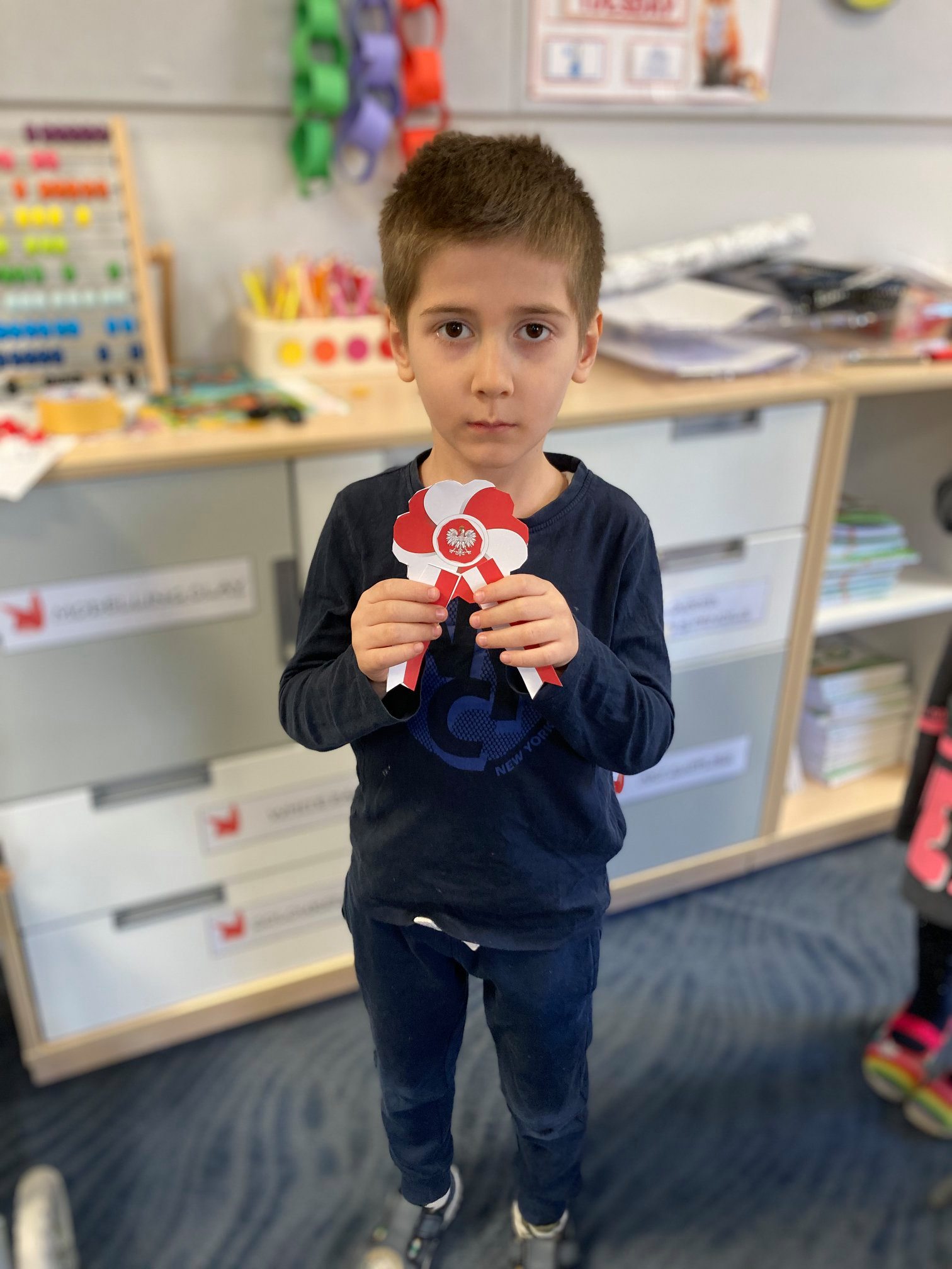 rozmawialiśmy o Święcie Niepodległości. Poznaliśmy polskie symbole narodowe, razem próbowaliśmy również zaśpiewać hymn Polski. Rozmawialiśmy również o tym, co symbolizują kolor biały i czerwony wykonując prace plastyczną w polskich barwach narodowych. Na koniec z dumą nosiliśmy samodzielnie wykonane kotyliony. ![]()