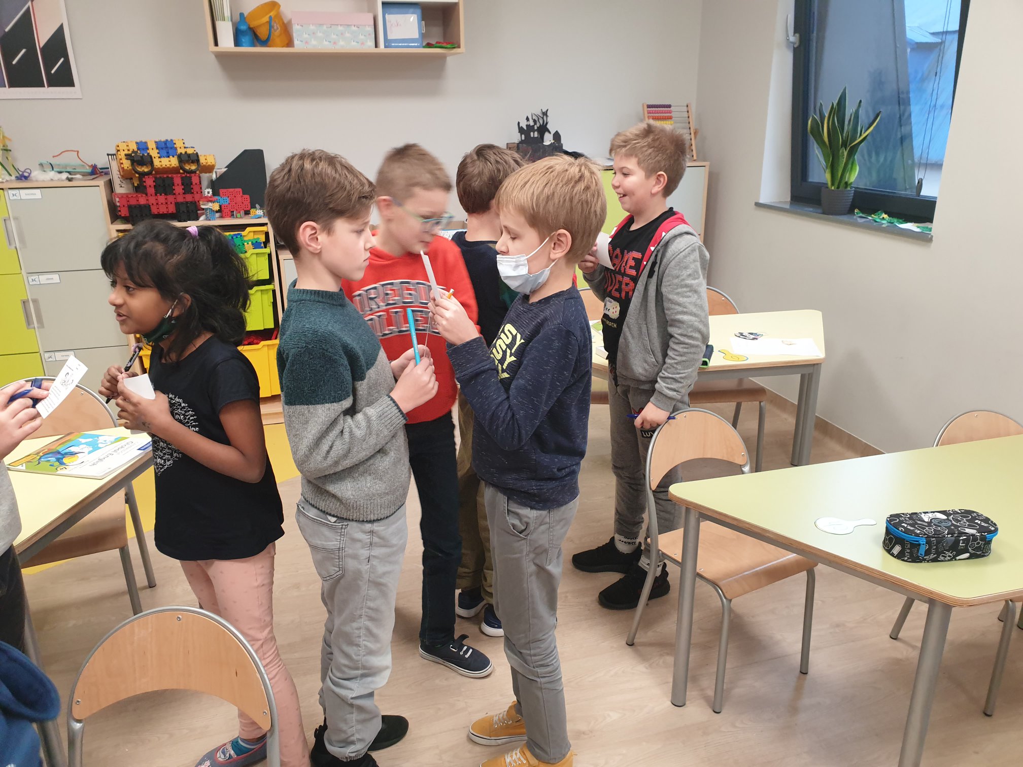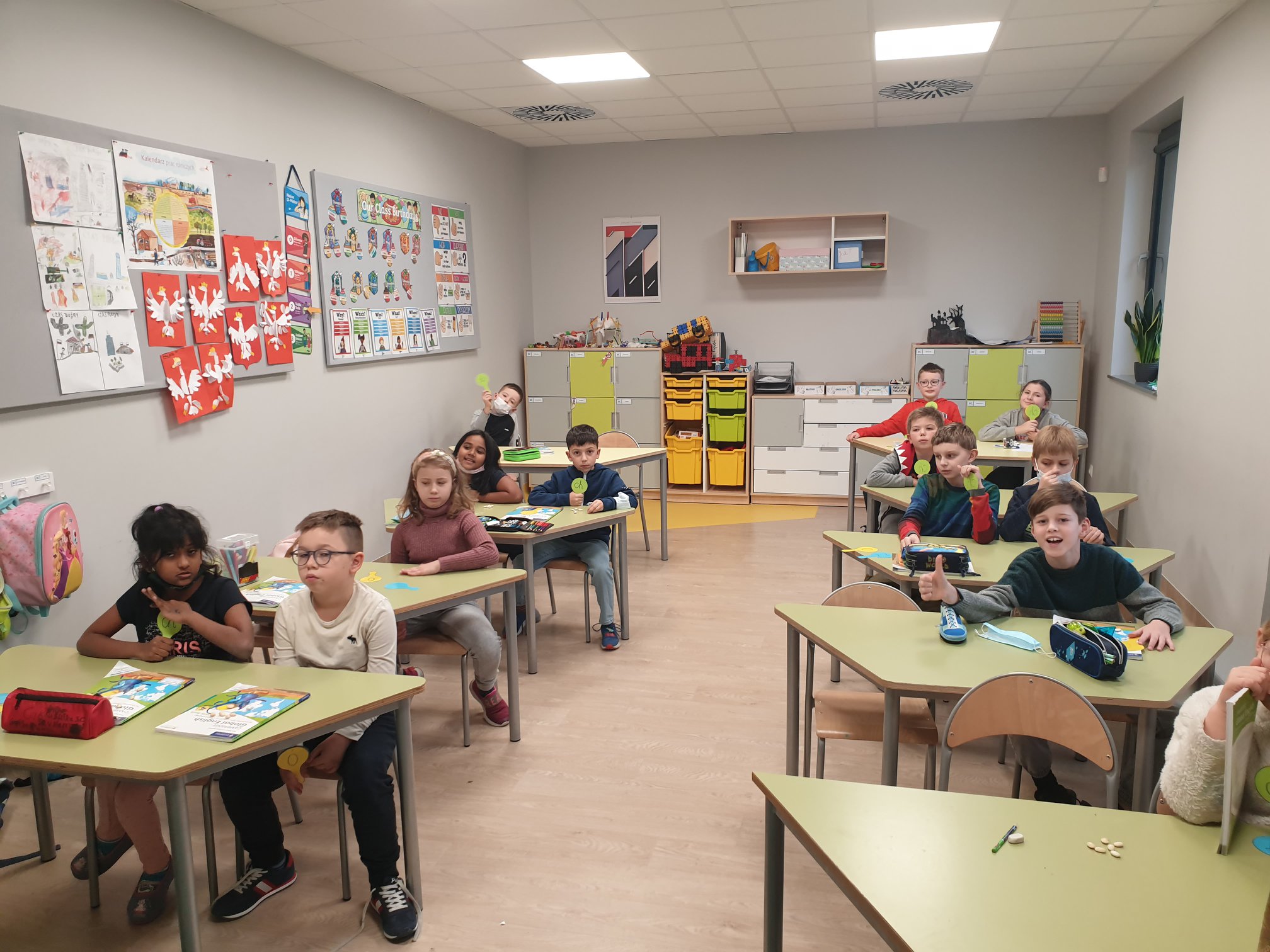 Powtórka materiału wcale nie musi być nudna. Trzecioklasiści wiedzą to doskonale! Uwielbiają quizy i gry. Tym razem podsumowali swoją wiedzę z zajęć z j. angielskiego za pomocą teleturnieju. Uczniowie świetnie się bawili odpowiadając na pytania i zbierając fasolki 😊