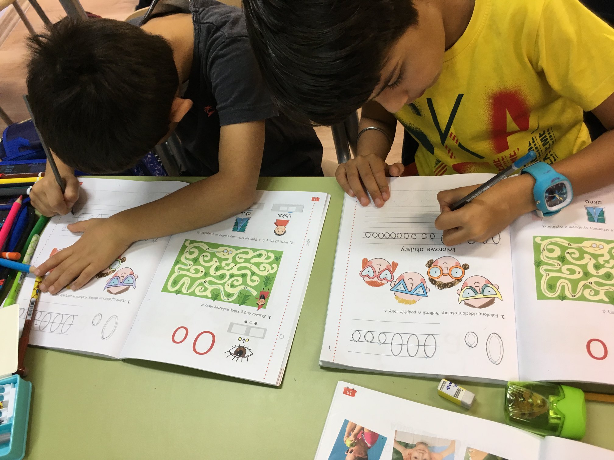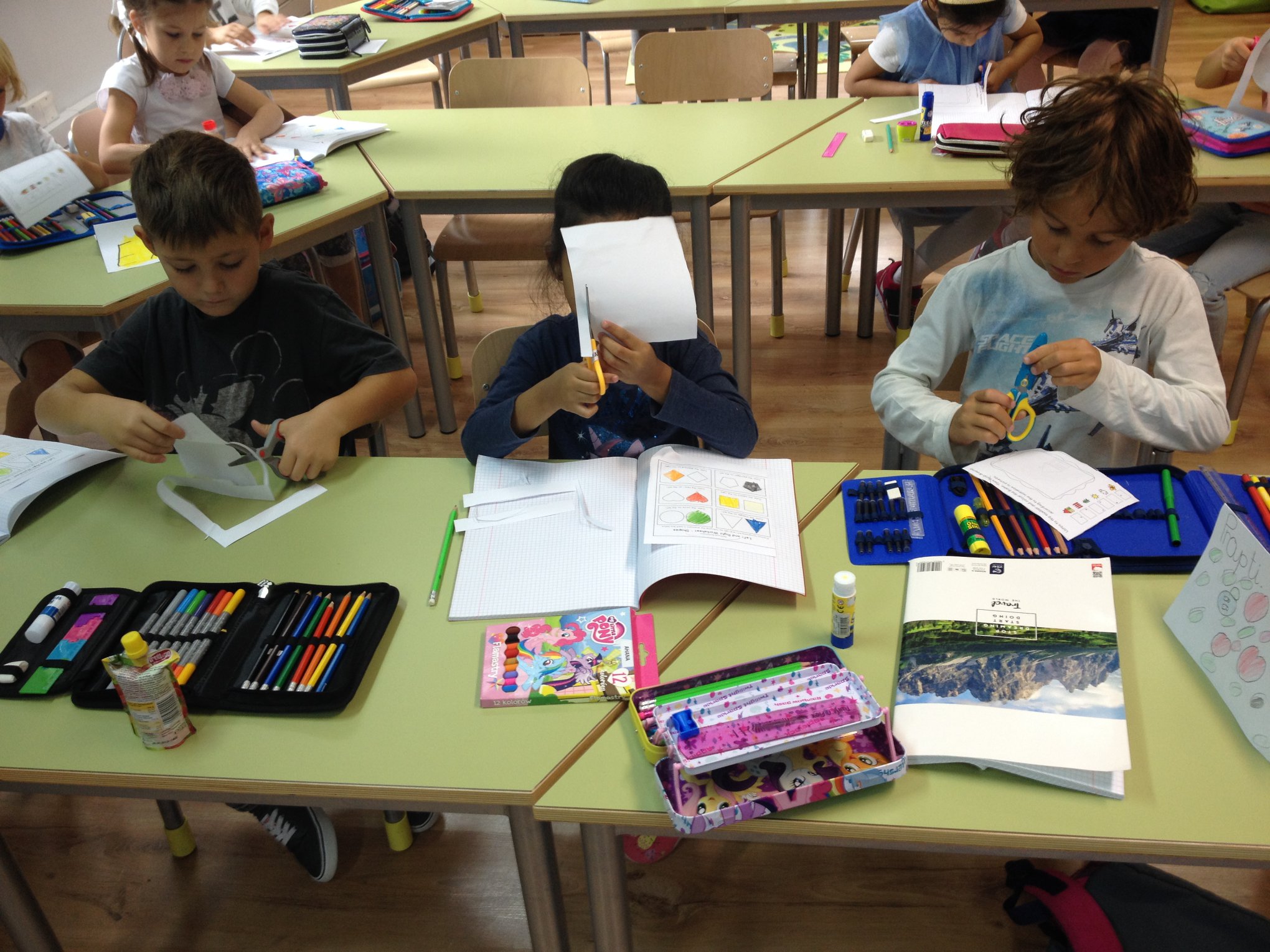 Cześć! To my – klasa 1s! Chodzimy do szkoły już trzeci tydzień. W tym czasie zdążyliśmy poznać naszych nowych kolegów, nauczycieli, budynek szkoły oraz panujące w niej zasady. Zaczęliśmy również naukę, którą będziemy kontynuować przez cały rok. Na matematyce ćwiczyliśmy orientację przestrzenną i rozpoznawanie prawej i lewej strony, na przyrodzie rozmawialiśmy o zmysłach, w czasie zajęć plastycznych namalowaliśmy naszą szkołę, na muzyce śpiewaliśmy i graliśmy na instrumentach, a na gimnastyce trenowaliśmy na świeżym powietrzu. A w dodatku to wszystko po angielsku! Ale uczyliśmy się też języka polskiego – ćwiczyliśmy pisanie i czytanie, a ci z nas, którzy dopiero poznają ten język, nauczyli się też witać z kolegami i liczyć. Bo w naszej szkole każdy znajdzie coś dla siebie!