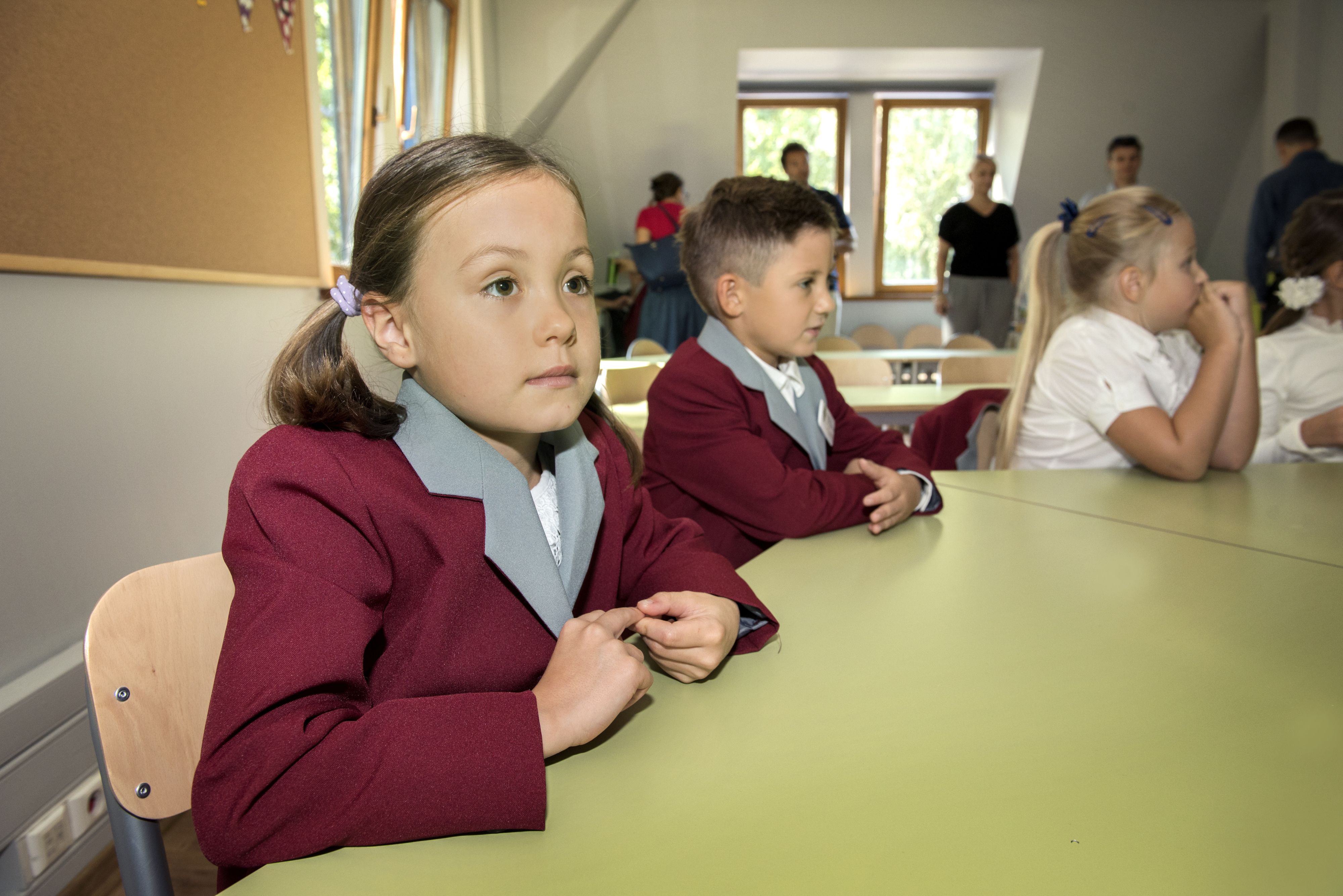 Wystartowaliśmy! 3 września nasi uczniowie ubrani w mundurki uroczyście rozpoczęli rok szkolny. Po oficjalnej ceremonii, podczas której towarzyszyli im rodzice, dzieci korzystały z uroków naszego ogrodu, spędzając czas w promieniach jesiennego słońca.